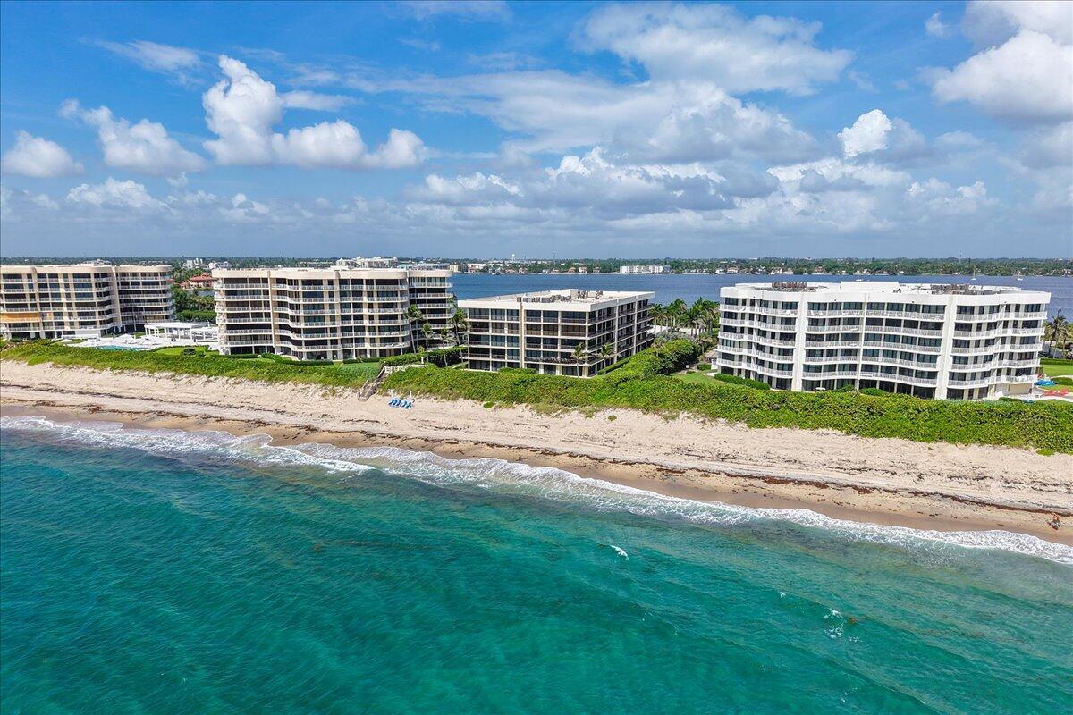Welcome to 3390 S Ocean Boulevard-your dream Palm Beach retreat where ALL ASSESSMENTS FOR EMERAUDE CONDO INCLUDING A NEW ROOF HAVE BEEN PAID BY THE OWNER IN FULL!! This oceanfront boutique condominium offers breathtaking, panoramic views of both the Atlantic Ocean and Intracoastal Waterway from every room. Step onto your private wrap-around balcony and watch the sunrise over the waves, or enjoy an evening breeze as the sun sets over the pool. Featuring 3 spacious bedrooms, 3 updated bathrooms, and an open concept living space with floor to ceiling windows, this home seamlessly blends luxury and comfort.