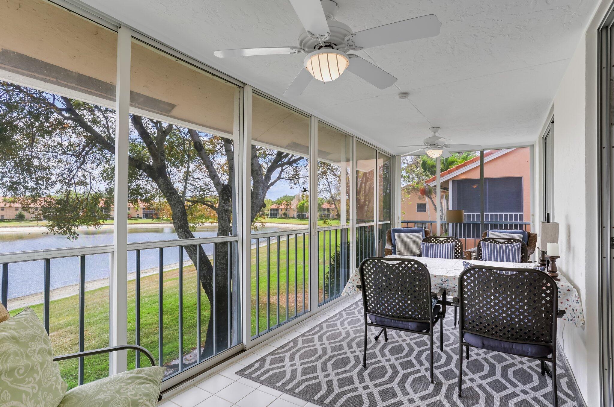Enjoy absolutely beautiful long lake views from almost every room in this spotless and airy condo in the lovely community of Palm Isles. Sellers have paid all assessments and the new fabulous Clubhouse is set to open in December. Dishwasher, washer & dryer - 2024. A/C - 2022. HWH- 2020. Private elevator for convenience and down the block from the satellite pool. Enjoy beautiful sunrises while sipping coffee on your glass enclosed patio.