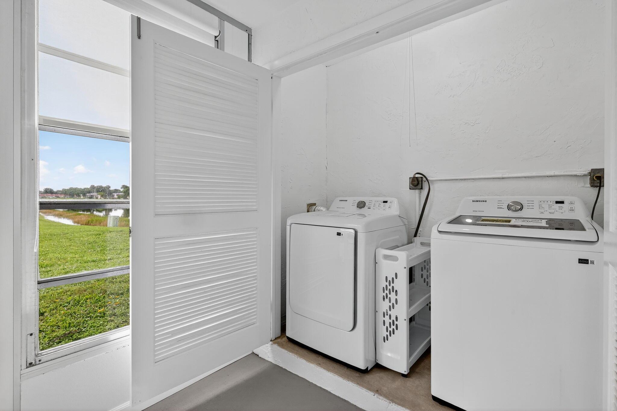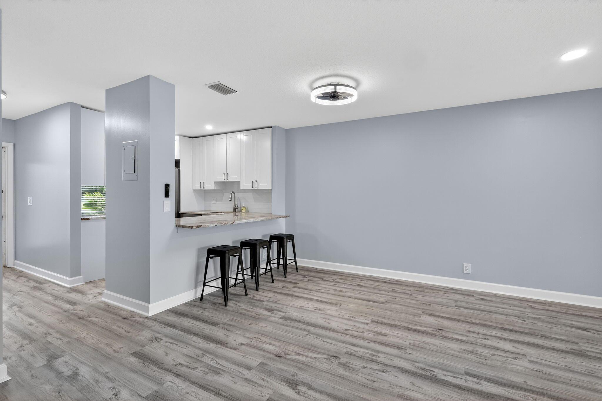 Completely remodeled 2 Bedroom, 2 Bath one story villa. Brand new kitchen with brand new appliances. Bathroom redone. New paint and No popcorn on the ceilings. New washer / dryer and fixtures. Super clean and super cute! 55 plus community.