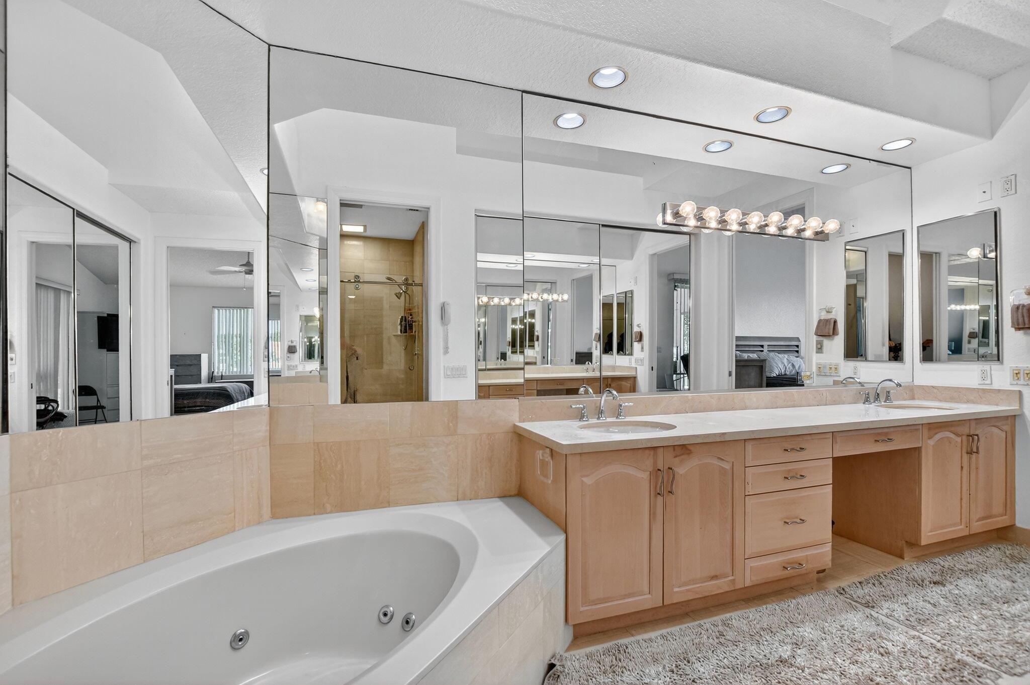 Located in Nassau Bay within the prestigious gated Broken Sound Country Club (mandatory membership), this bright second-floor condo offers 2,904 sq/ft of space, featuring panoramic golf course views and abundant natural light from large windows and skylights. The layout includes three bedrooms, two full baths, and one half bath, including a primary suite with dual sinks, separate tub and shower, walk-in closets, and direct patio access. Multiple living areas--kitchen with stainless steel appliances, a breakfast nook, and an in-unit washer/dryer, formal dining, living room, and family room. The enclosed patio features impact windows and blinds, overlooking the fairways and offering a versatile bonus space for lounge or office. A must-see residence in Boca Raton's premier gated community.