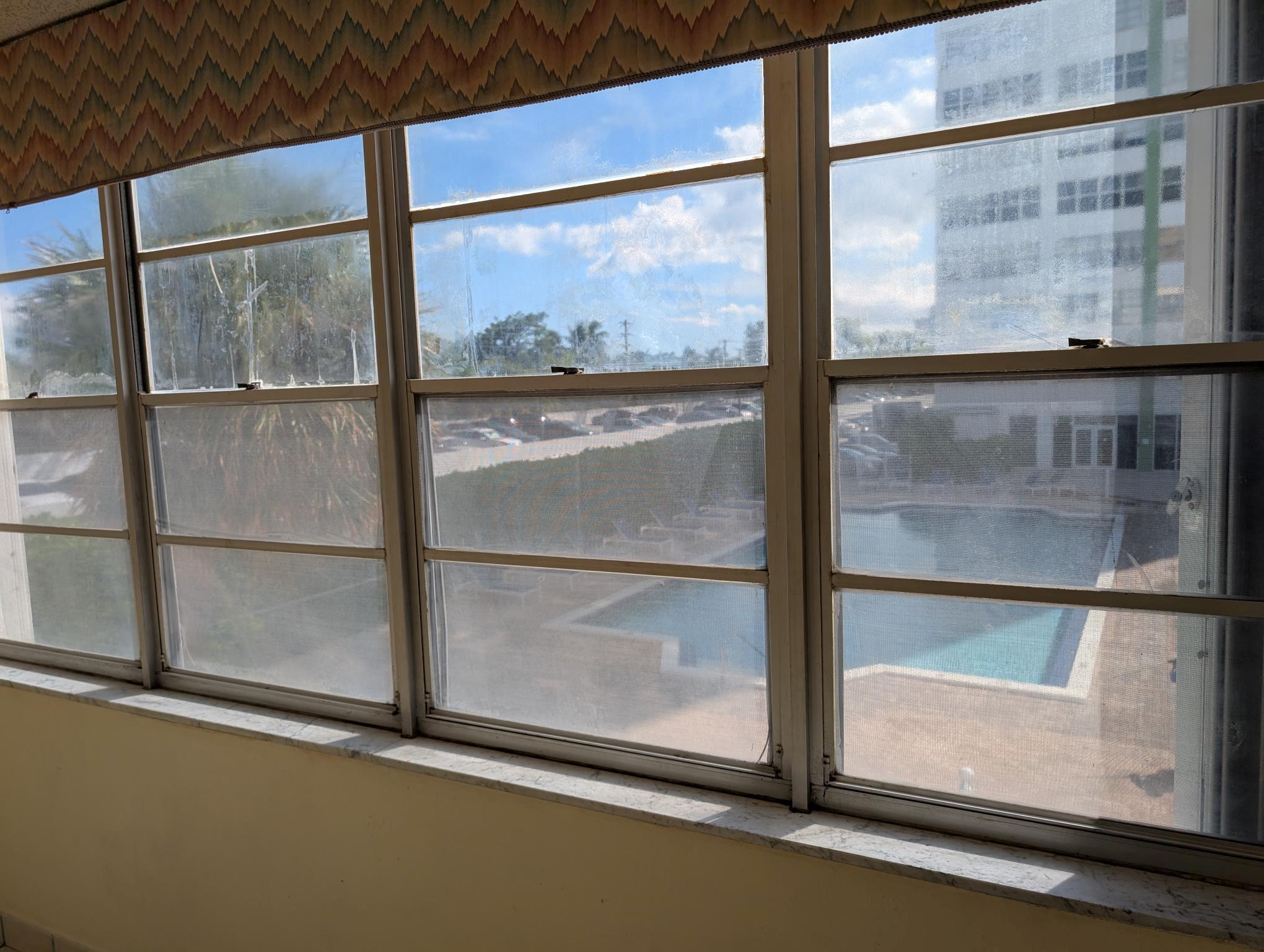 Investors and/or Buyers up for a complete redo and renovation!! SE corner unit on the second floor overlooking the pool area with plenty of windows and balcony. 2 BRS and 2 FULL BATHS make this an ideal unit to renovate to its full potential. Unit is empty and ready to go. All windows and balcony have Hurricane Accordion Shutters and the AC is from 2017. Comps that have been redone are much higher. Priced and negotiable to sell. Community of 2 buildings is gated with a heated pool, clubhouse, gym, and billiards. Surrounded by million dollar homes near the intracoastal and a quick ride to the beach and Bal Harbour. You can even take a bike ride there. Easy to show M-F.