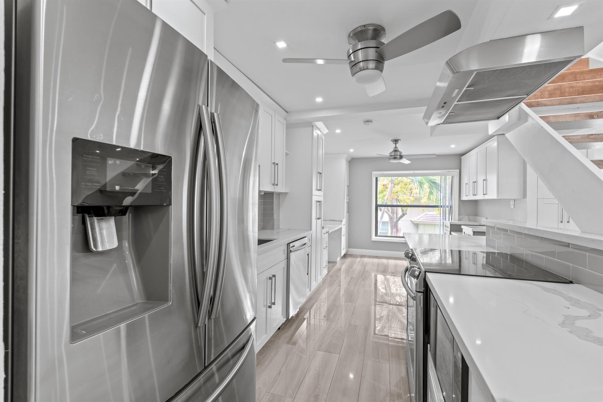 Beautifully updated 2-story condo in East Boca. The location couldn't be better just minutes from the beach, shops, restaurants, Downtown Delray, Mizner Park, and the Brightline station for easy travel. Inside, you'll find a modern, open kitchen with quartz countertops, stainless steel appliances, and white cabinets. Convenient built-in desks for a home office or study space. The living space feels light and airy, with a sunroom that offers additional entertaining space or a cozy spot to unwind. Both bedrooms are spacious, and the bathrooms have been stylishly updated with frameless glass showers. You'll also enjoy views of the pool and garden. The community offers great amenities a pool and tennis courts. Water and basic cable are included with HOA