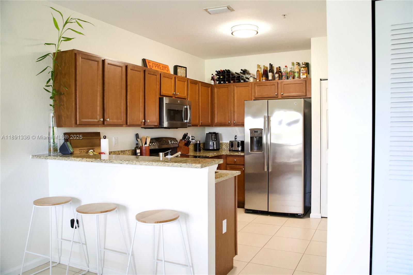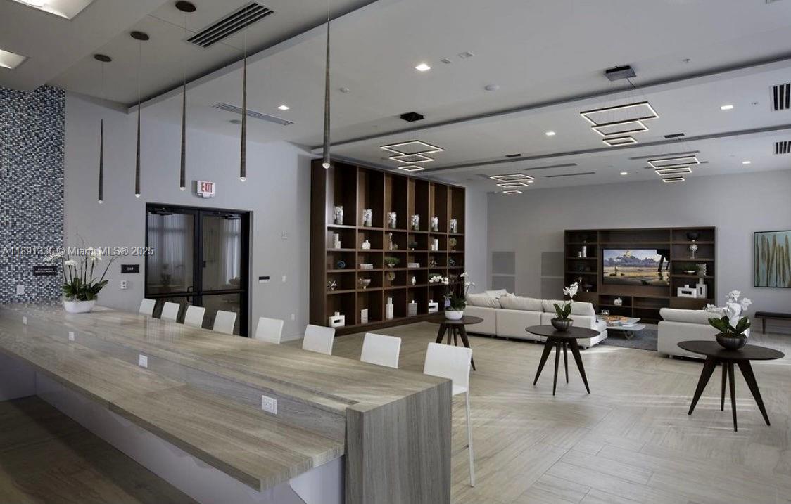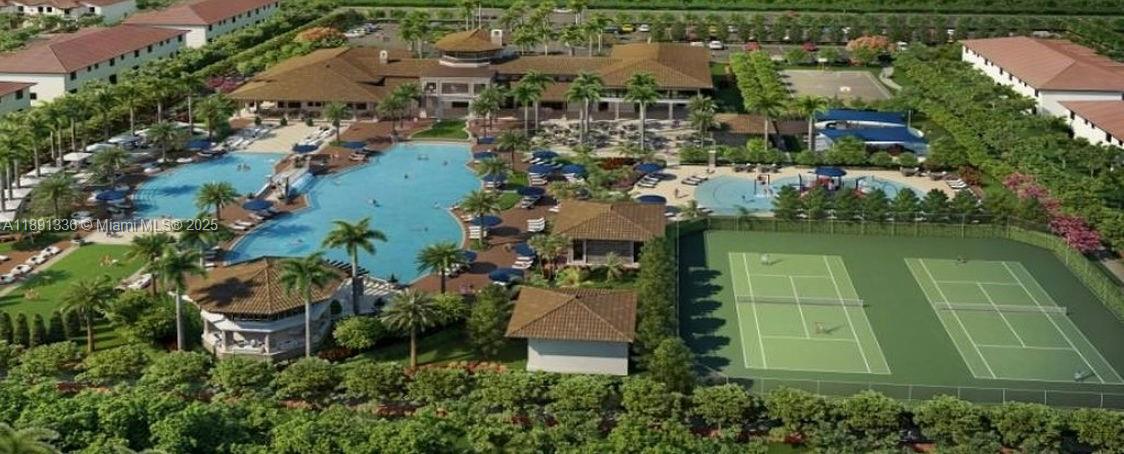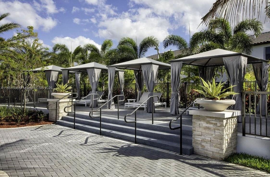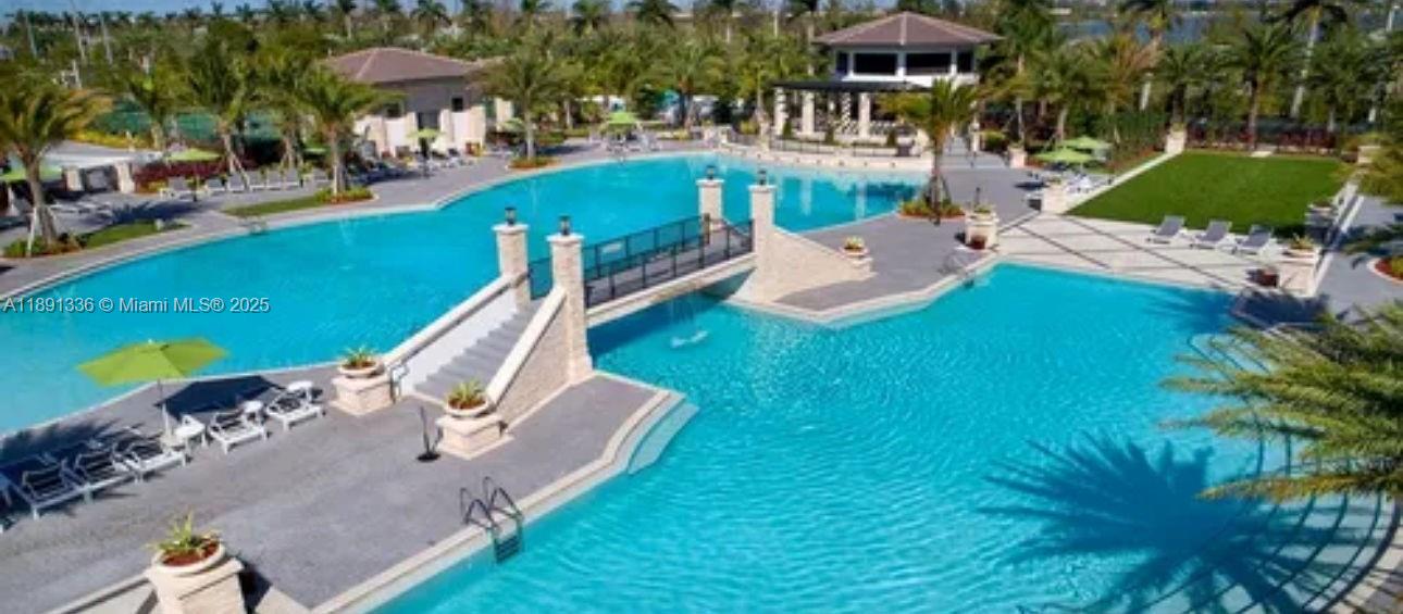 Beautiful 2-story apartment featuring an open-concept kitchen, dining and living area and a guest bathroom on the first floor, lake view and private balcony; 2 bedrooms both en-suite bathrooms upstairs; laminate floors in rooms and stairs; stainless steel appliances, granite counter top, wood cabinetry and full-size washer and dryer in unit. Located in a gated community with 24/7 security, resort-style amenities, such as pool with water park, game room, tennis, football and basketball courts, gym and sauna. Conveniently situated near international airports,Turnpike and Palmeto highways. Currently rented until 12/31/2025.