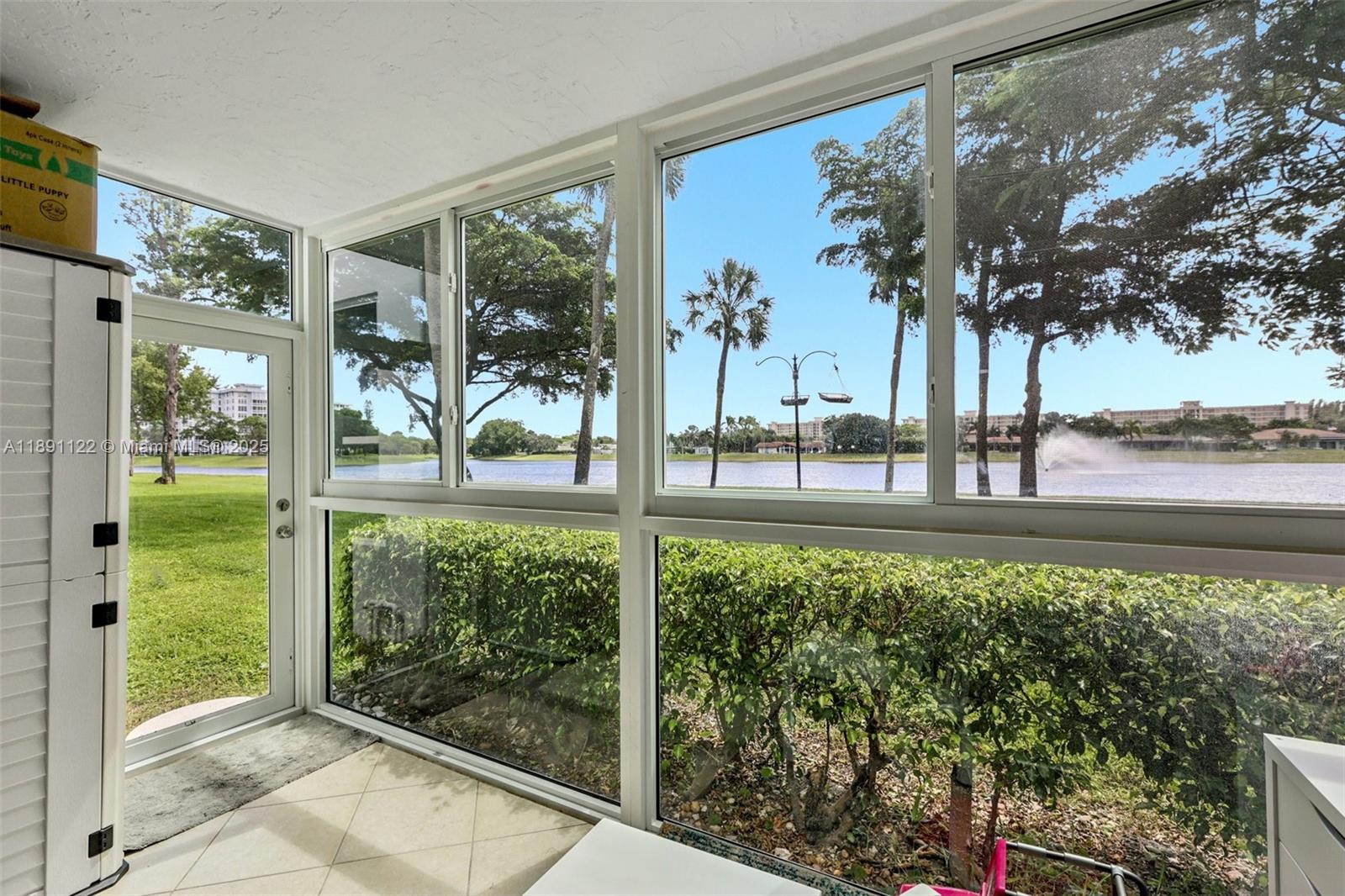 Price improvement. Priced to sell. Beautifully updated 2 bed, 2 bath first-floor condo with stunning lake views, featuring tile flooring throughout, quartz countertops, stainless steel appliances. Living room and dining room feature modern built-ins for extra storage. This bright & airy unit is filled with natural light and includes ALL impact windows and doors. Both bedrooms are en-suites, with the primary offering a spacious walk-in closet. Enjoy relaxing lake views from your private, enclosed impact-glass patio. The condo is extremely well maintained, and is located in a building with reserves that has passed the 40-50year inspection. Monthly fee covers water, cable, internet, reserves and more All ages welcome, minutes from shopping, restaurants, casino, and Pompano Bch. 2 Cats OK.
