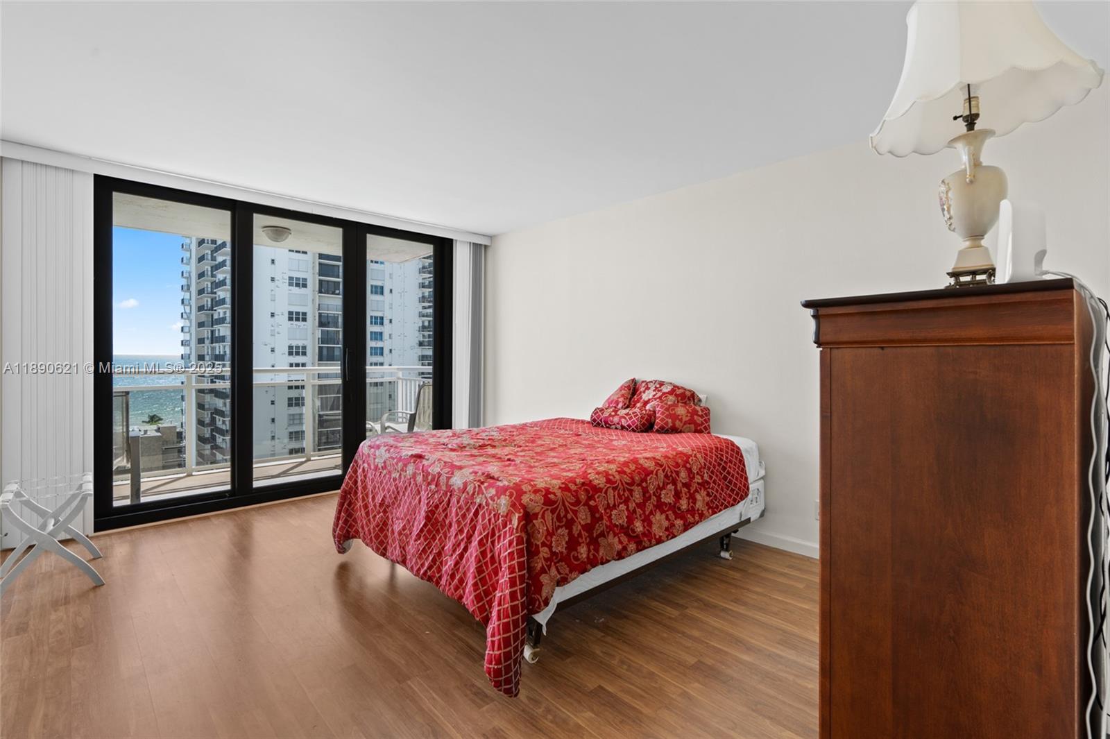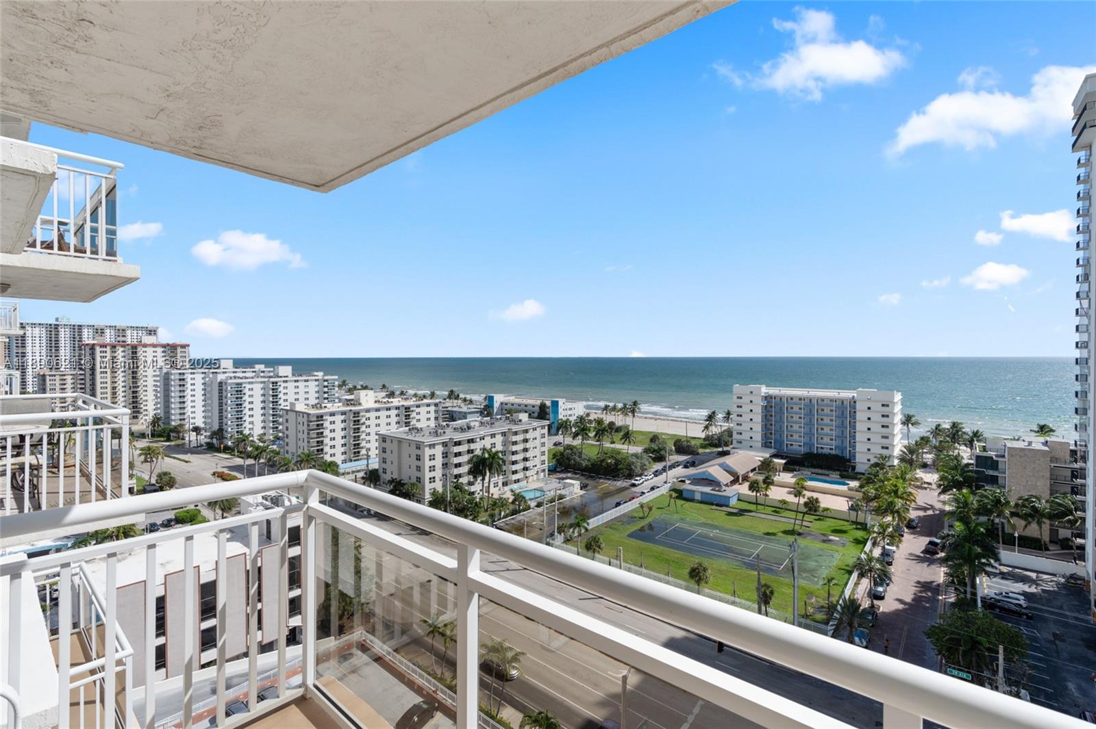 ACT NOW! Experience spectacular ocean views from this 15th-floor home in the sky. This spacious 2-bedroom, 2-bath residence offers dazzling sunrises and an open living area framed by a wall of floor to ceiling windows for a breathtaking view. The primary suite features a generous walk in closet and a beautifully updated bath. Enjoy lovely laminate wood floors throughout, in unit storage closet, and a large glass balcony with hurricane impact doors. The kitchen and guest bath are ready for your personal design flair.. Amenities include a well-equipped fitness center, heated pool, 24-hour security, on-site manager, bike and storage lockers. Just steps from the ocean, minutes to the Hollywood Broadwalk, and only 15 minutes from the airport. Small pet welcome.