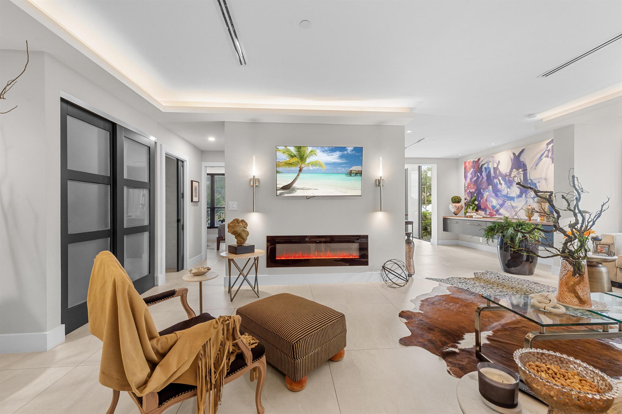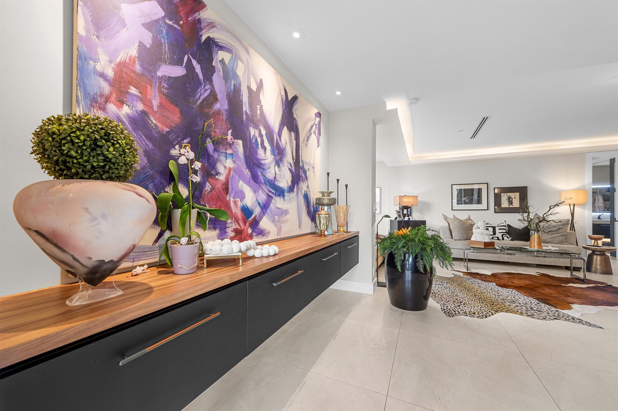 Experience luxury living in this stunning, designer-owned and professionally renovated first-floor 2-bedroom, 2-bathroom condo located in the prestigious Boca West Country Club--recognized as the nation's #1 private residential country club. Featuring its own private entrance, this residence exudes sophistication with 42'' porcelain tile flooring throughout, a custom gourmet kitchen with authentic butcher block countertops, stainless steel appliances, and modern finishes. The bright, open-concept design showcases raised ceilings with elegant cove lighting, impact-resistant windows, and an enclosed patio seamlessly integrated into the main living area for additional space. Both bathrooms are beautifully appointed with custom tile work and frameless glass showers, offering spa-like comfort.