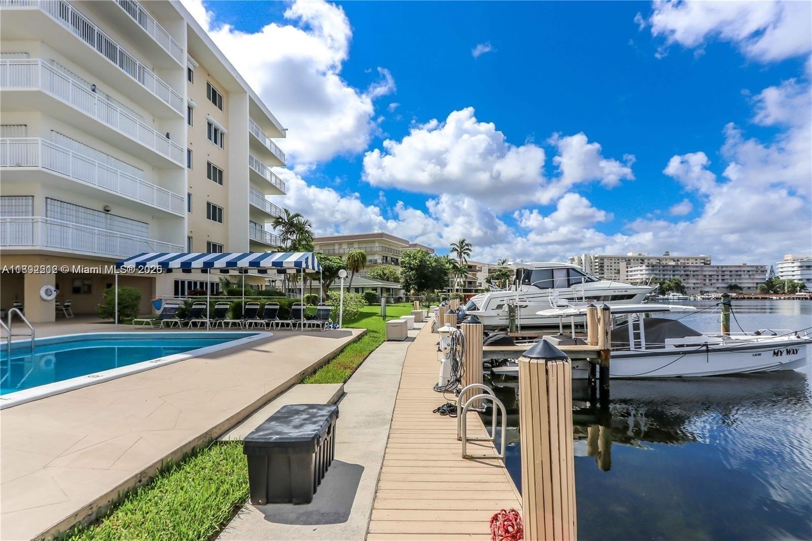 This stunning waterfront corner unit is located in an exclusive boutique-style building with just four units per floor. Enjoy northwest exposure and a wrap-around balcony with partial Intracoastal water views. The bright and spacious interior features two bedrooms, two baths, and a sleek modern design. The kitchen shines with granite countertops, wood cabinets, stainless steel appliances, and a convenient sit-down bar area. Impact windows and shutters provide added security. Community amenities include a heated pool, BBQ area, one covered parking space plus an additional uncovered spot, and two storage units. Complimentary laundry facilities are available on each floor, ensuring ultimate convenience. Ocean access completes this remarkable offering! Current waitlist for dockage.
