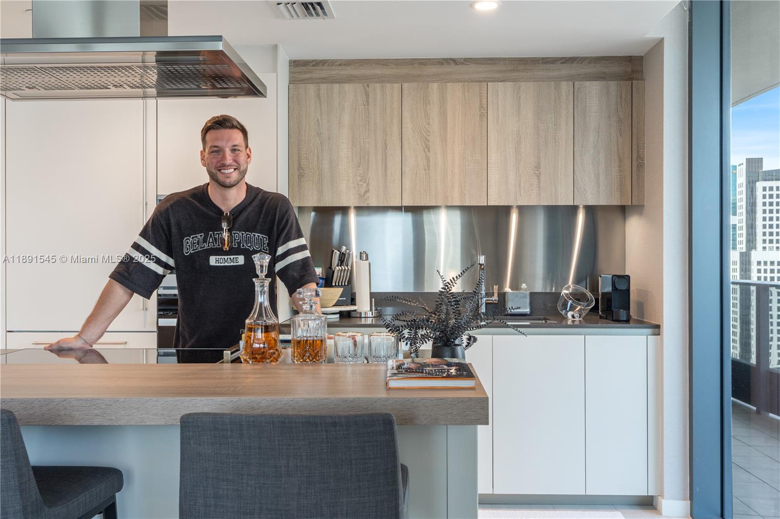 Live at the newest & most luxurious building with the highest quality and in the best location in Downtown Brickell. This 2 bedrooms and 2 baths with 1/2 bath on the 35th floor at the brand new ultra-luxurious Brickell Flatiron Condo. This unit is the 01 line; the most coveted line in the tower. With 9' ceilings and floor to ceiling glass, breathtaking views south, east, north, and west. The colorful city lights, Biscayne Bay, and views as far as Coconut Grove are yours to enjoy. Amenities include 2 Pools,2 Jacuzzis, State of the Art Fitness Center, Spa with Steam, Sauna and massage & spectacular views from the 64th level amenity floor.2 Lounges, Theatre room, billiard room, and Children room. New electric shades and brand new closets installed.