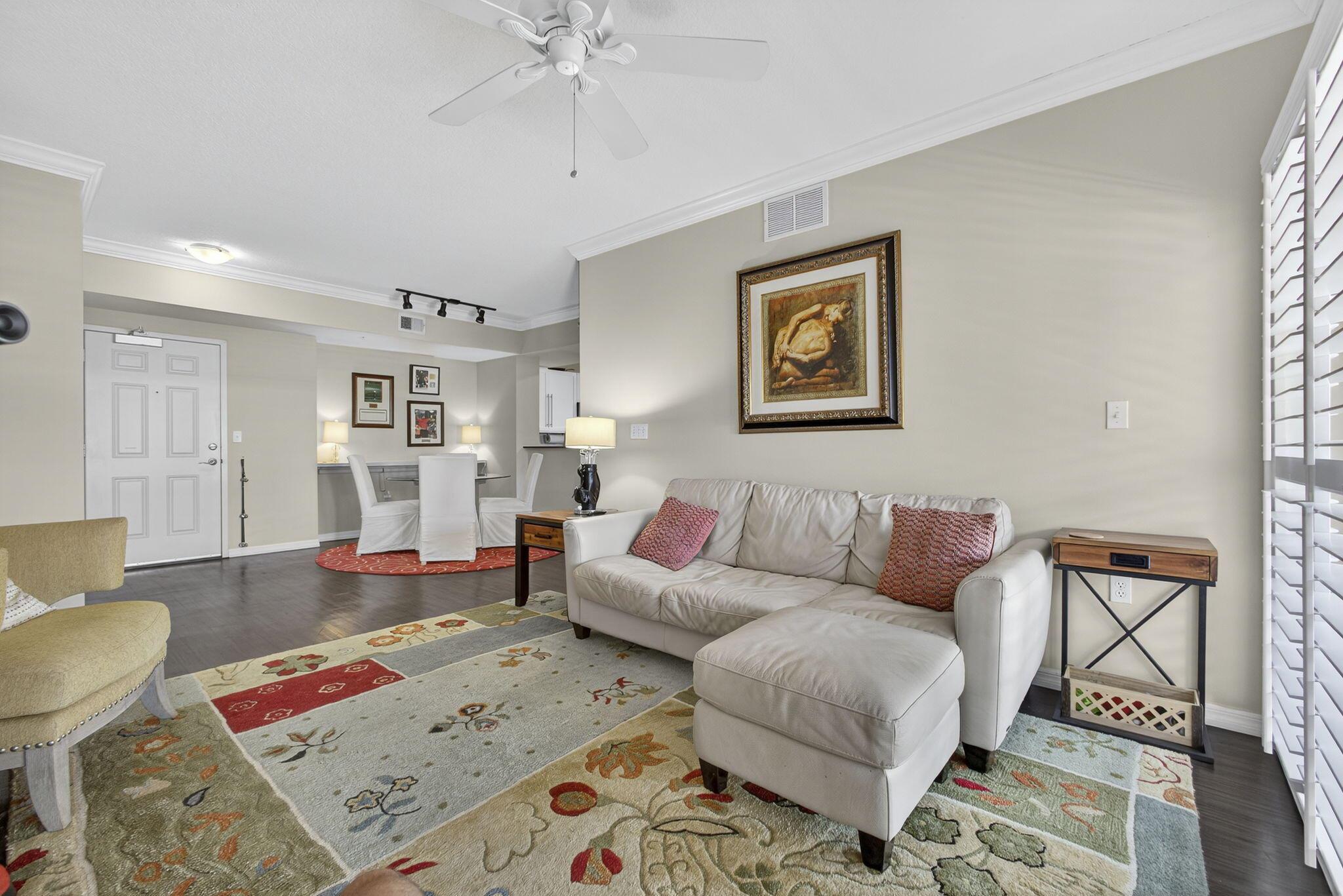 This beautiful 3-bedroom, 2-bathroom condominium offers the perfect blend of comfort, style, and location in one of Palm Beach Gardens' most desirable communities. Situated on the 3rd floor, this rare west-facing residence is bright and airy, featuring two private balconies -- one off the living room and another from the primary suite -- perfect for enjoying gorgeous sunset views in the afternoons.The interior features a spacious open floor plan with a modern kitchen and an in-unit laundry room with a full-size washer and dryer. The home is equipped with impact windows for peace of mind and plantation shutters and blinds throughout, providing timeless style and effortless privacy.