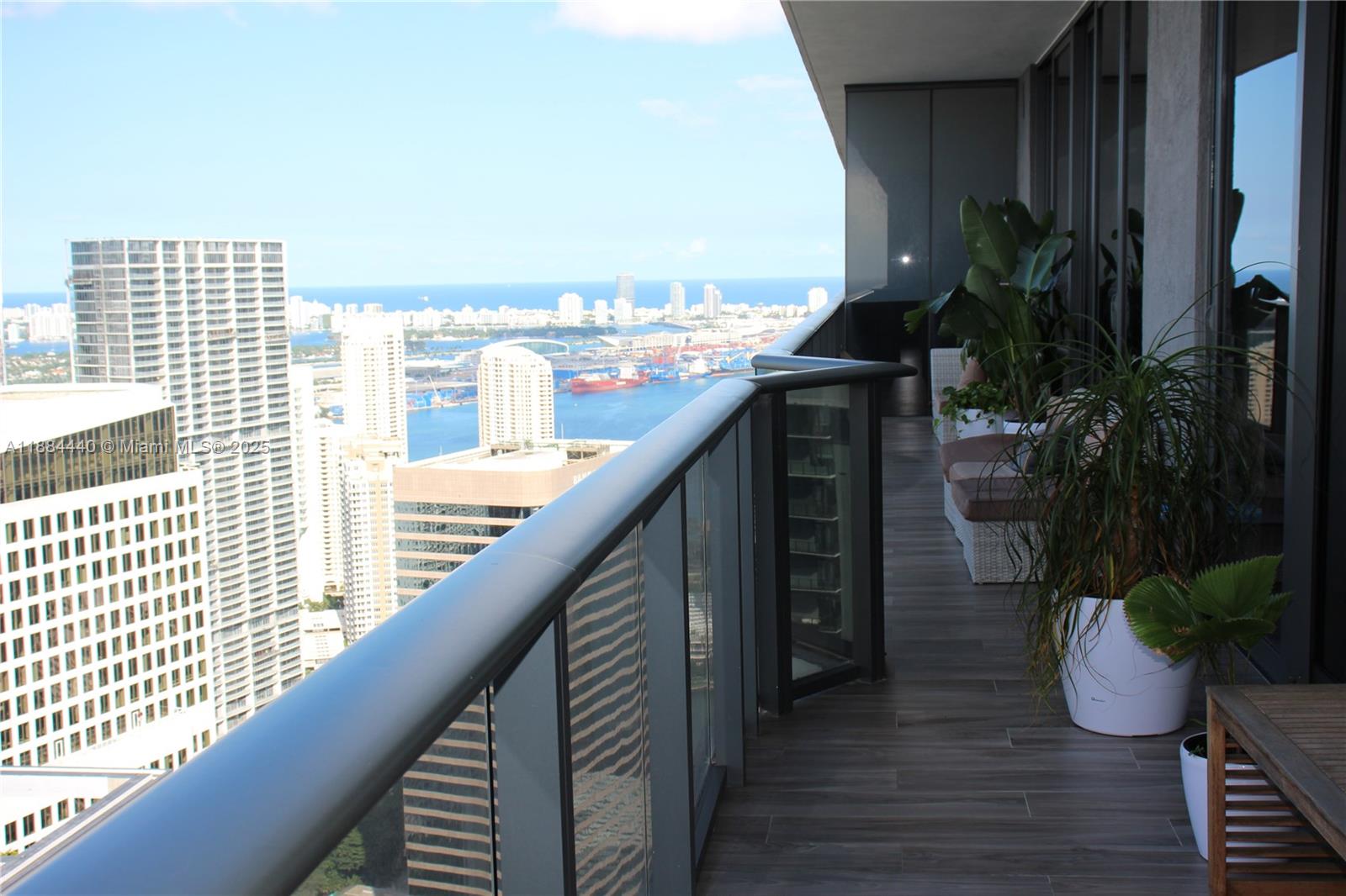 Top of the world feeling, on this 55th floor unit, at SLS LUX, Brickell. This spacious double unit 2bedroom+den/4-bath, 1,728 square feet residence, offers 180 degrees panoramic city and bay views. Designed by Arquitectonica and interiors by Yabu Pushelberg firm. Museum-quality work of art in the common areas. Enjoy private elevator entry, Wolf/Sub-zero appliances, quartz waterfall island, electric shades, 2 A/C Units. Located in the heart of Brickell, with convenient access to the surrounding dining, cafes, and just across, Brickell City Centre luxury retail & entertainment. World class amenities include 3 pools, 2 hot tubs, a poolside bar, cabanas, sky lounge, fitness center, tennis court, wine cellar & cigar room, BBQ area, a full service spa, concierge, valet and children's play area.