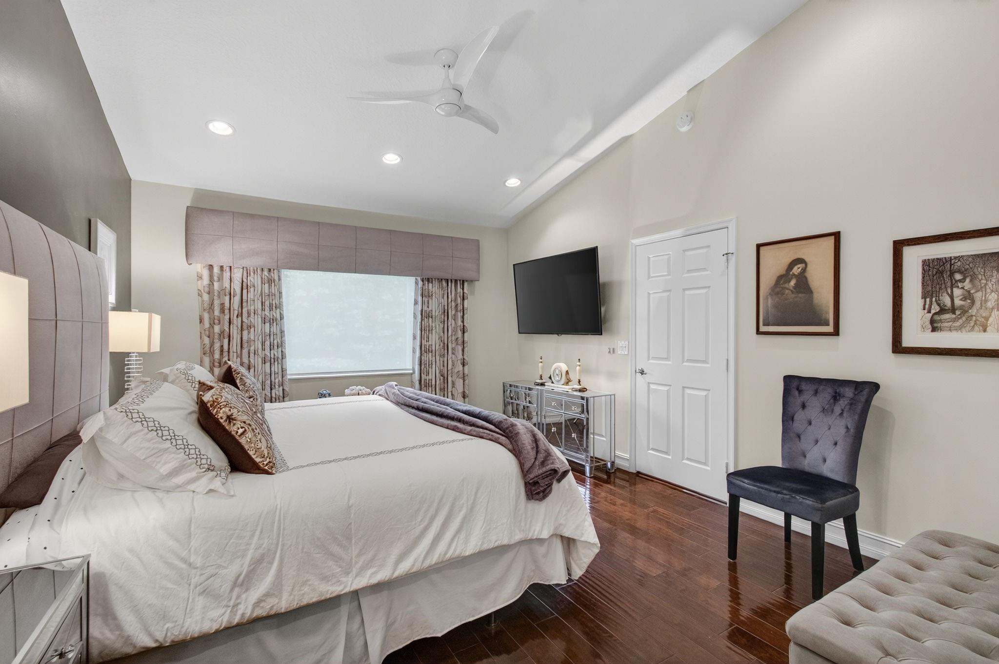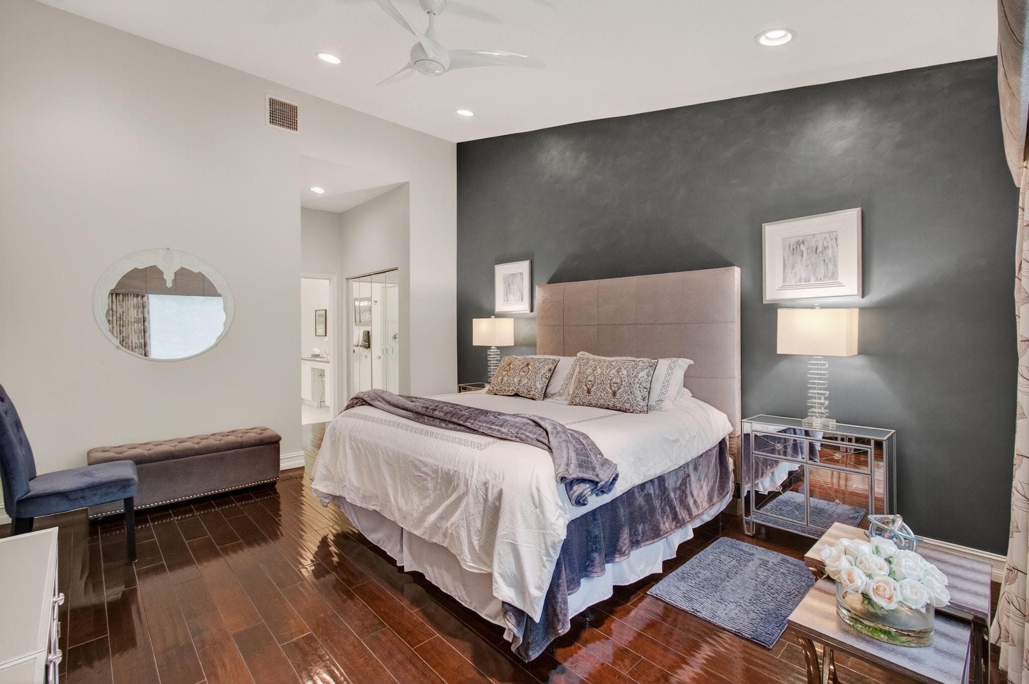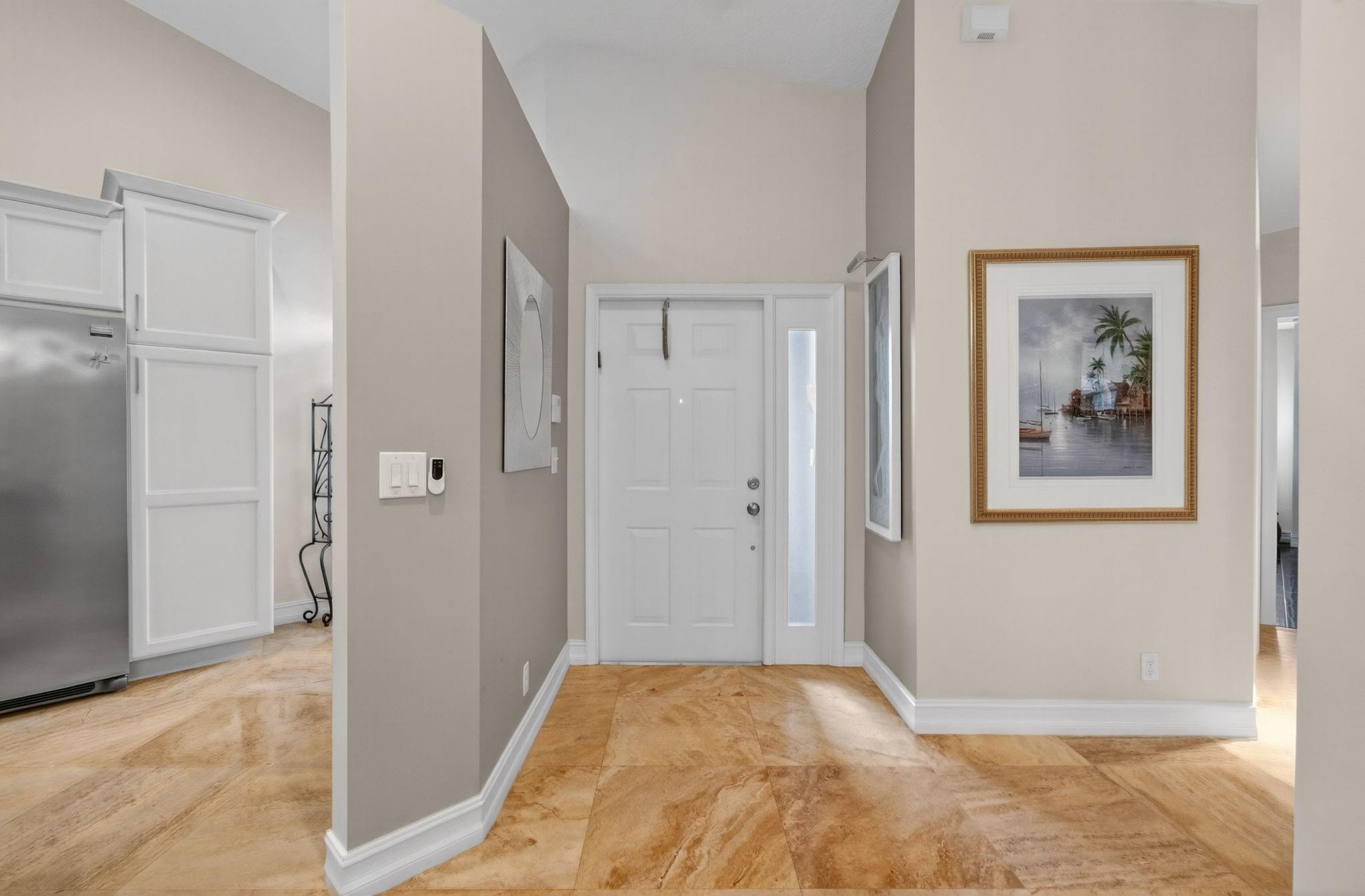 NEW PRICE - REDUCED TO SELL! Mizner Pointe, a gorgeous guard-gated community & exceptional lifestyle. Affordable, easy living HOA monthly dues of $378 provide roof repair/replacement, lawn care, trash, ADT security, internet/cable. Experience soaring cathedral ceiling, thoughtfully redesigned & remodeled European-style kitchen perfectly complementing its elegant sense of spaciousness. Every detail showcases quality craftsmanship, custom stone accent wall, polished 24x24 seamless-grout travertine marble floors, & real wood flooring in bedrooms. Gourmet kitchen with high-end custom cabinetry, soft-close drawers/pull-outs/lazy Susans, display cabinets, premium hardware, stunning granite countertops, a waterfall island, farmhouse sink. NEW roof (3 yrs), NEW gutters (3 yrs), NEW A/C (2 yrs)