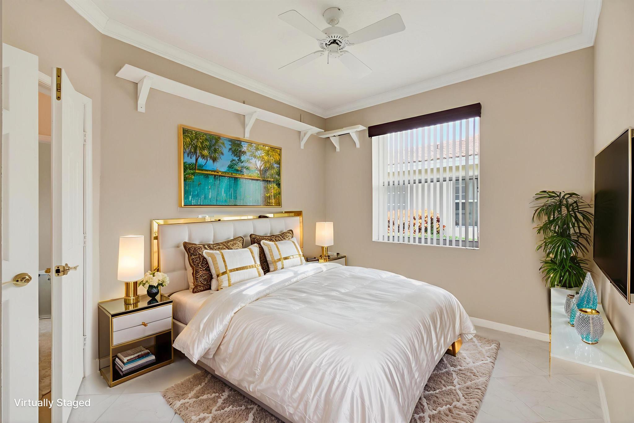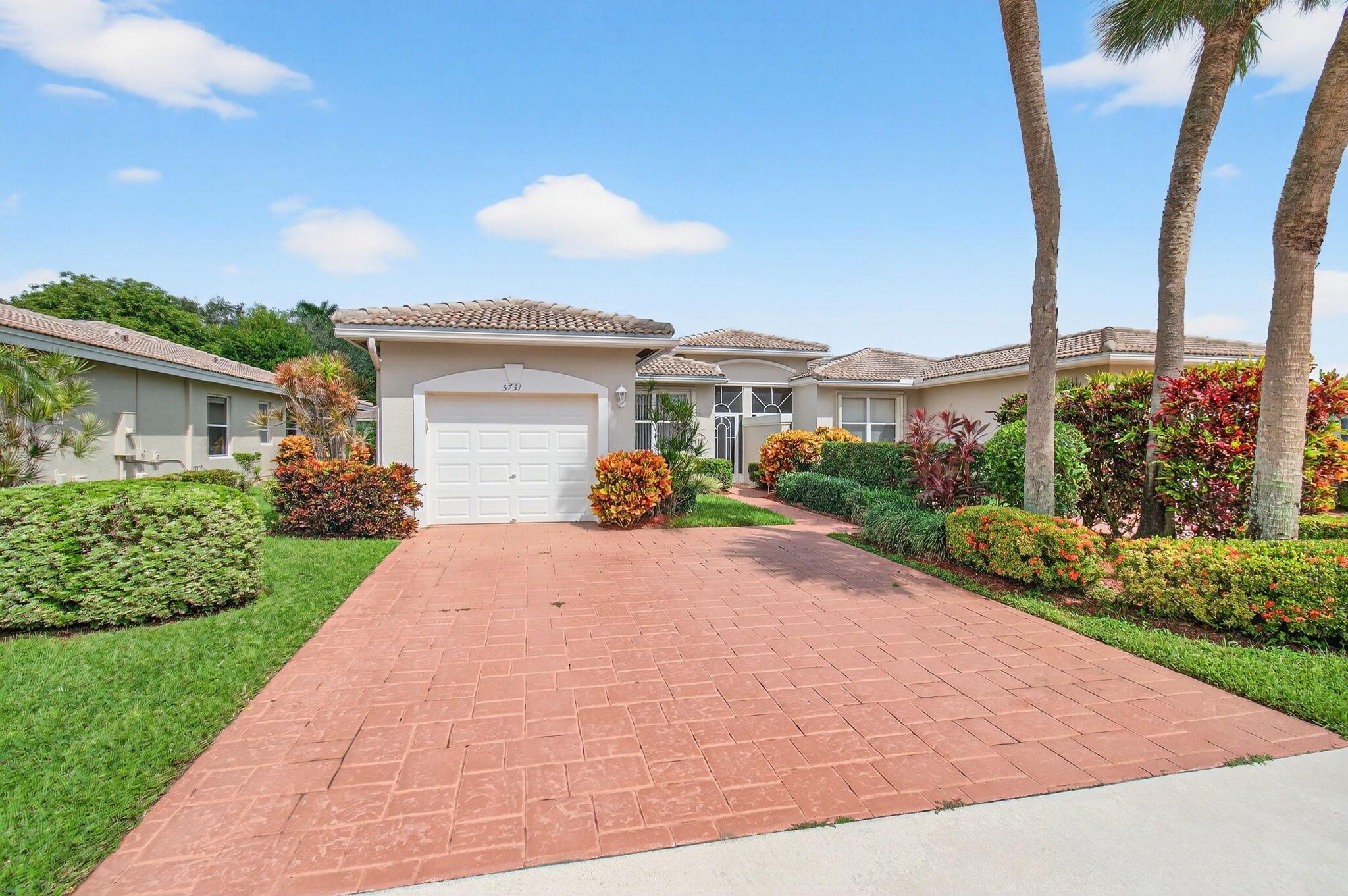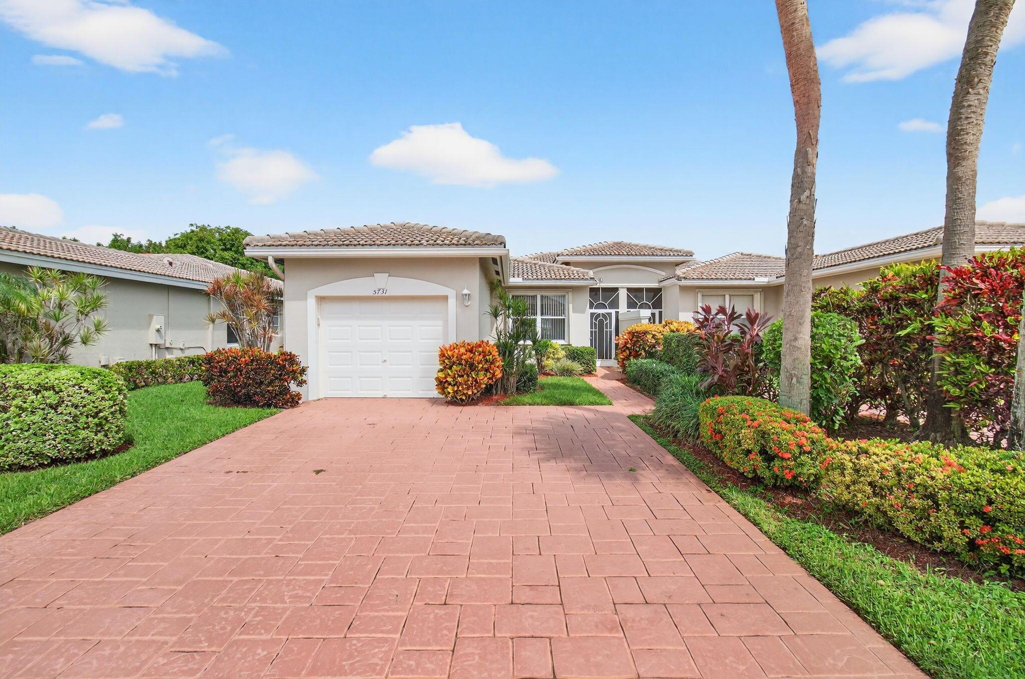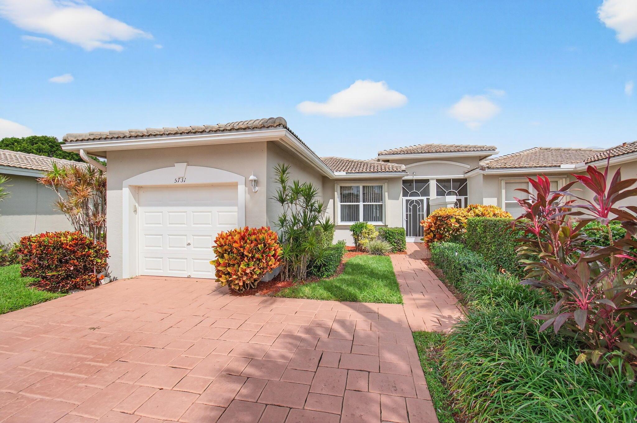 MAJESTIC ISLES- SUPER ACTIVE AND PRESTIGIOUS ADULT COMMUNITY. CLOSE TO PLACES OF WORSHIP. Welcome to 5731 Emerald Cay Terrace, in the heart of the secure, gated community of Majestic Isles, Boynton Beach. This remarkable villa flawlessly combines modern architecture and understated elegance that promise an unparalleled living experience.As you entertain or relax, you are enveloped by a sense of grandeur created by soaring ceilings and crowned moldings present throughout the premises. The neutral tiled flooring, found across all main living areas, exudes a charming blend of aesthetic appeal and durability. Luxury vinyl flooring is thoughtfully incorporated into two of the three bedrooms, promoting warmth and comfort underfoot.