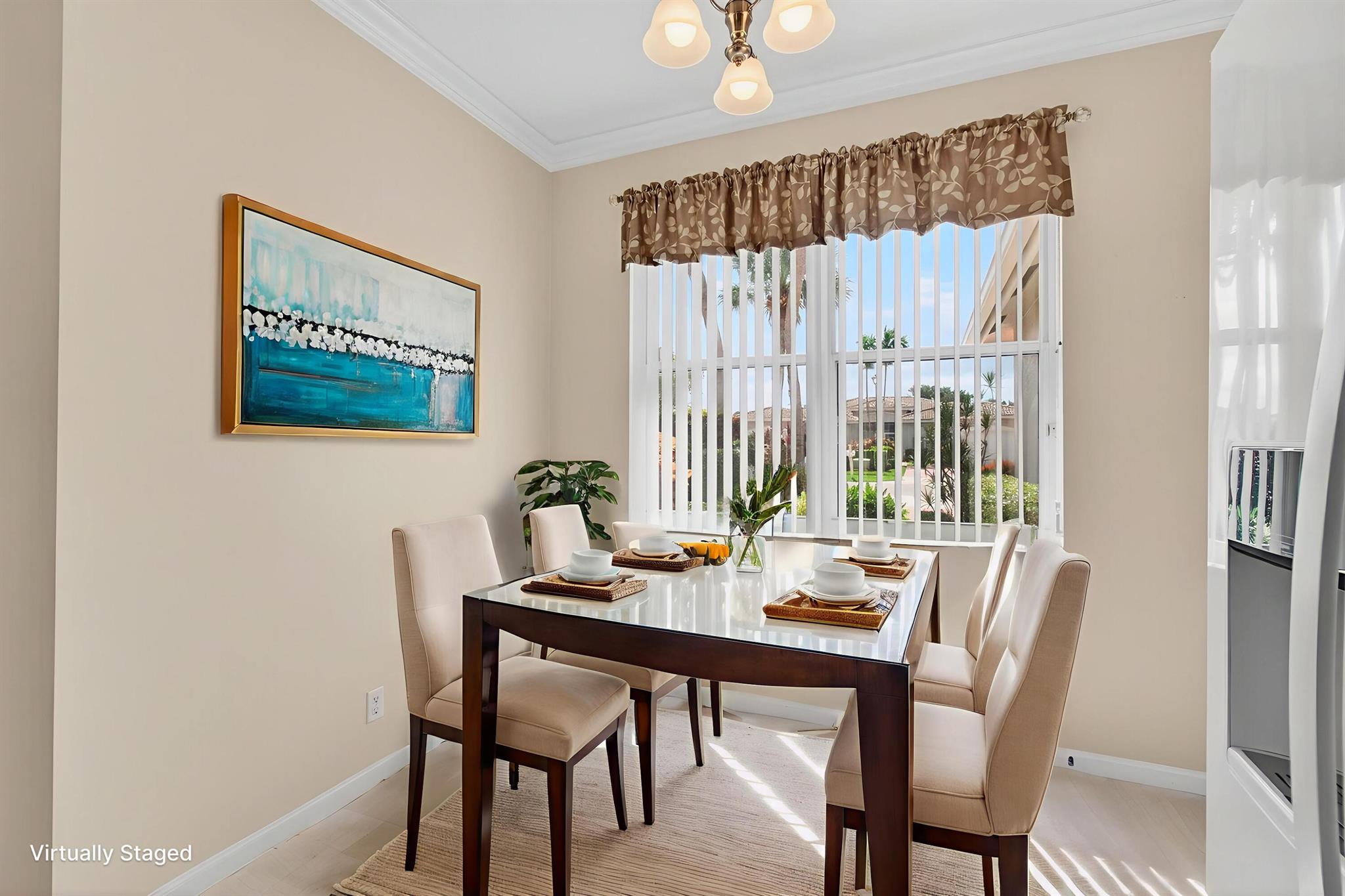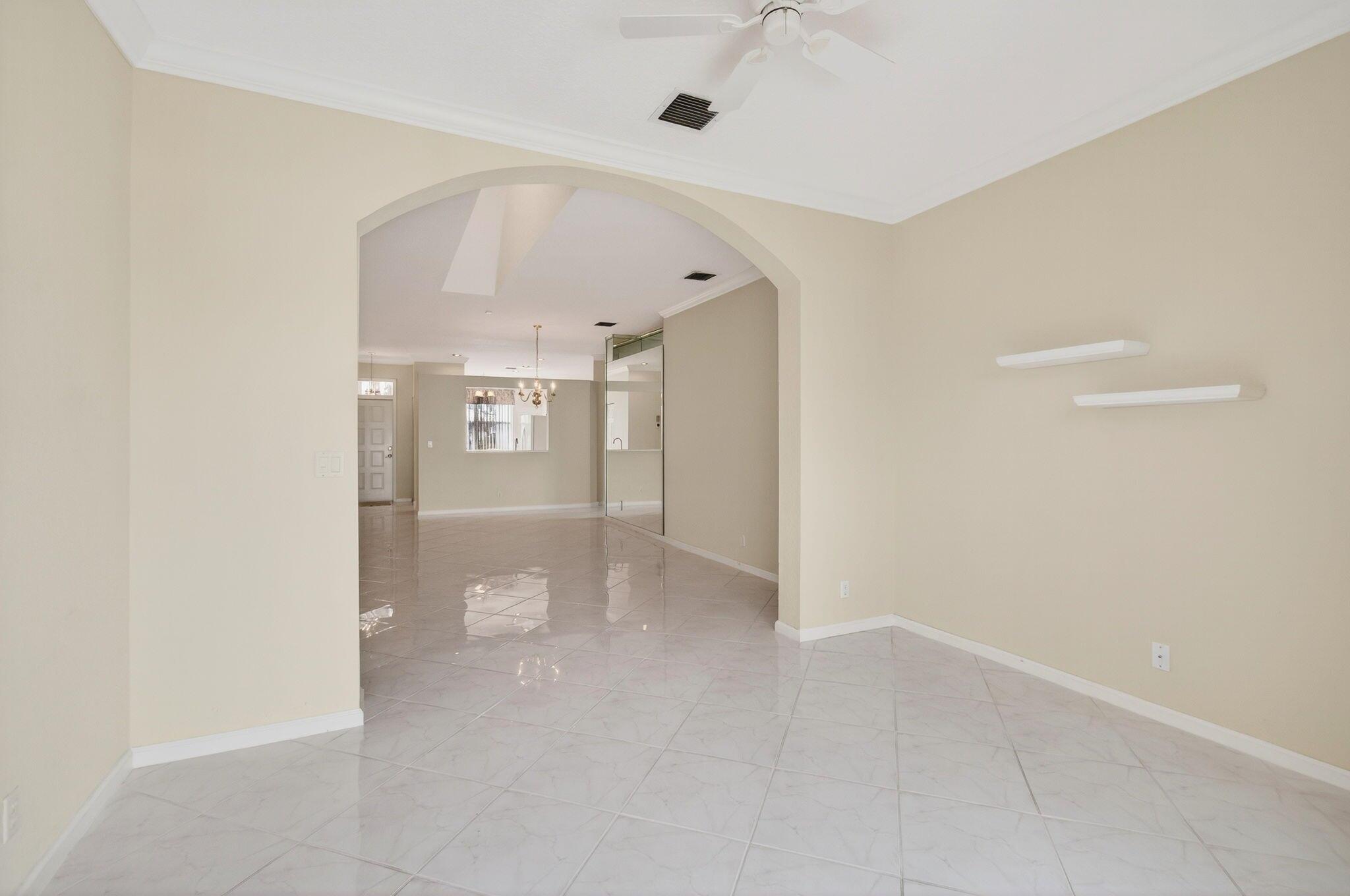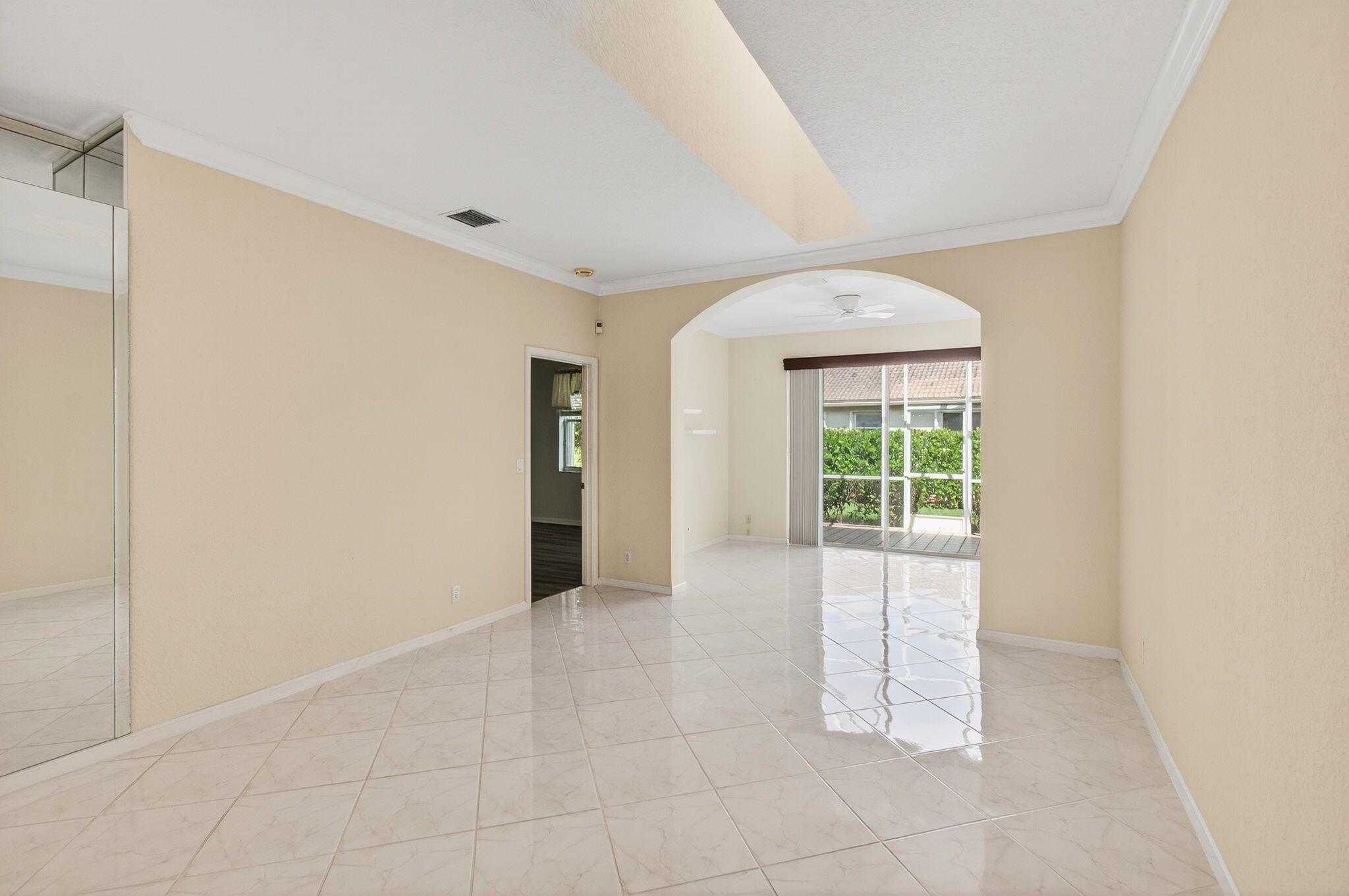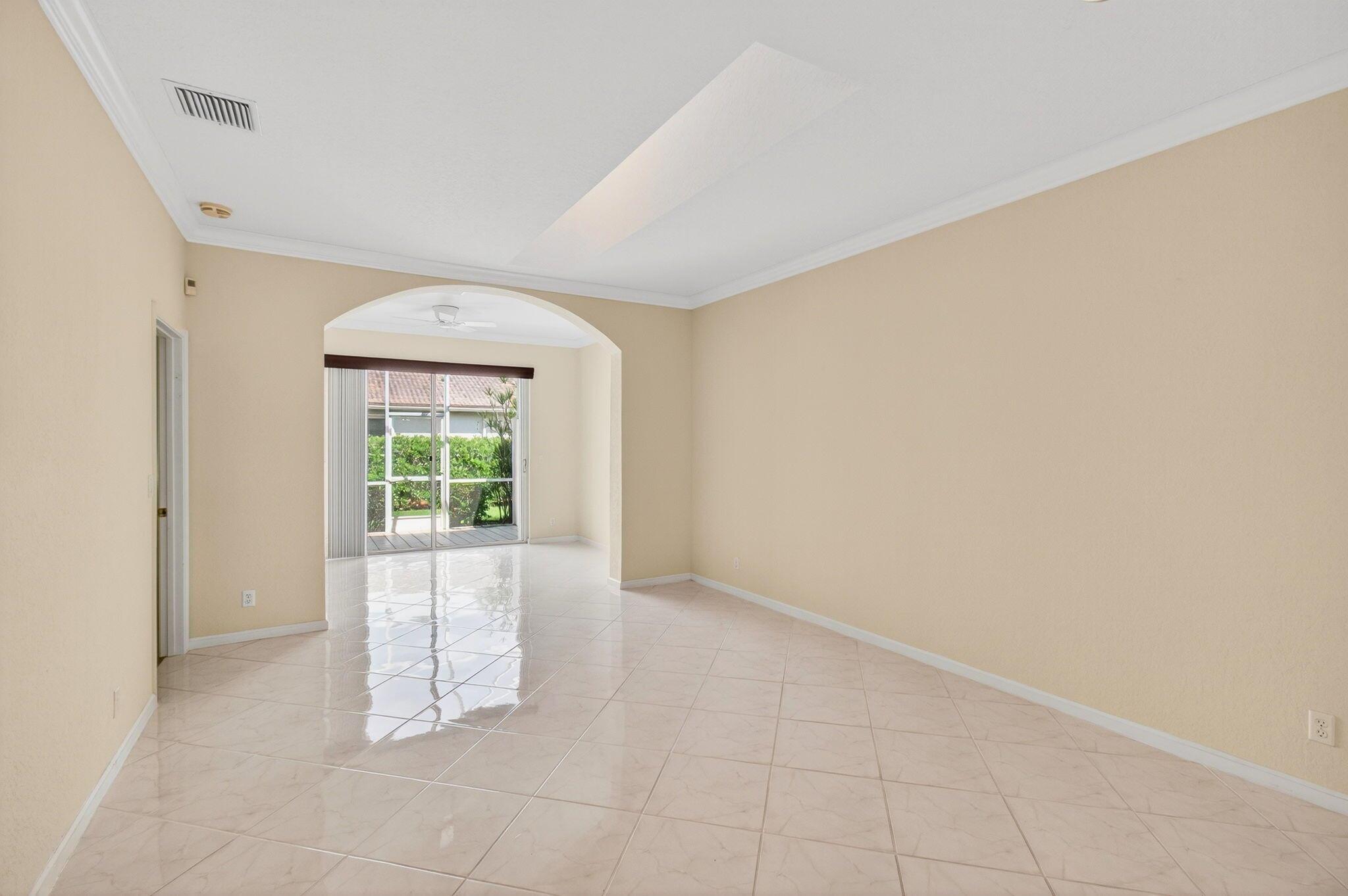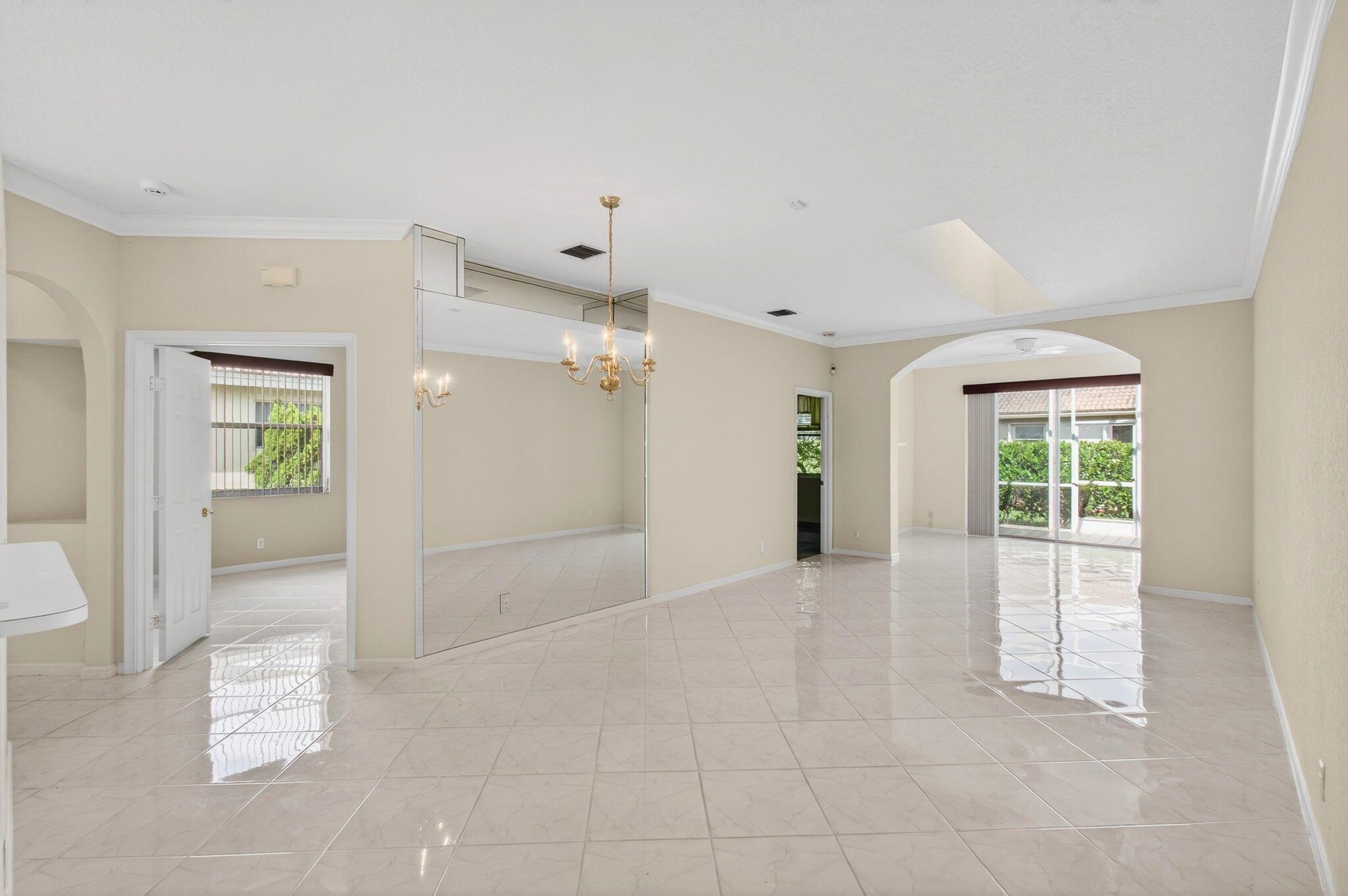MAJESTIC ISLES- SUPER ACTIVE AND PRESTIGIOUS ADULT COMMUNITY. CLOSE TO PLACES OF WORSHIP. Welcome to 5731 Emerald Cay Terrace, in the heart of the secure, gated community of Majestic Isles, Boynton Beach. This remarkable villa flawlessly combines modern architecture and understated elegance that promise an unparalleled living experience.As you entertain or relax, you are enveloped by a sense of grandeur created by soaring ceilings and crowned moldings present throughout the premises. The neutral tiled flooring, found across all main living areas, exudes a charming blend of aesthetic appeal and durability. Luxury vinyl flooring is thoughtfully incorporated into two of the three bedrooms, promoting warmth and comfort underfoot.