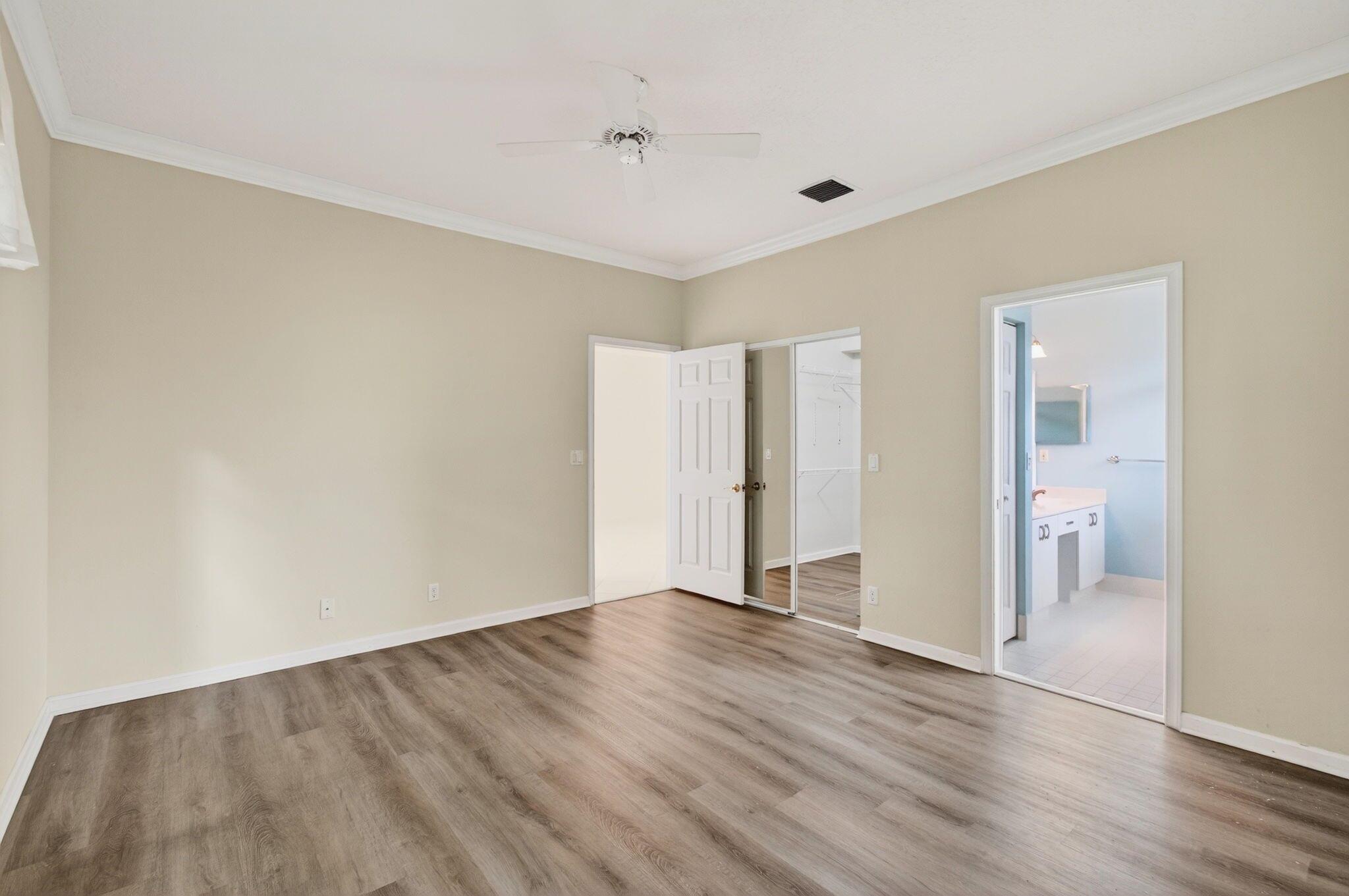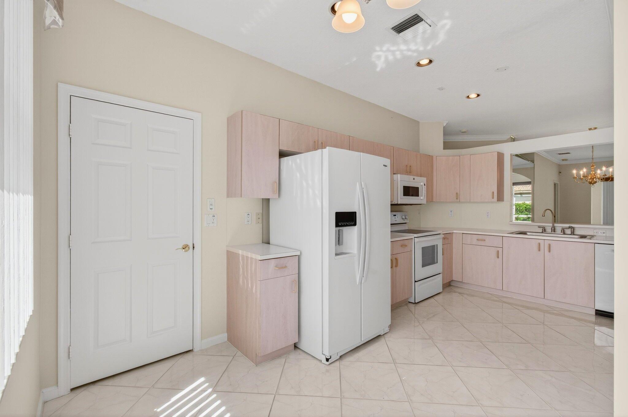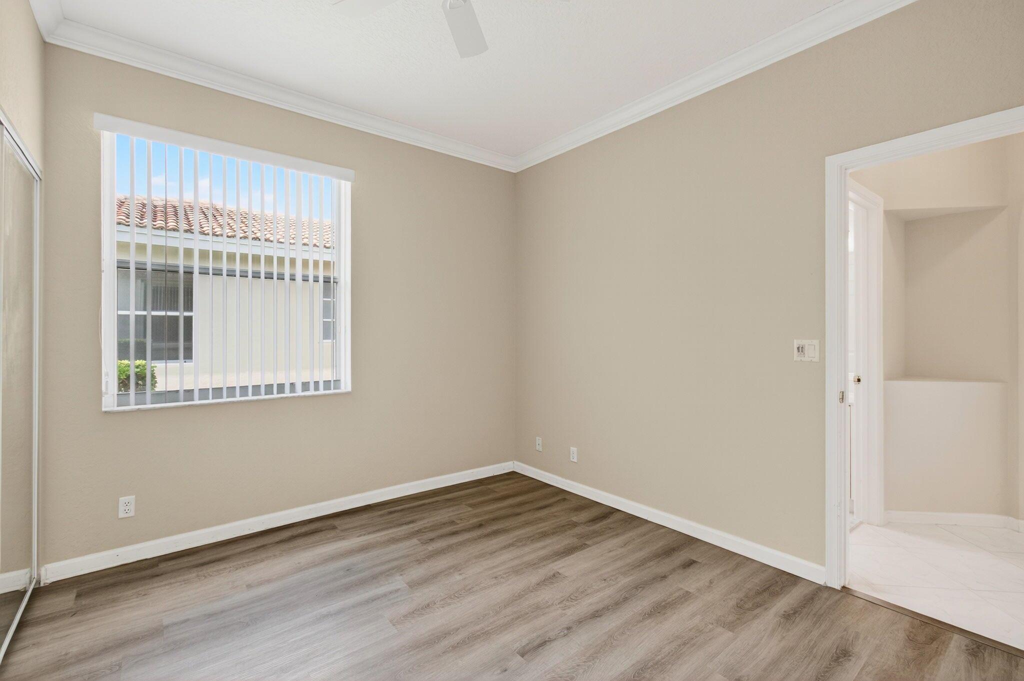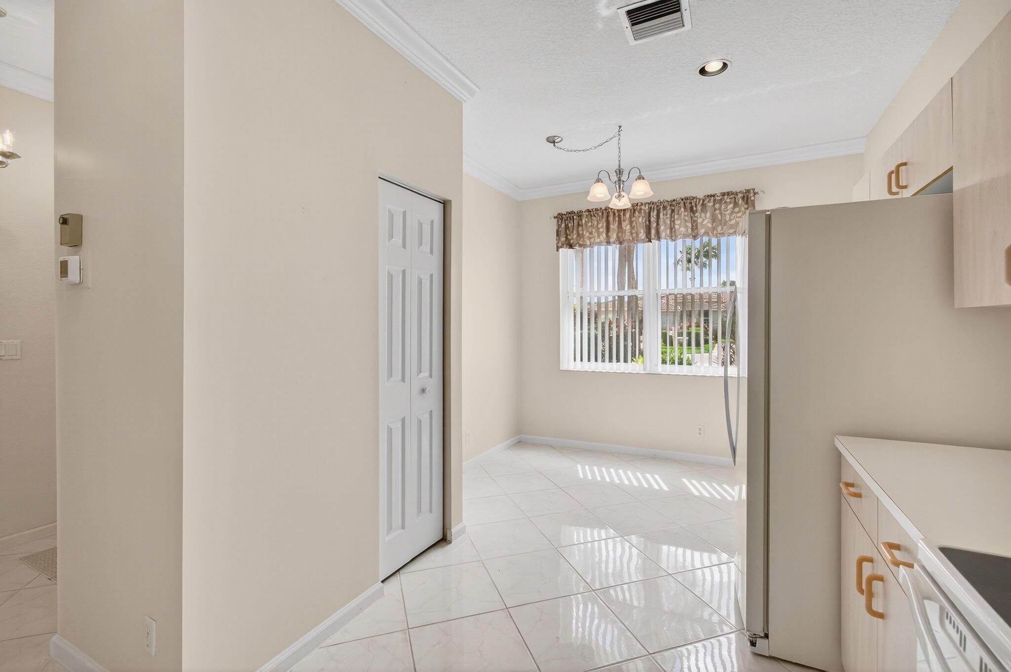 MAJESTIC ISLES- SUPER ACTIVE AND PRESTIGIOUS ADULT COMMUNITY. CLOSE TO PLACES OF WORSHIP. Welcome to 5731 Emerald Cay Terrace, in the heart of the secure, gated community of Majestic Isles, Boynton Beach. This remarkable villa flawlessly combines modern architecture and understated elegance that promise an unparalleled living experience.As you entertain or relax, you are enveloped by a sense of grandeur created by soaring ceilings and crowned moldings present throughout the premises. The neutral tiled flooring, found across all main living areas, exudes a charming blend of aesthetic appeal and durability. Luxury vinyl flooring is thoughtfully incorporated into two of the three bedrooms, promoting warmth and comfort underfoot.