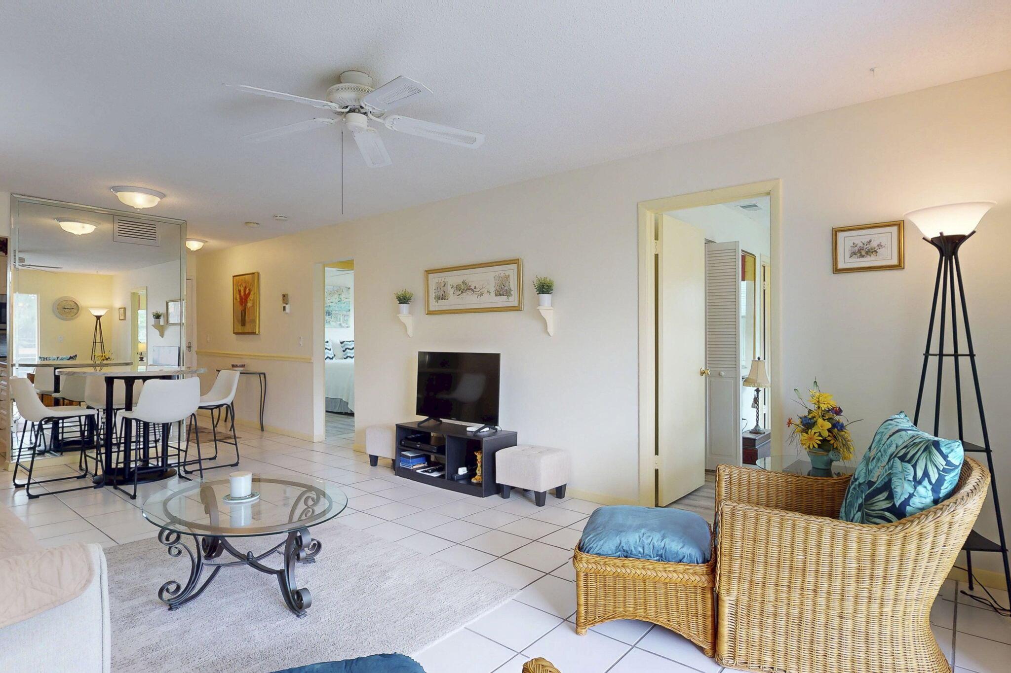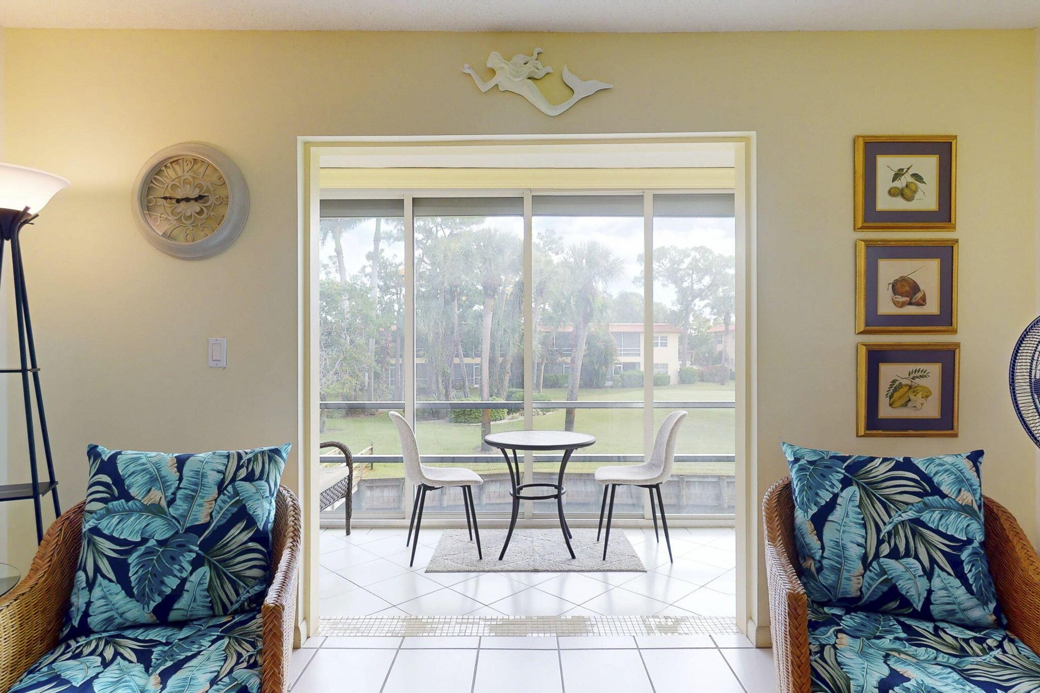 Welcome to Monterey Yacht & Country Club, a vibrant 55+ community offering unlimited golf, two clubhouses, a heated pool, other activities plus direct kayak access to our beautiful St. Lucie River. This updated 2BR/2BA end-unit condo features golf course views, an enclosed lanai, new stainless steel appliances, white cabinets, newly renovated bathrooms and a 2023 A/C. Enjoy fishing from the pier, scenic sunsets, and a full calendar of social activities. HOA includes golf, cable, internet, water, sewer, and more. Minutes to downtown Stuart and beaches!