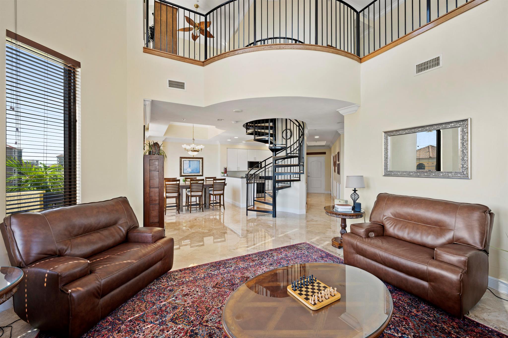One of a kind spacious 2 story condo with 25 foot ceilings, Entire unit completely freshly painted, All new stainless steel LG appliances July '23, new water heater '23, march '23 new a/c, all marble floors and bathroom shower and countertops just re-polished, 2 inch blinds throughout unit. Amazing architectural design, balcony off dining room w/SE city and partial intracoastal views. Located in the luxurious One City Plaza in downtown WPB! Open Floor plan, complimentary valet parking for guests. 2 parking spaces in covered parking garage w/no elevator access needed. Close to City Place, dining, PBI Airport and more! This luxury building has a 17th fl roof top inground pool with views of the intracoastal and Palm Beach Island, on site manager, fitness center, sauna, steam room, 7th floo