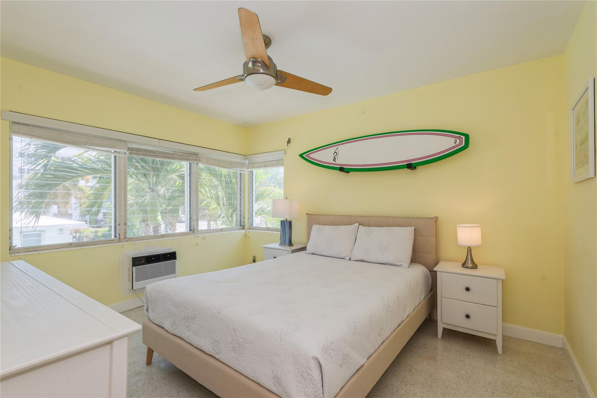 Incredible direct Intracoastal views from your living room and kitchen. Located in the lovely Mid-Century modern boutique complex, the Panama Club, with only 10 condos. Every day you have your own boat parade. This second floor condo comes fully furnished with a washer and dryer. Terrazzo floors flow throughout. A large open kitchen with a gas stove, granite counters and stainless steel appliances. The updated bathroom has a walk-in shower. Only a short distance to the Beach and everything the North Beach Village neighborhood has to offer with its outdoor cafes, bakery and more. Comes with a parking space which can fit 2 cars tandem. What a location!