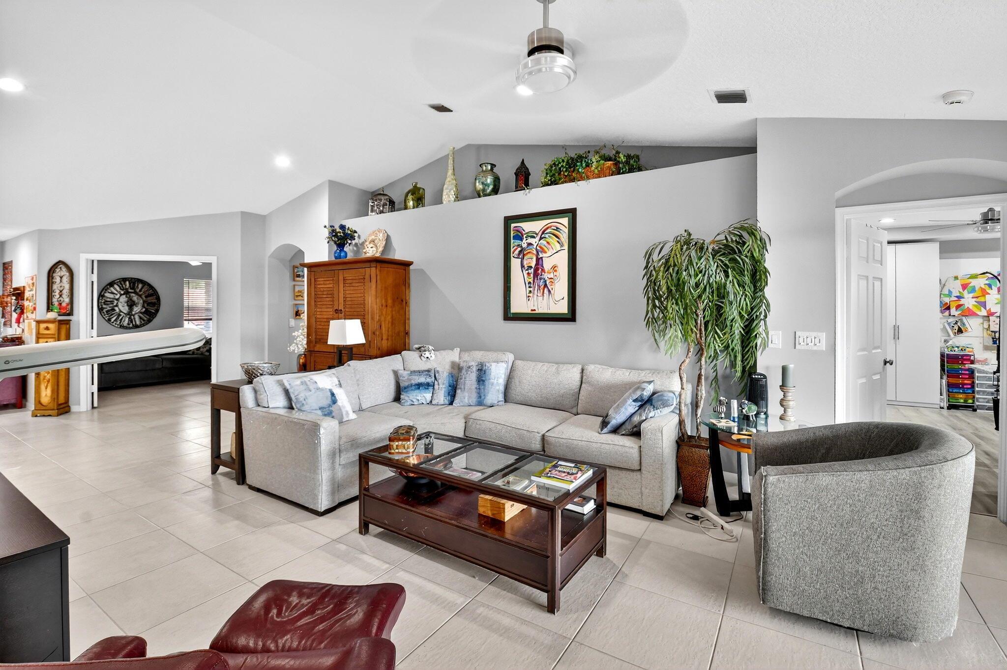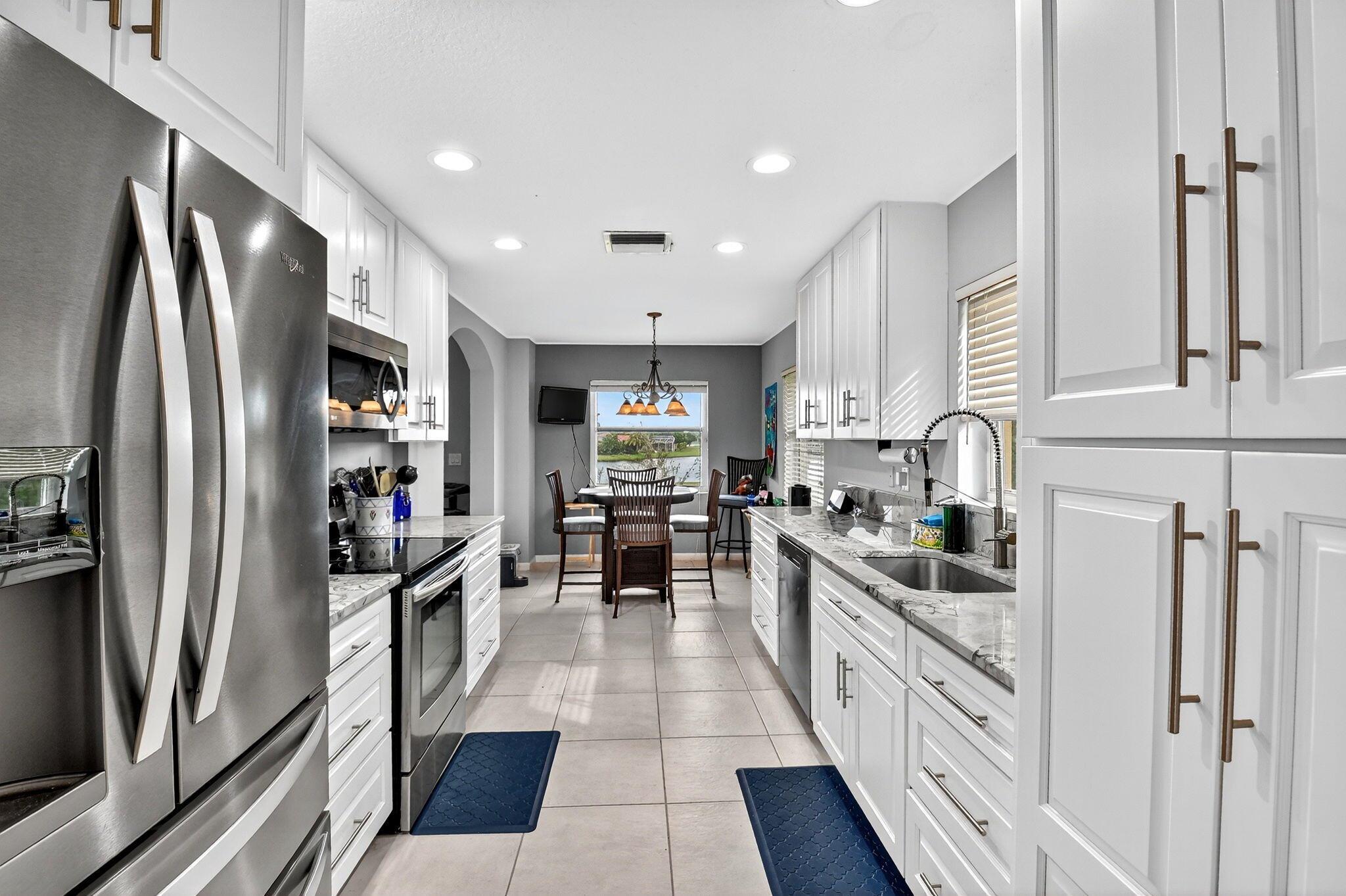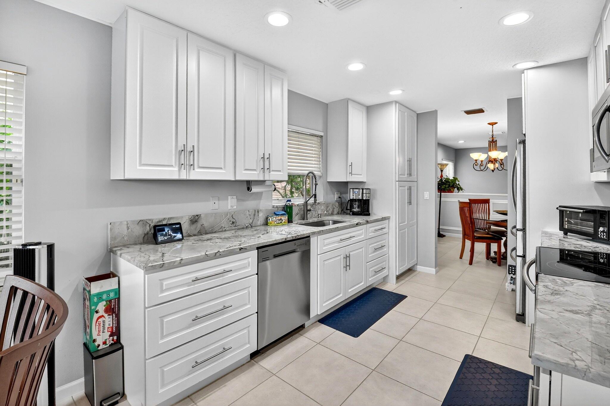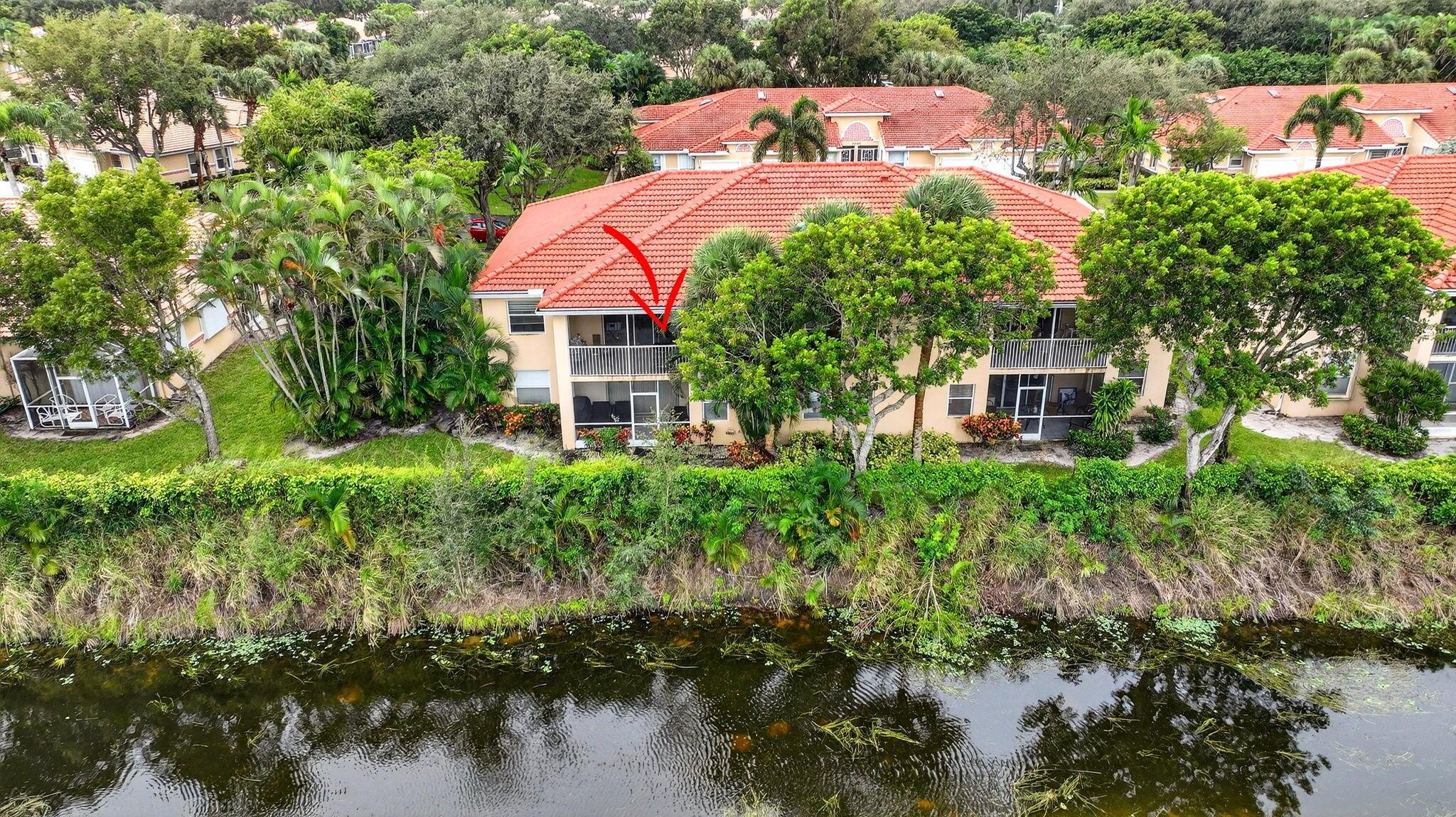 RARELY AVAILABLE 2nd floor coach home with interior elevator, extensively renovated featuring vaulted ceiling, screened-in patio overlooking a gorgeous wide lake (outdoor living at its finest.) modern kitchen with quartz counters, custom white cabinets & SS Appliances, 2 beautiful, renovated bathrooms. Luxury laminate in master & 2nd bedroom. New roof was installed in 2024. NO assessments! Condo fees include water. alarm, internet, TV, all amenities at newly renovated Club with tennis, pickleball, billiards, bocce, theatre, cafe, 35 social clubs, gym, water aerobics & much more, No country club fees. Move right in and enjoy. Can be rented immediately.