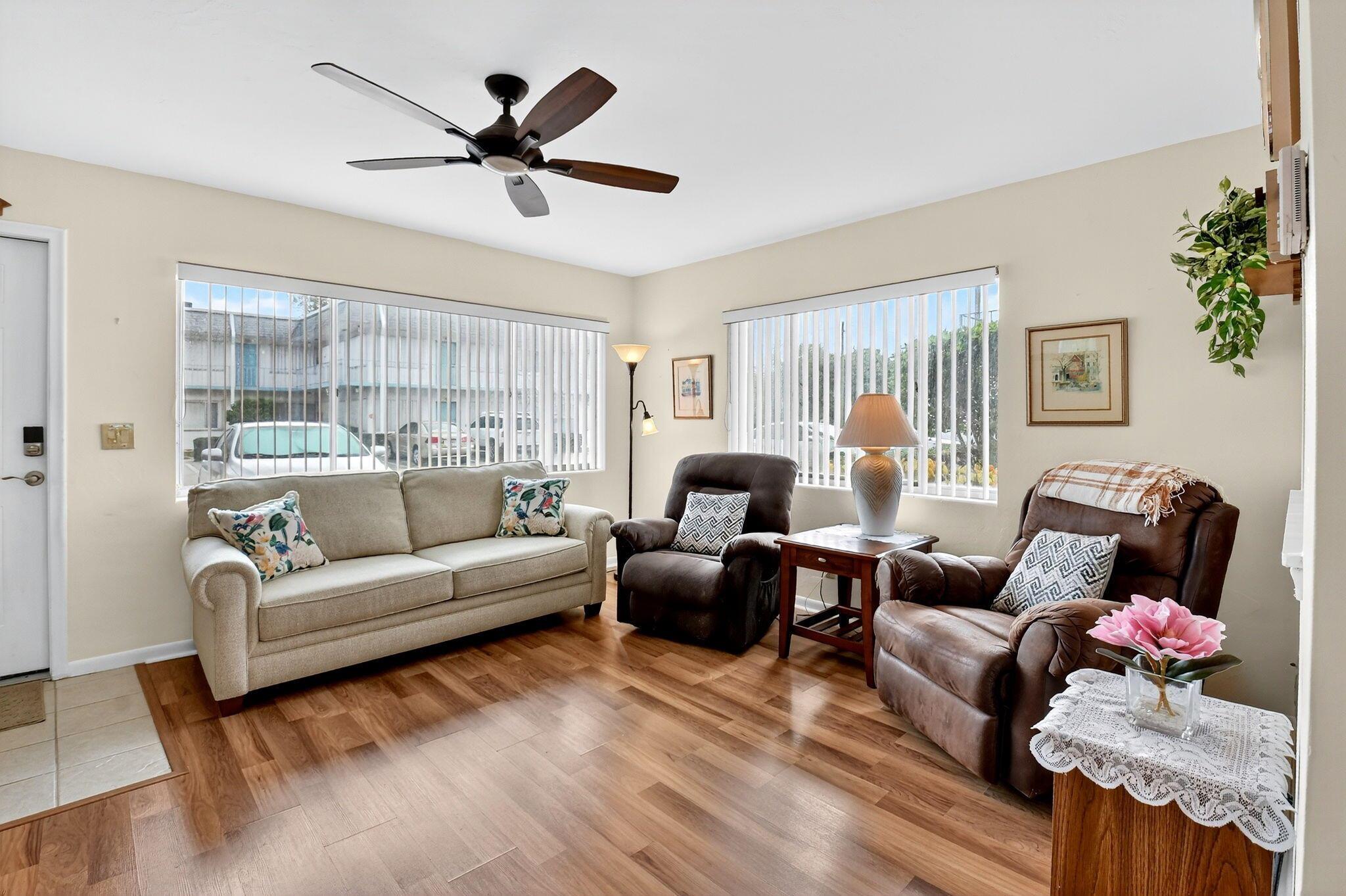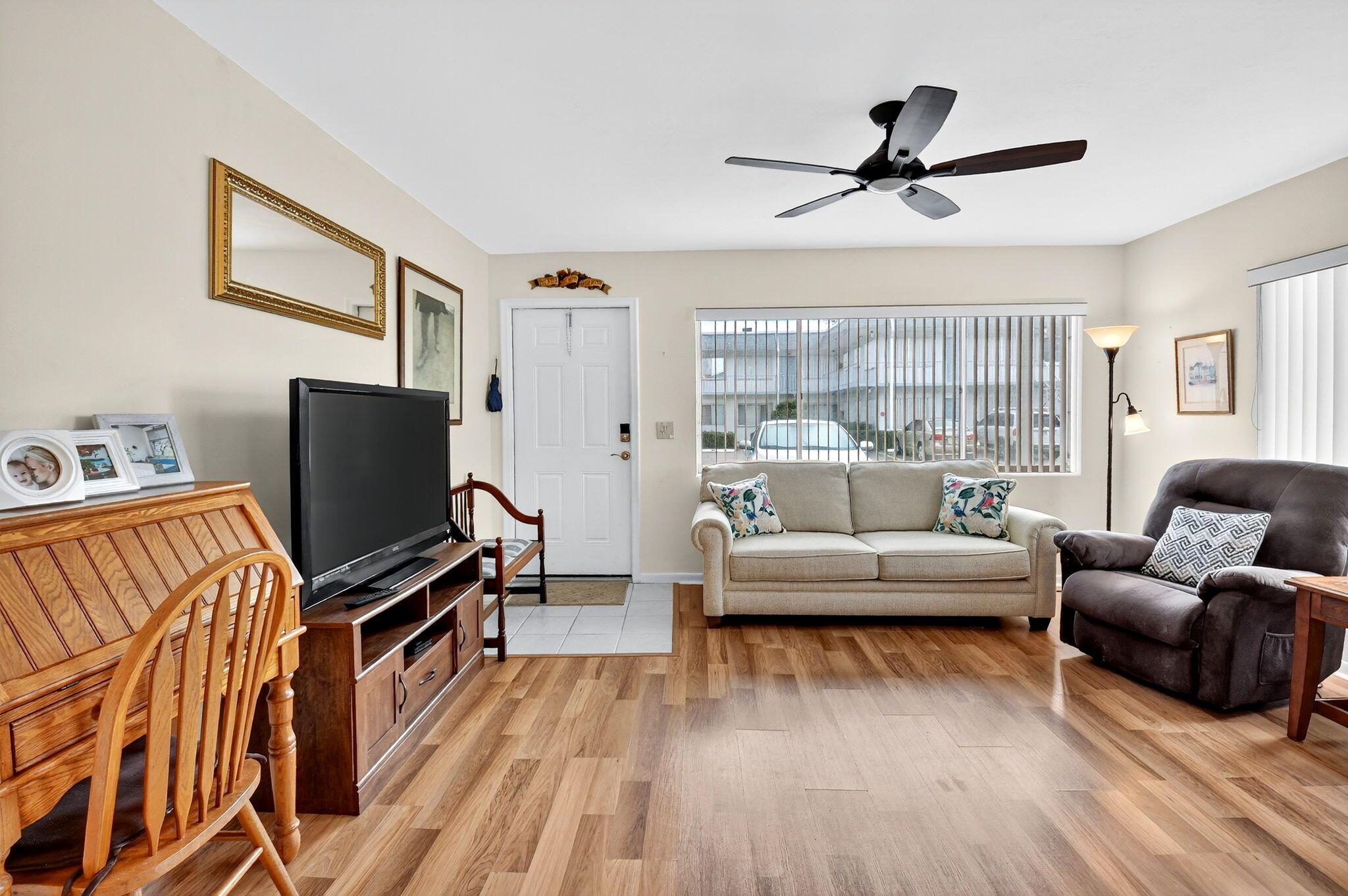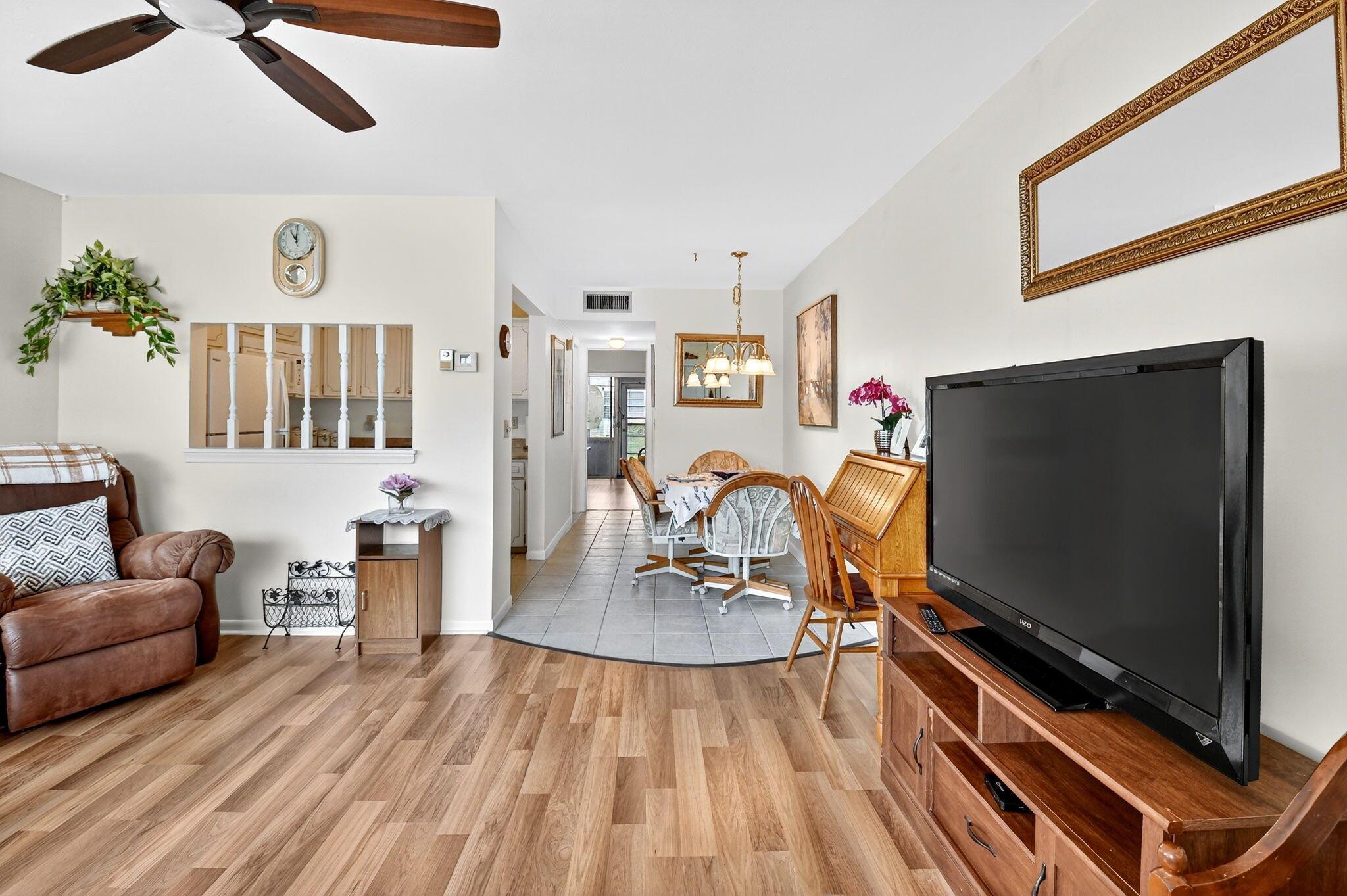 Priced under RPR value of $96,670. Cute 1 BR condo in well-run/financially stable 55+ complex. 1st floor convenience. Parking space just feet from front door. AC system brand new. View of lake from 2 LR windows. Close 2 everything...95 frwy/Tri-Rail Station, cute dwntwn LWBeach, 8 min to ocean. 15 min to dwntwn WPB/Delray Beach 4 more restaurants/shopping. New luxury vinyl/ceramic tile flooring throughout! Fully furnished. Artwork negotiable. Amenities included w/ low HOA....gigantic pool/2 gyms/community room/library, BBQ/picnic area/Craft room/Auditorium showing 1st rate movies on Saturdays/pickleball/bocce ball/shuffleboard, etc. 700+ credit score. No pets. Fresh paint in LR/DR/porch. New windows/carpet n porch. Grab this one before it's gone! You will love the Lake Osborne lifestyle!