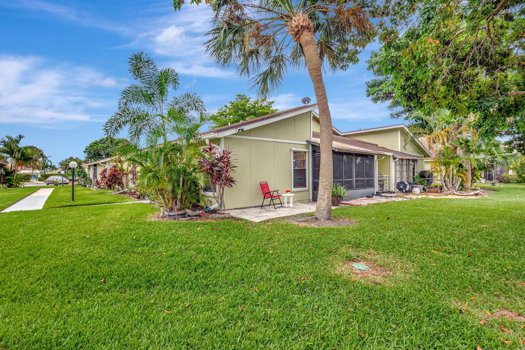 Welcome to this spectacular villa with breathtaking water views and plush greenery. This villa features a large, enclosed patio to entertain your family and friends. 2 bed 2 full bath equipped with washer and dryer, newer stylish flooring throughout, 2024 water heater, new thermostat. Plenty of storage capacity. An abundance of windows to let in the natural light. Lovely primary bedroom features a sliding glass door to an outside patio with a fence and door to the front yard. This is one of the premier locations, the swimming pool is steps away from your front door and the club house is only seconds away which features billiards, library, sauna, swimming pool, community room for cards, board games, the More...