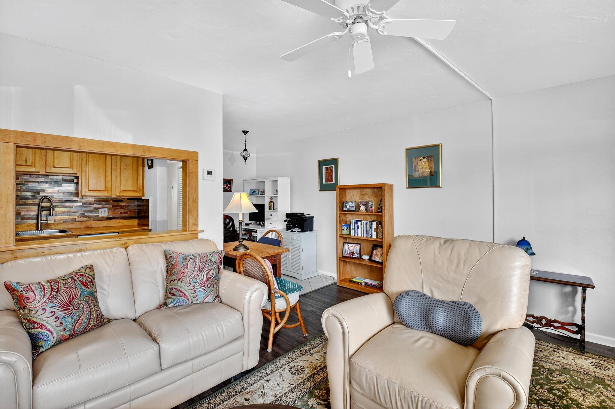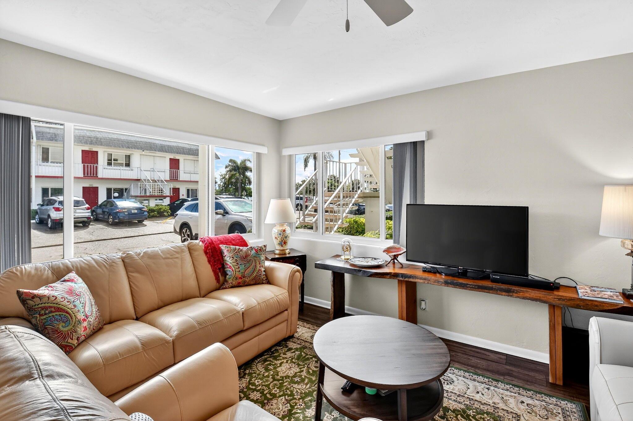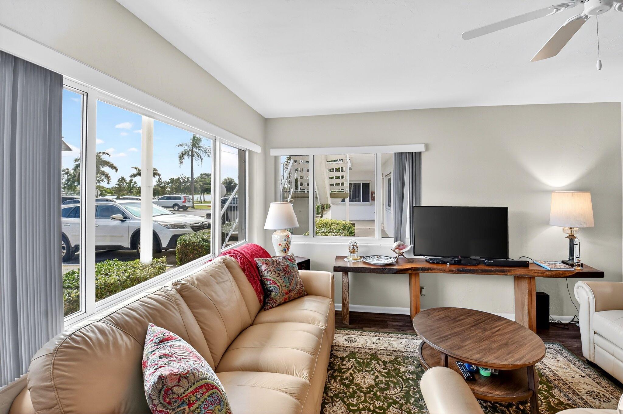 Priced under RPR value of $111,910. One BR unit in well maintained/financially stable 55+ complex. FIRST flr. lmpact glass. Newer AC/water htr. Located 8 min from ocean/across from 750-acre John Prince Park. Walking/biking trails nearby. Lake views from 2 LR windows. Assigned parking space/guest spot in front of unit. Gorgeous bamboo flooring. Nice beige leather furniture. Stunning custom wood kitchen. Great natural light! Tranquil bedroom w/private backyard. Just 2 min to 95 freeway/Tri-rail station. 5 min to dwntwn Lake Worth Beach. 15 min to WPB/Delray Beach for their abundant restaurants/shopping. Amenities: gigantic pool, 2 gyms, pickleball, bocce ball, shuffleboard, BBQ area, library, auditorium shows movies on Saturdays. 700 credit score. No pets. This building has reserves!