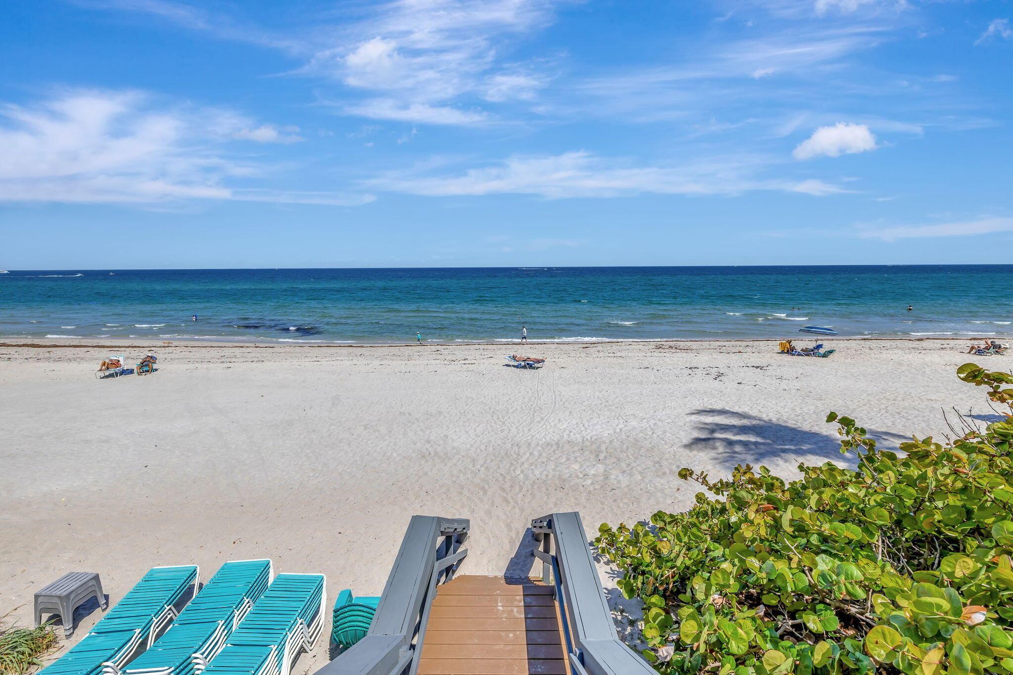 This 1700+ sq/ft 2 bedroom, 2.5 bathroom condo is renovated with high end, designer finishes, ocean views from 300 sq/ft private balcony on prestigious Hillsboro Mile! The kitchen includes 3'' thick quartz counter tops, lots of storage,under cabinet lighting, high-end stainless-steel appliances, built-in wine fridge, no detail was overlooked. The primary bedroom has access to the tiled balcony and all bedrooms have built out, walk in closets. Bathrooms include up-scale features like an over-sized walk-in shower with built in bench and a sunken jacuzzi with a heater. Private beach with loungers,beachfront pool,pickleball and tennis court, fitness center, waterfront clubhouse with grills, 2 deeded parking spots, 2 pets allowed and security. Free shuttle and walking distance to restaurants.