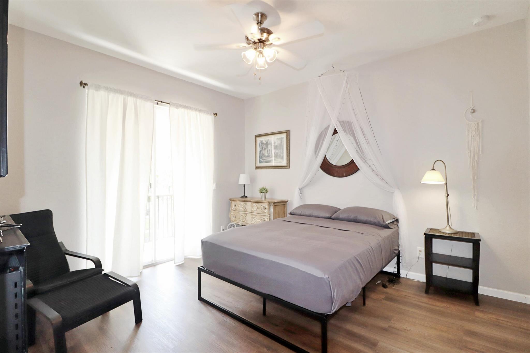 Discover this tranquil, chic, and sunny 2nd-floor condo in the coveted Promenade at Tradition with pool and tropical green space views. Nestled in the heart of Tradition Square, just 2 blocks from vibrant restaurants, the green market, Publix, schools, parks, and rec. Open floor plan with ample storage, 2 balconies, and spacious bedrooms. The elegant primary suite has 2 walk-in closets, linen closet, separate tub, dual sinks and shower. Enjoy luxury features such as high-end LVP flooring, 18'' tile, 8 ft doors, LED lighting, S/S appliances, 9 ft ceilings in living areas, fresh paint (2023), 2017 roof and oversized 1-car garage (27x12) with high ceilings. In immaculate condition, this condo offers the charming downtown lifestyle you've dreamed of, with major stores just blocks away.