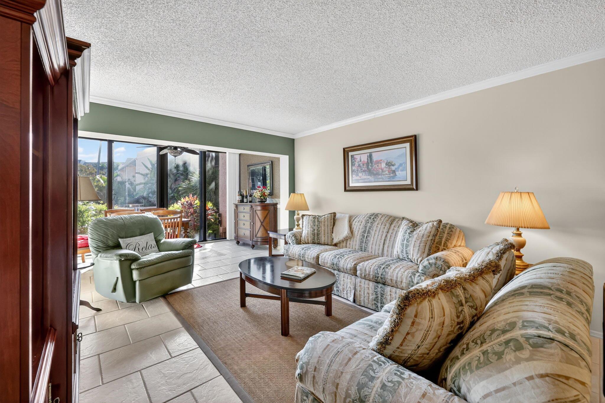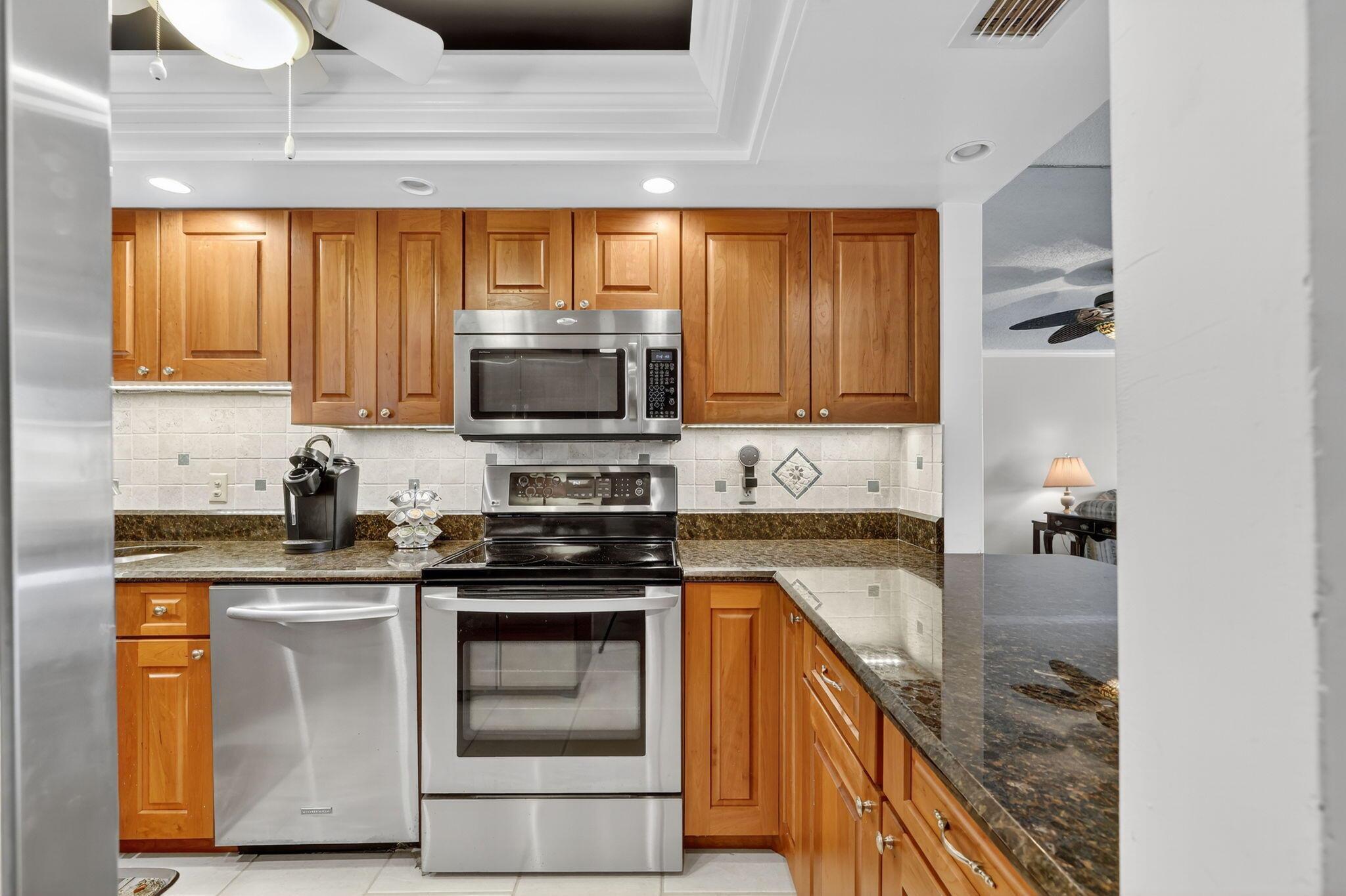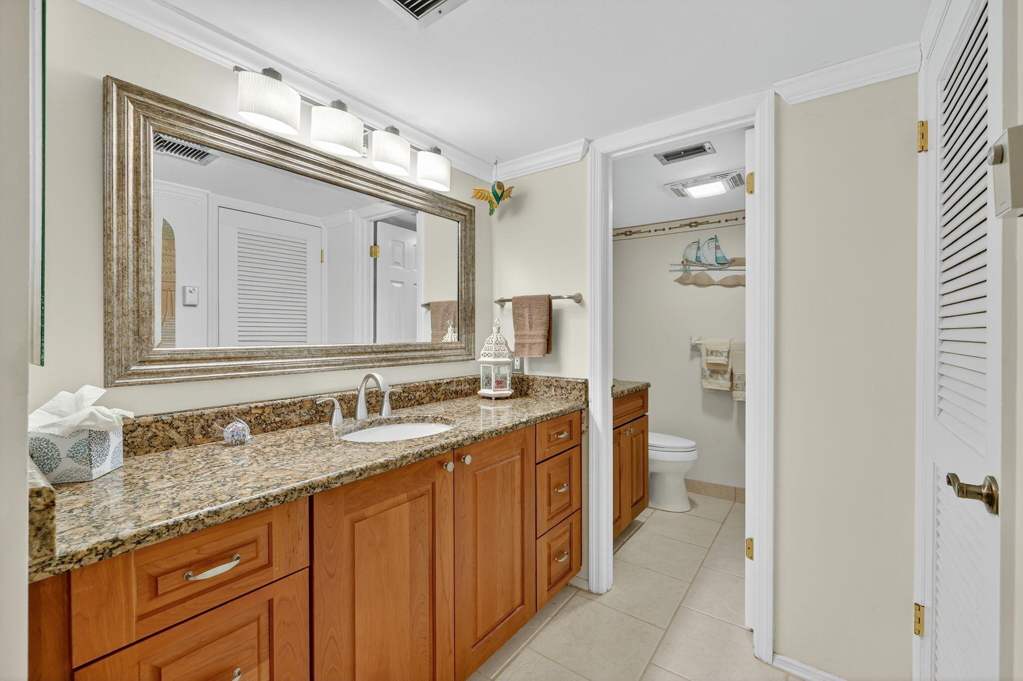 Beautiful 2 bedroom 2 bath ''Beachtree'' condo with a private deck on the pond! 1st floor unit, no stairs! Upgrades include granite kitchen & bath countertops, soft close drawers in kitchen, new washer/dryer, under cabinet lights, crown molding, impact windows! Beautiful deck on the pond great for sunbathing, dining & entertainment. Excellent location in Ocean Village near all amenities. Enjoy the best of Florida living at this beautiful oceanfront community offering 24 hr gated entry, 9 hole par 3 golf, tennis, pickleball, bocce ball, lush tropical landscaping, ocean front restaurant & tiki bar & 3500 feet oceanfront! This condo may be rented if owner so desires! Located on beautiful South Hutchisnon Island with 21 miles of uncrowded & unspoiled beaches. Measurements approximate.