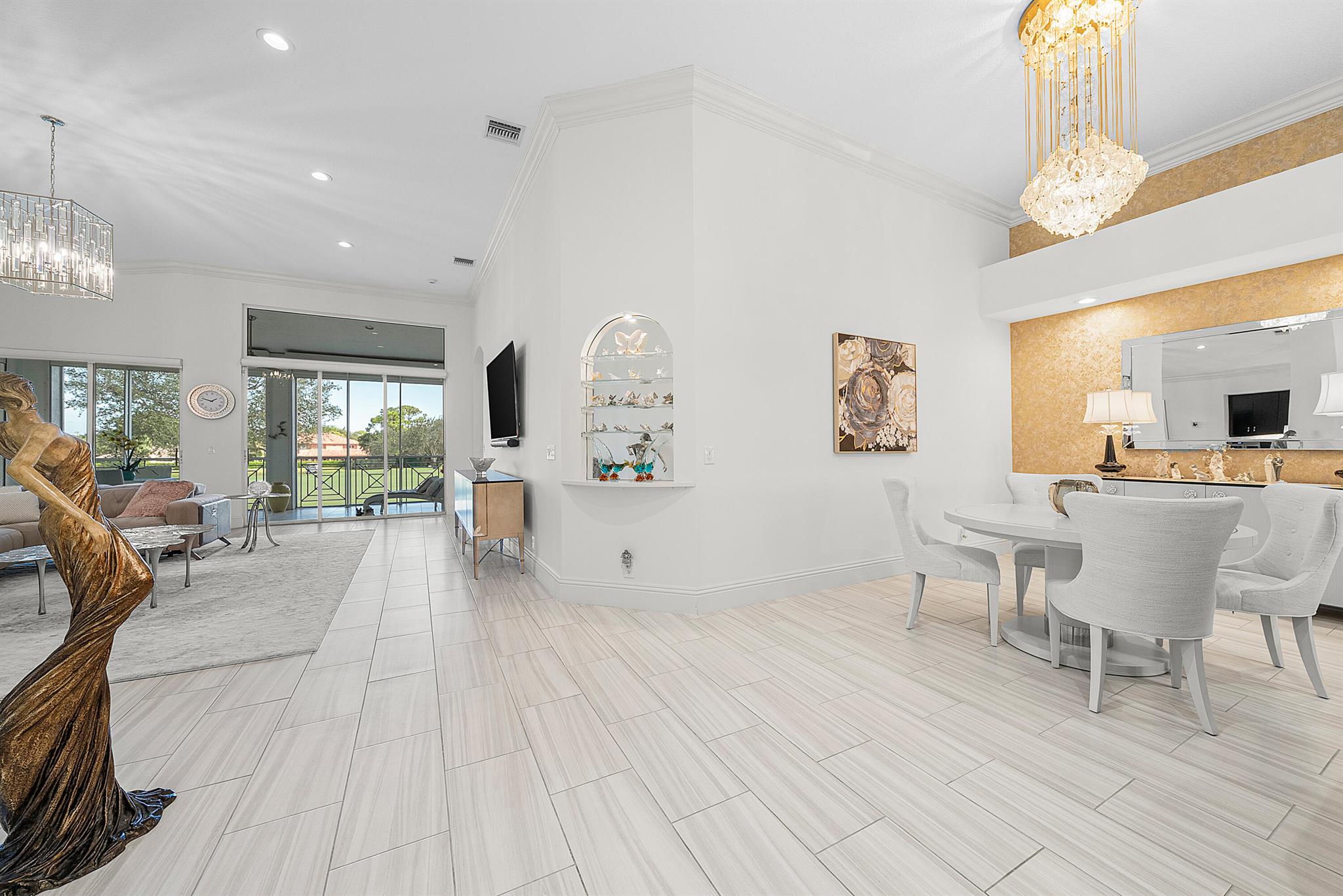 Experience timeless elegance and effortless living in this beautifully maintained second-floor condo offering stunning views of both golf and water. This light and bright 3-bedroom, 2-bath residence features an expansive great room with soaring ceilings, perfect for entertaining or relaxing in style.The third bedroom is thoughtfully designed as an office, complete with a Murphy bed and an exceptionally large guest closet, providing flexibility for visitors and work-from-home comfort. Upgrades include a newer A/C (2023), newer hot water heater (2021), and a tiled balcony with electric hurricane shutters for easy lock-and-leave peace of mind. A two-car garage completes the package. Ready to close before Nov 14th, allowing buyers to secure a full golf membership before the price increase!