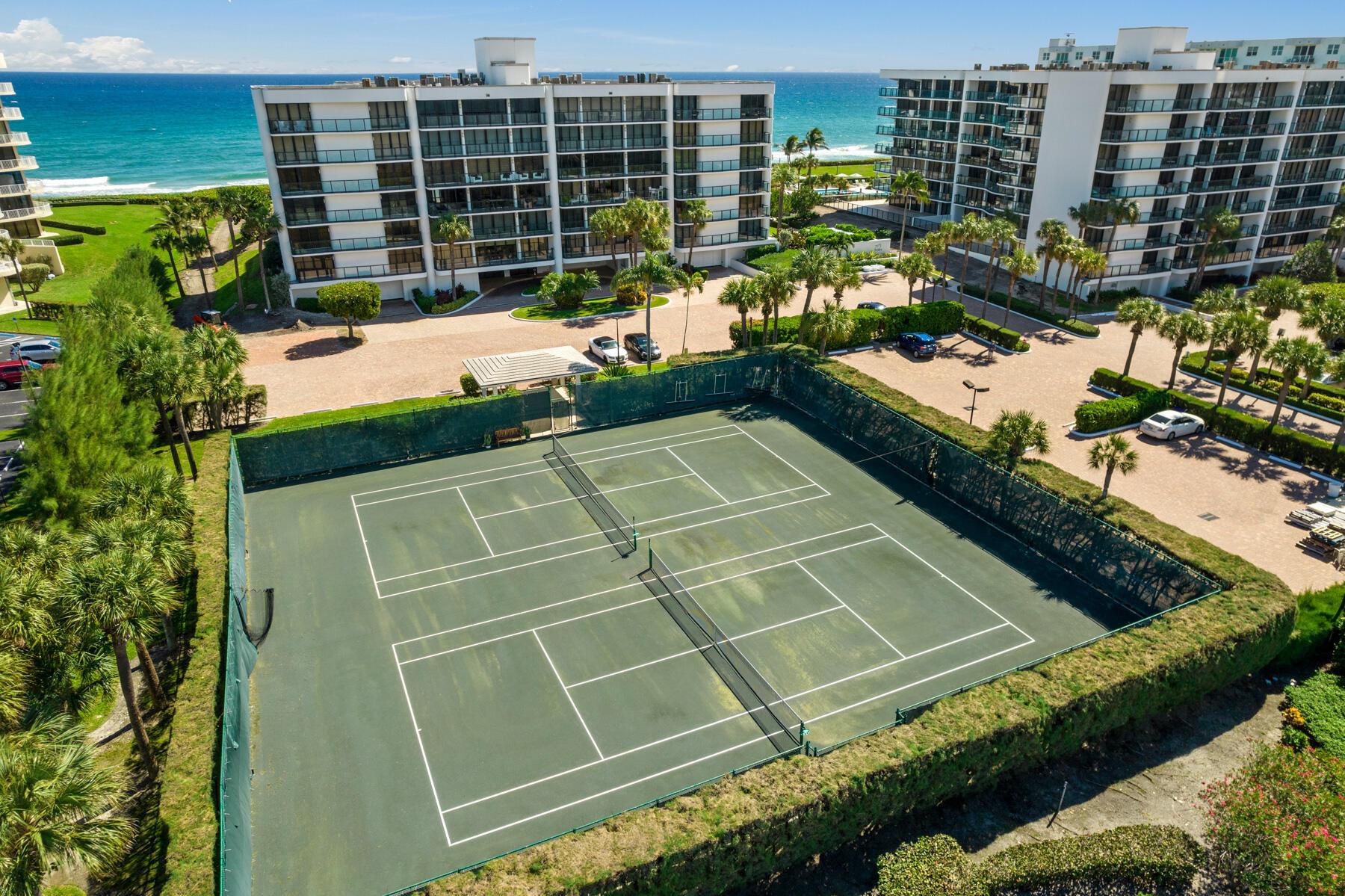 Amazing views of both the Ocean and Intracoastal from this very large, 2 bedroom condo. There are new impact windows, new large tile flooring, 2 renovated bathrooms, and a wall of built-in closets in the Primary suite. There are also 2 separate storage units included with this home. Enjoy a blissful Palm Beach lifestyle with an oceanfront pool and hot tub, 2 Har-Tru tennis courts, garage parking, fitness center and on site management. Close to great shopping, a public golf course, upscale restaurants, and only 15 minutes from the Palm Beach International Airport!