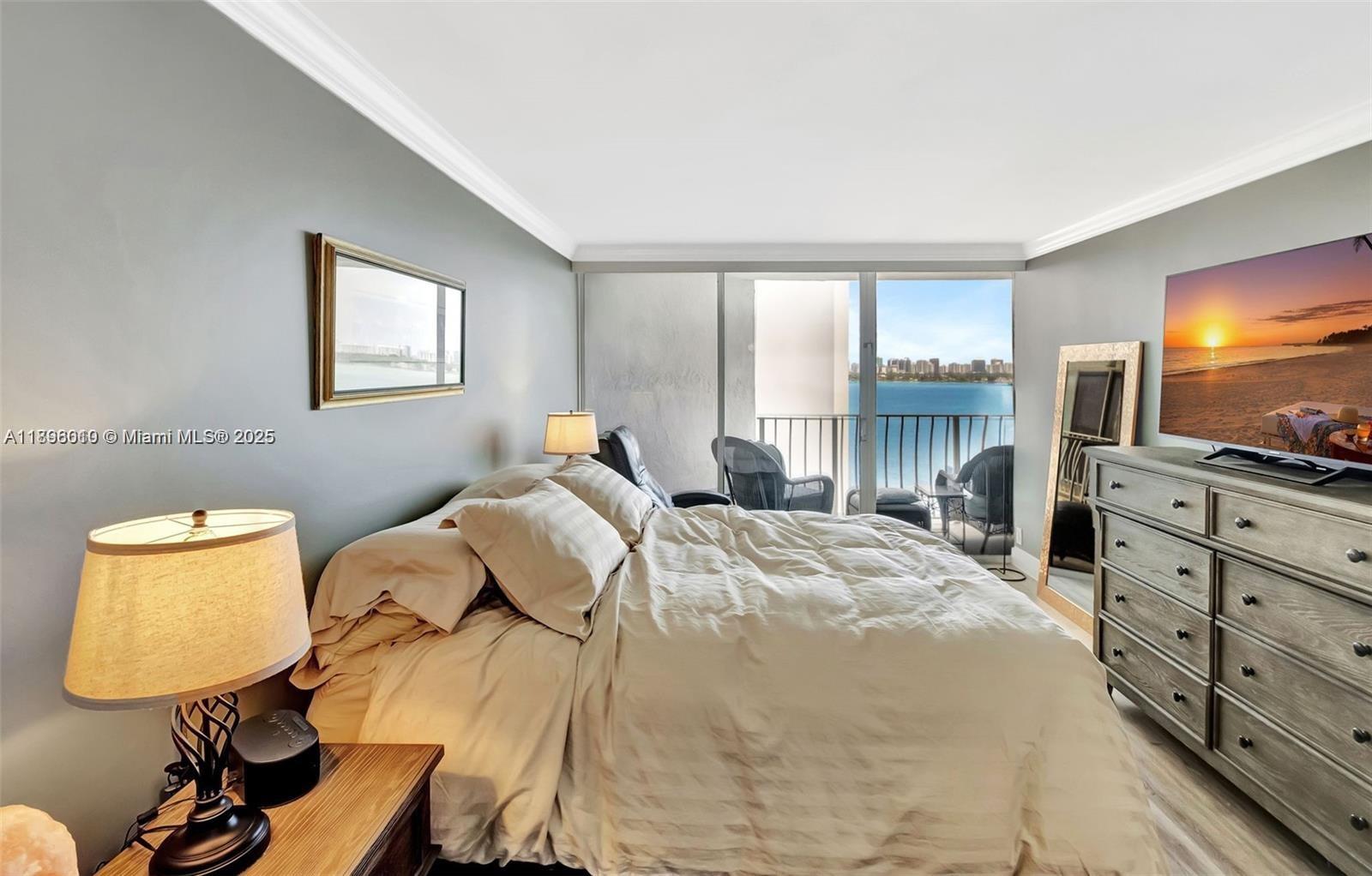 Florida living at its best! Stunning Biscayne Bay views from this beautifully remodeled 2BD/2BA with spacious split floor plan and balcony access from every room. Features wood-grain floors, crown molding, two Jacuzzi tubs, granite kitchen with SS appliances, remote blinds, new A/C & water heater, and front-load W/D. Move-in ready, optional furnished. Full-service bayfront building just 2 miles from the beach with concierge, 24-hr security, Olympic pool, Jacuzzi, sundeck, marina with dock-master, 2 covered parking spaces, and ground-floor restaurants, salon & market.