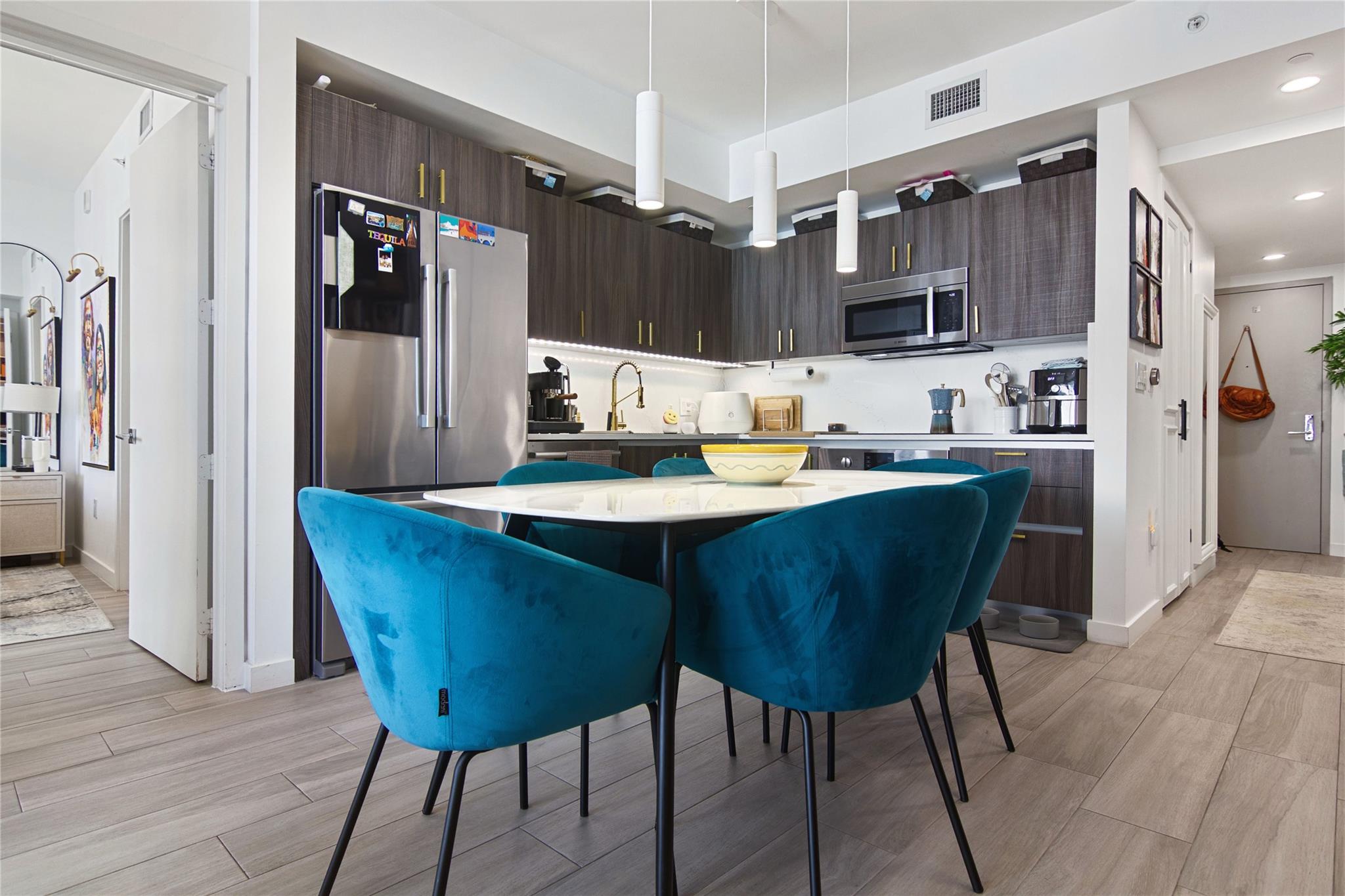 Beautifully decorated 1-bedroom, 1.5-bath residence offering stunning city and bay views. Features include elegant built-ins, Bosch appliances, and a sleek kitchen with quartz countertops and backsplash. The home showcases designer lighting throughout, adding warmth and sophistication to every space. Bathrooms and closets are fully upgraded, providing both style and functionality. Enjoy top-of-the-line amenities in one of the area’s most desirable buildings — a perfect blend of elegance, comfort, and modern living.