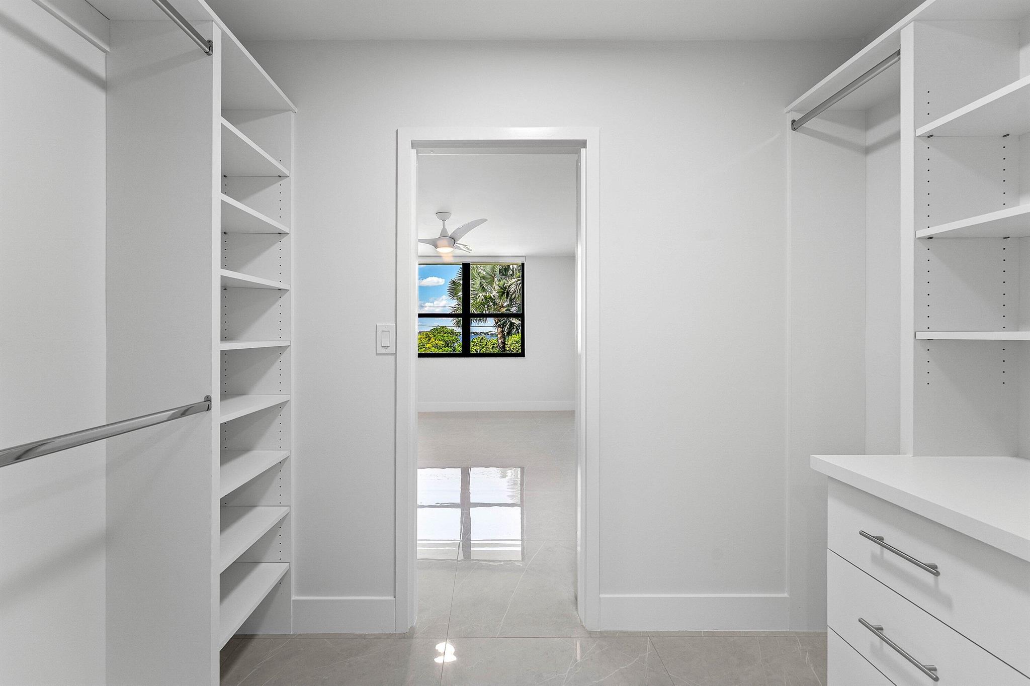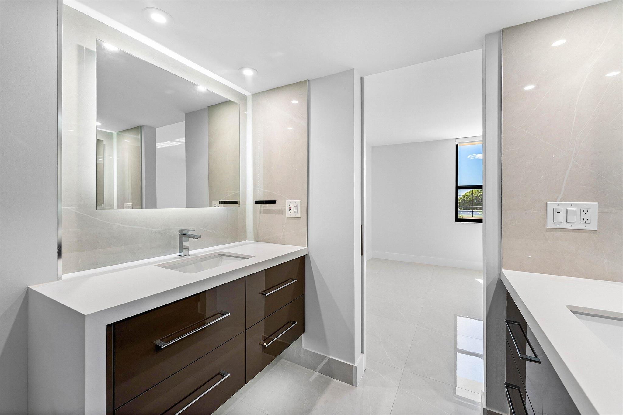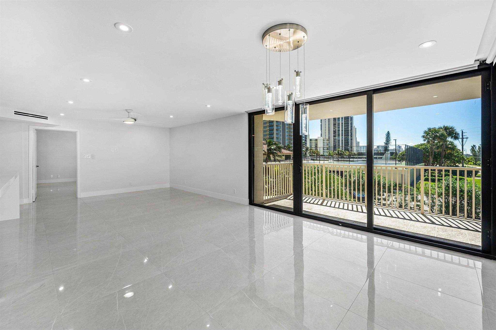 Move right in! COMPLETELY RENOVATED with high end, luxurious finishes. This 2 bed/2 bath split floorplan condo offers 32'' tile floors throughout; quartz countertops, backsplash, and waterfall edges; LG stainless appliances; washer/dryer, soft-close drawers, pull-out shelves in cabinets, rain and handheld shower heads; square tiled shower drains; linear vent covers; custom built-in closets; sensor lights in bathroom and cabinets; LED lights throughout; automatic blinds; impact windows; new A/C, and new water heater. Wrap-around sunrise/sunset balcony. Building concrete restoration complete & new seawall to be completed soon. Assessments Seller paid. Heated pool, fitness room, and gas grills. Close to PBI airport & world-class shopping, dining, golf, and water activities