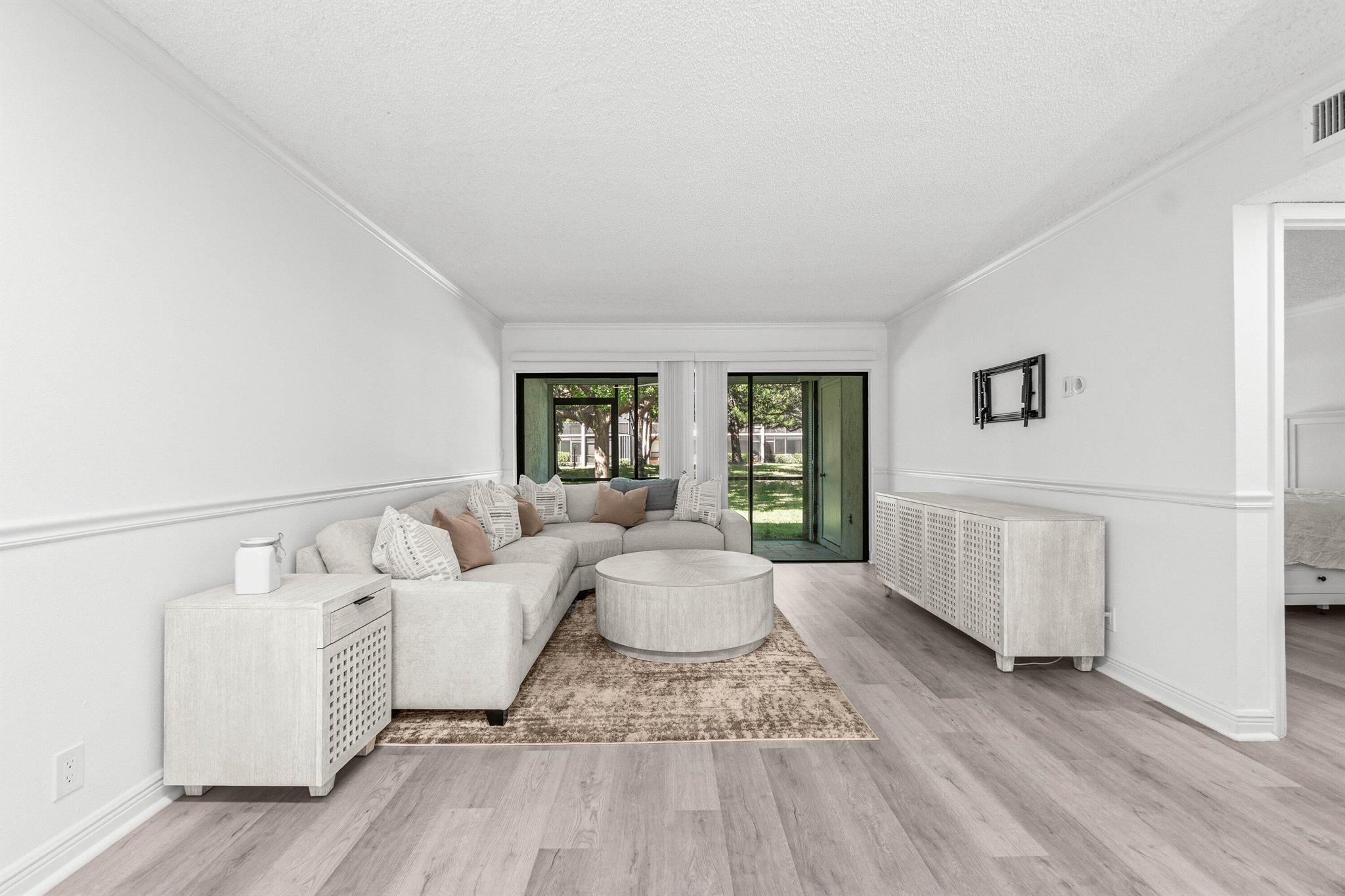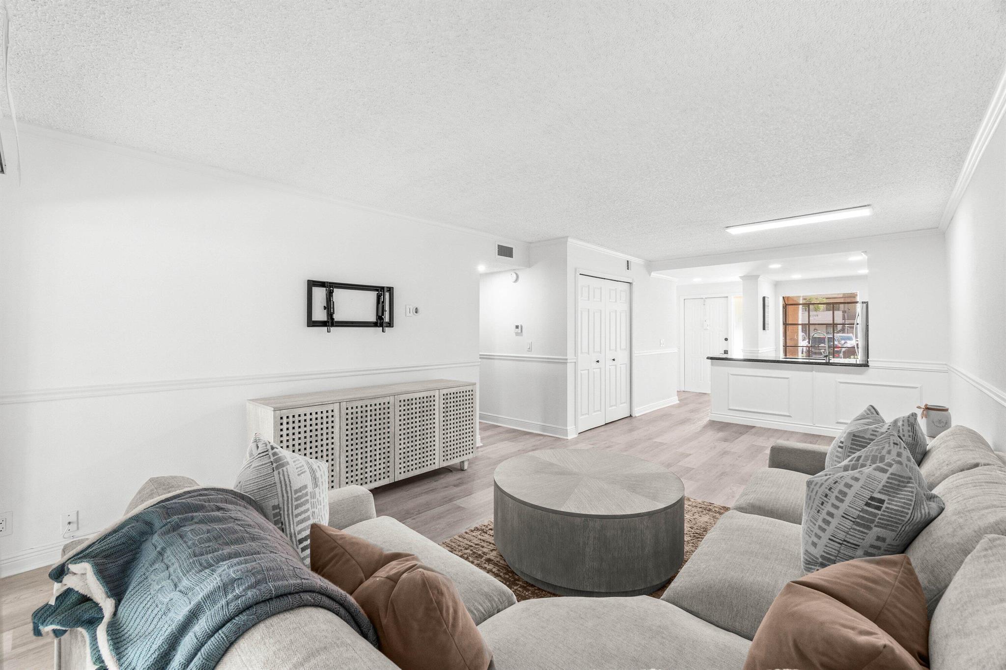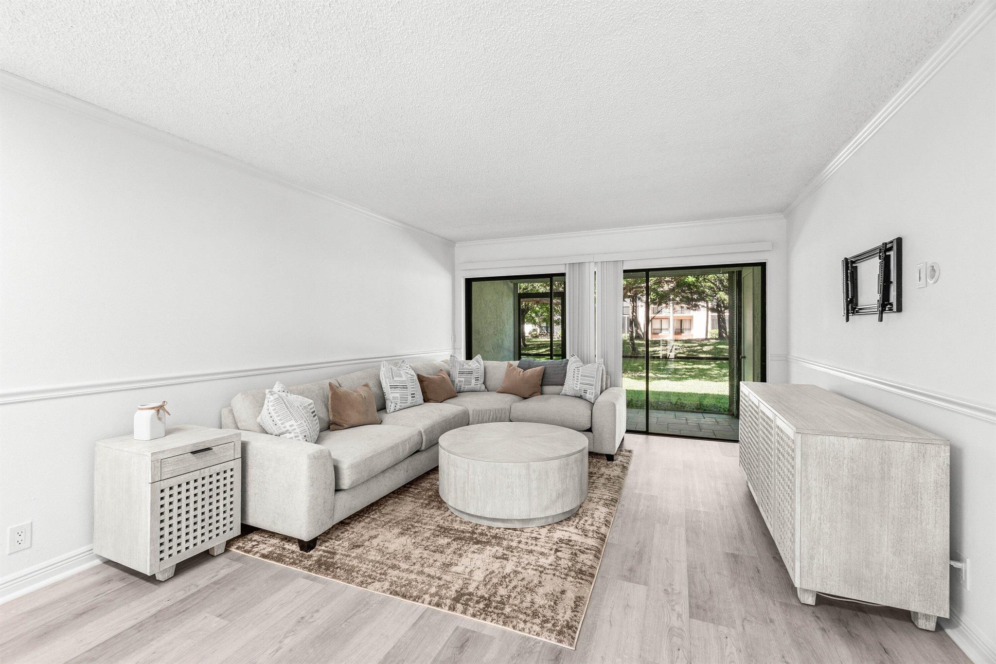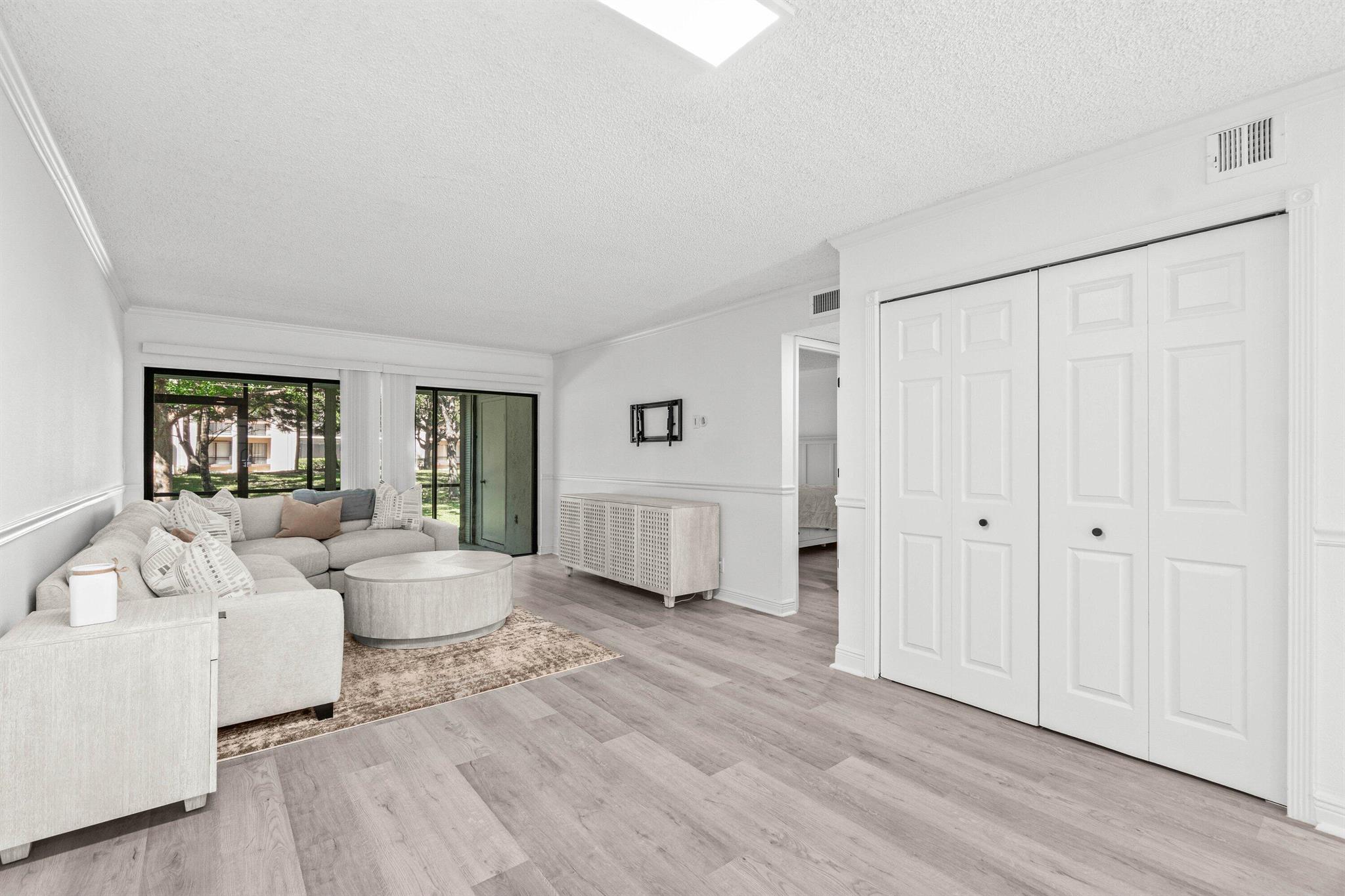 Stunning First-Floor Renovation in Meadowridge Deerfield Beach! Fall in love with this tastefully remodeled and furnished 2 bedroom 2 bath unit. New Roof 2023! Beautifully updated with modern finishes throughout. Open floor plan connects the living & dining areas effortlessly; large windows capture serene garden views. Kitchen features white shaker cabinets, granite countertops, and brand new stainless steel appliances. The split bedroom layout offers privacy, with both bathrooms fully updated to perfection, each showcasing glass shower doors, striking mosaic tile accents, and sleek vanities with quartz countertops. Additional highlights include luxury vinyl tile flooring throughout, built-out closets, and new in-unit laundry area, large patio, AC 2022 and WH 202
