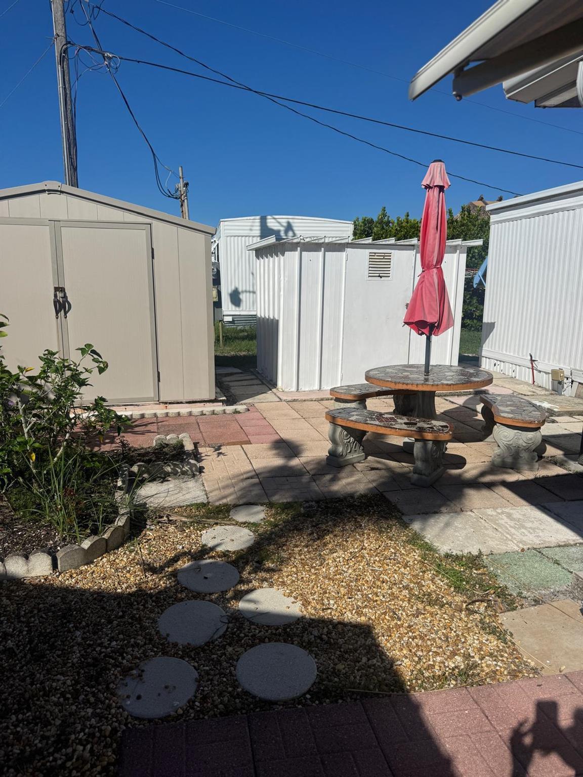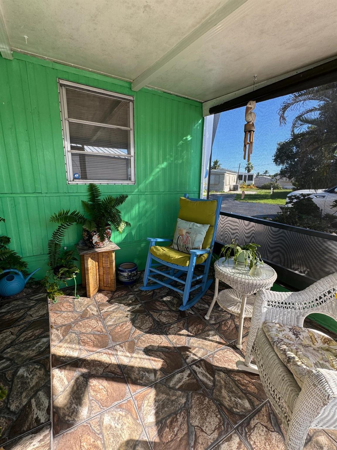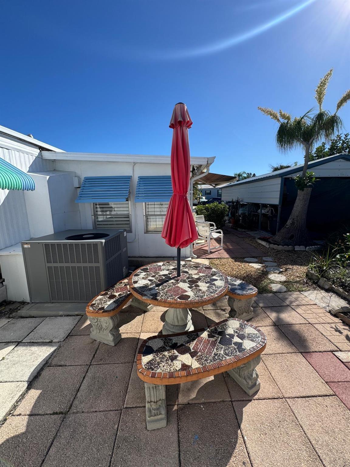 Spacious & well kept expanded singlewide in Woodbridge Mobile Manor Co-Op, 55+ community in Hobe Sound. 2 Bedrm/2 Bath SPLIT PLAN. Aluminum Roof.,, 2016 A/C just serviced w 1 yr warranty still in place. new LG washer 2023, Dryer 2025, New Carport 2014 with decorative floor. This home has so many extras & great curb appeal. LR has window galore & charm - 1 step up to open kitchen & dining area. Bedrooms off to the left & right. So perfect for visiting friends & family. Woodbridge is an active 55+ community w community heated pool, shuffleboard & a host of clubs & activities. The Co-Op monthly fee of $250/mo includes community water/sewer, cable and all the amenities. Minutes to pristine ocean beaches, shopping, restaurants & entertainment. Sorry no pets, rentals or motorcycles.