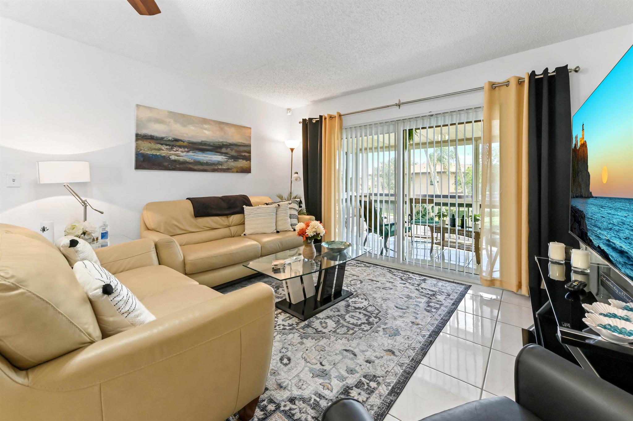 Beautifully maintained 2/2 corner unit in sought-after Palm Greens 55+! Enjoy an abundance of natural light, IMPACT WINDOWS throughout, and tile flooring. The split floor plan offers privacy, while the functional kitchen features tray ceilings and a spacious pantry. Relax on the large screened balcony with tranquil views. Furniture is negotiable (not included in sale). Palm Greens is known for its active lifestyle with tennis, pickleball, and resort-style amenities -- plus a brand-new clubhouse underway! Low HOA of $507/month includes cable, water, building insurance, roof, and common areas.AC September 2025 WH 2019.