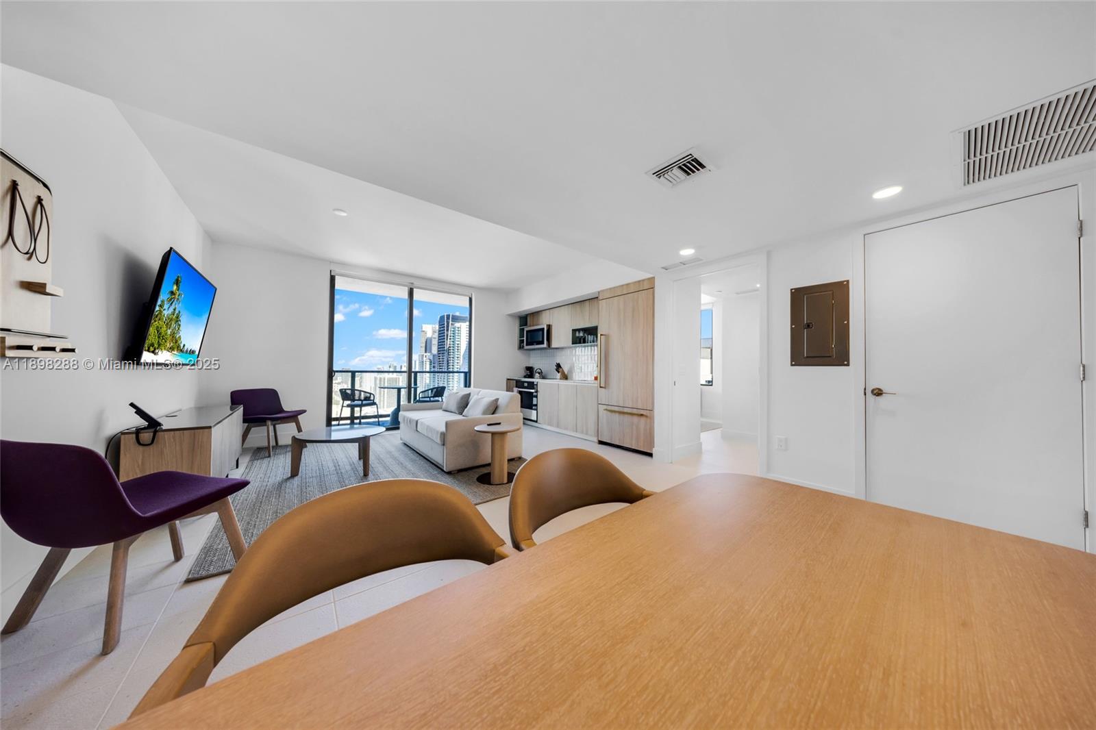 Perched on the 42nd floor, this corner residence captures sweeping views of Biscayne Bay, the Miami skyline, and Miami Worldcenter. Enjoy sunrise views from the king suite, two private balconies, and a spacious living area with a sofa bed. A fully equipped kitchen, in-unit laundry, and three Smart TVs add comfort. At Gale Miami, indulge in 55,000 sq. ft. of resort amenities—rooftop pool and bar, spa with hammam, sauna, and fitness center. With flexible daily rentals and a prime location steps from Kaseya Center, Brickell, and Brightline, this residence blends lifestyle and investment.