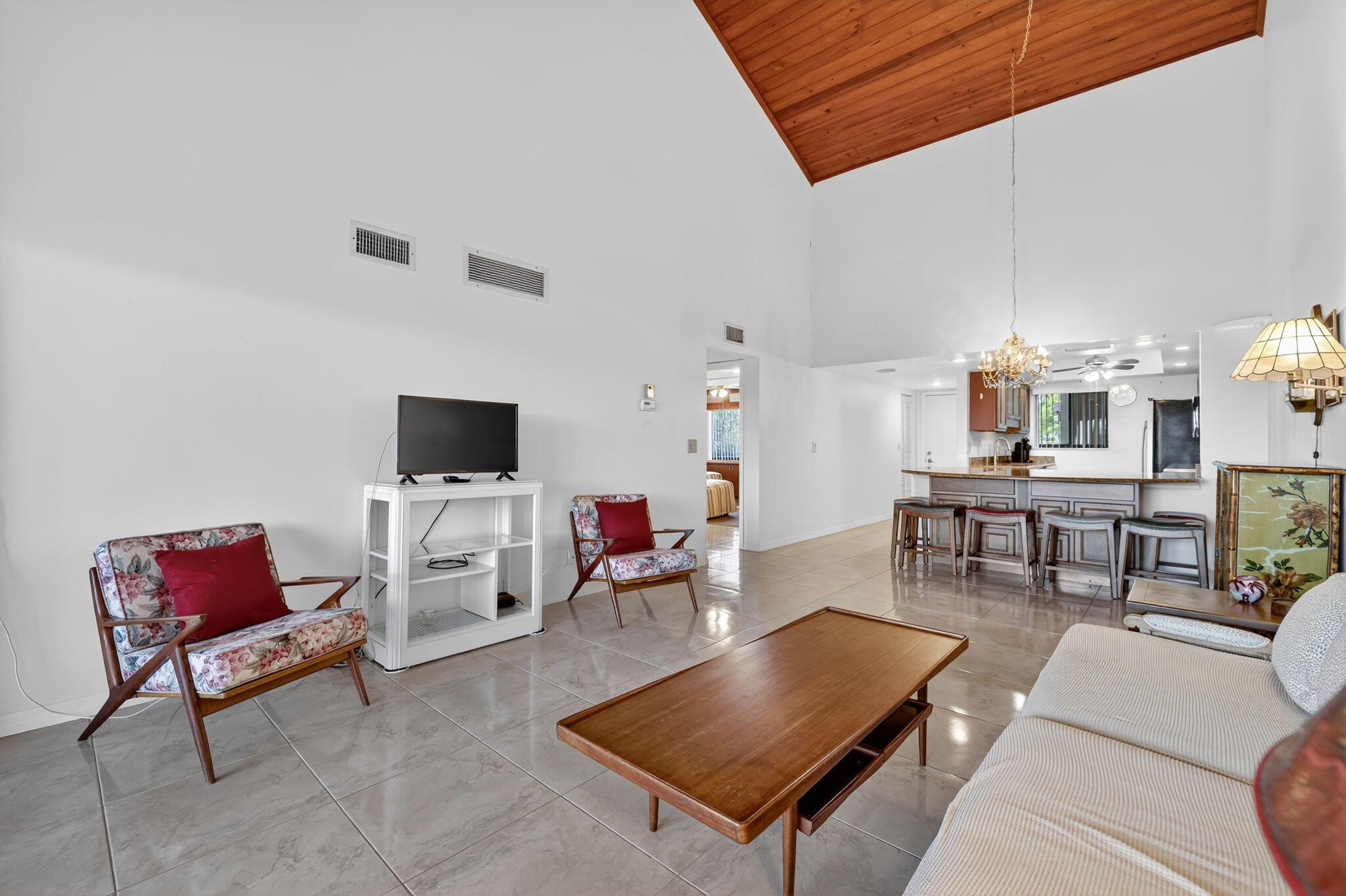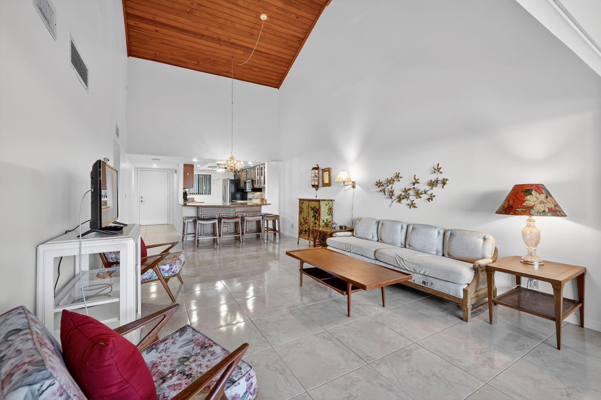 Beautiful top floor 2 bedroom 2 bath end unit at ''Beachtree II.'' Granite kitchen countertops, vaulted ceiling, extended living area & spacious rooms. Quiet & private 4th floor end unit with exterior storage closet! The building has an elevator! Only steps to the Bermuda pool & pickleball & near all Ocean Village amenities. Can be rented bi-weekly if owner so desires! Enjoy the best of Florida living at this award winning oceanfront community offering 24 hr gated entry, 9 hole par 3 golf, tennis, pickleball, bocce ball, 4 heated pools, new clubhouse & fitness center, lush tropical landscaping, shuffleboard, library, oceanfront restaurant & tiki bar, 3500 feet of oceanfront. Located on South Hutchinson Island with 21 miles of uncrowded & unspoiled beaches. Measurements approximate.
