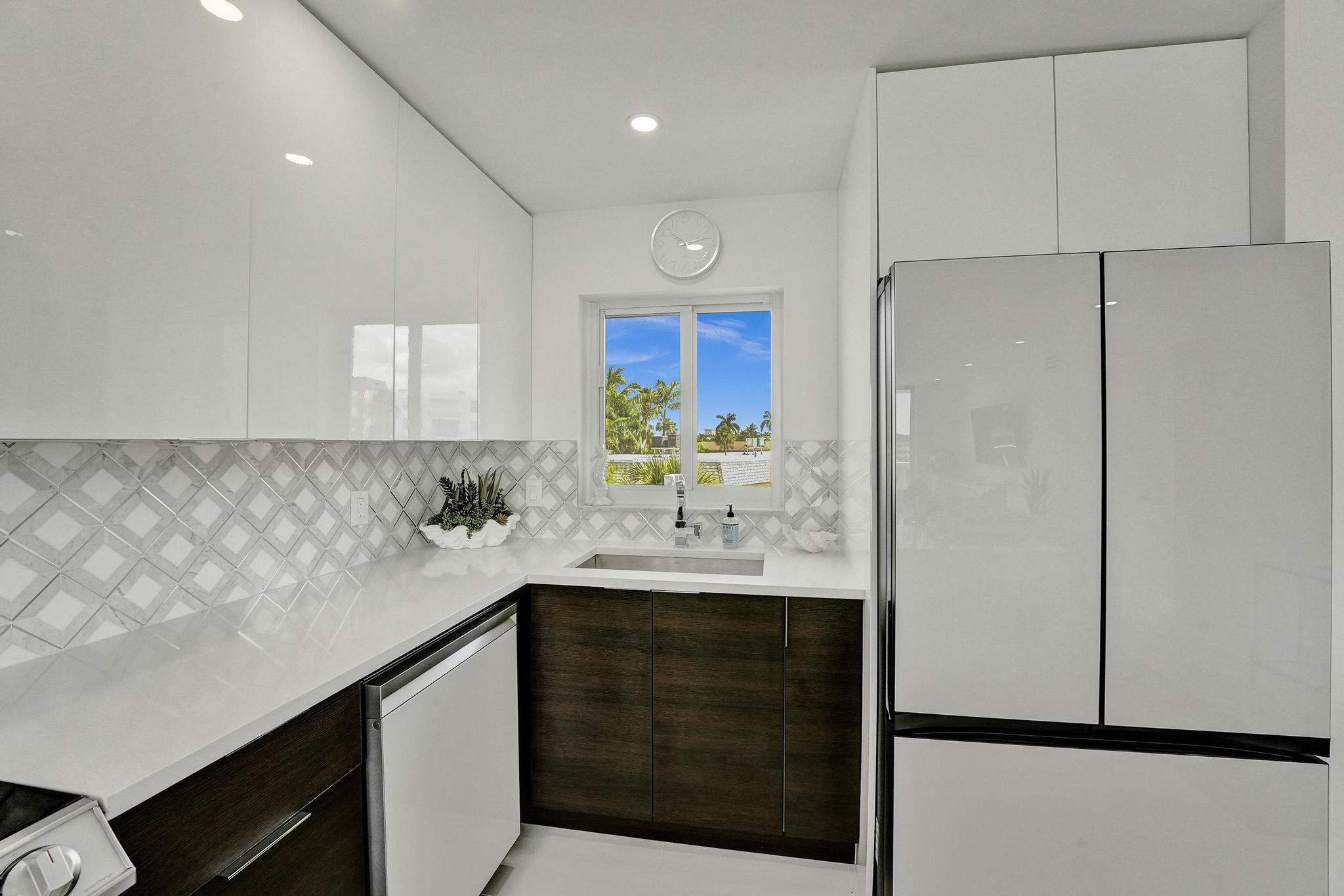 STUNNING CONDO with Direct Waterview's of the intracoastal from your living room and bedroom. Milestone inspection completed. Fully renovated unit bright and white with natural light! The most beautiful unit on the market you will find! Priced Ready to sell! New impact glass slider and windows through out all new Samsung bespoke white acrylic appliances adding a fresh look to this amazing condo! Entertain from the large island kitchen counter with wine cooler. brand new AC Unit and Water heater in the unit for stress free transaction. Both bathrooms are just gorgeous with wave tiles and new glass shower enclosures for the guest room and white marble look for the master, floating vanities for a spacious feel!