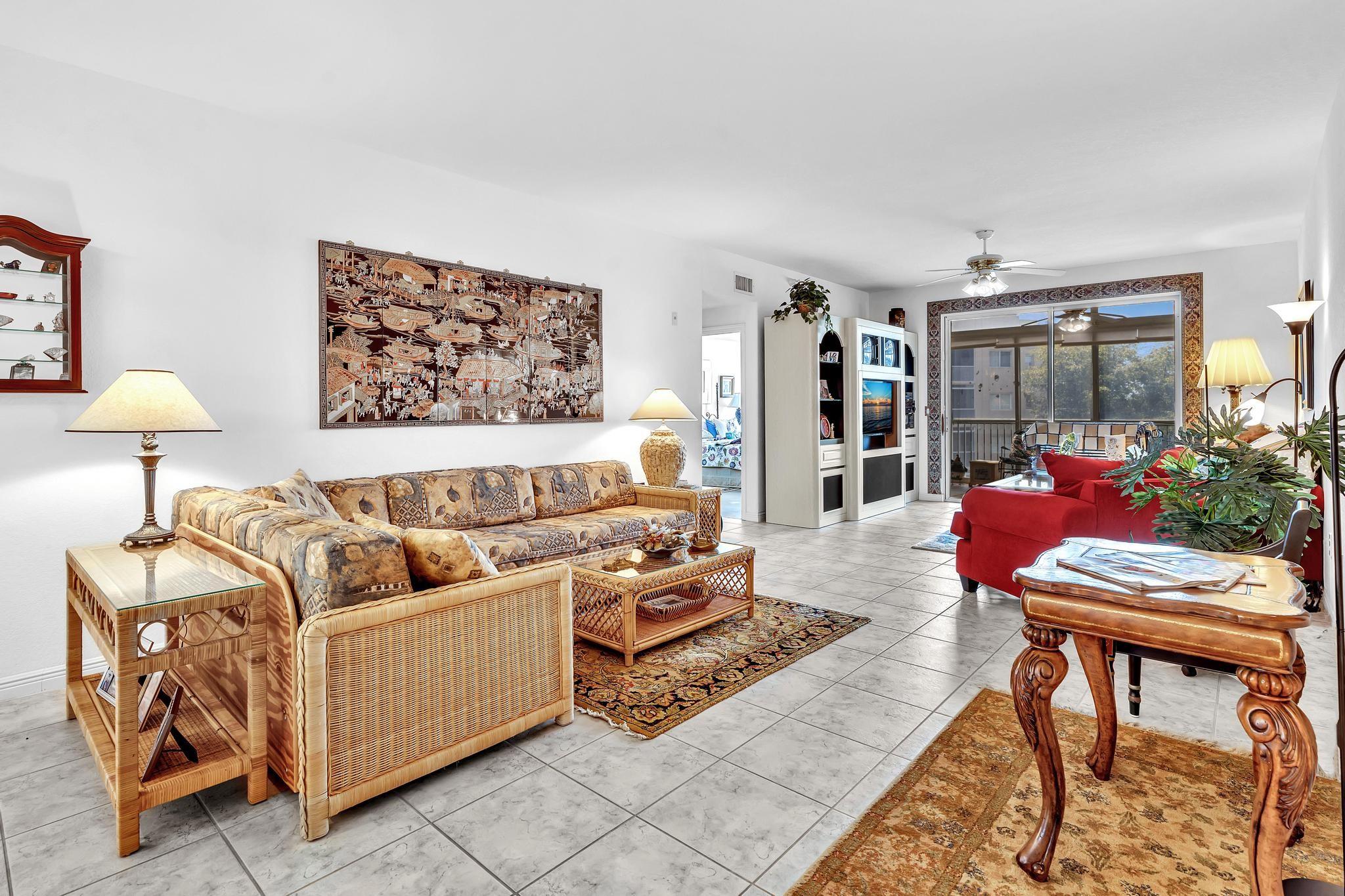 *Stunning Water View Corner Unit* 1986 sq. ft * This lovely home creates a fantastic and welcoming atmosphere with two bedrooms & two baths. The 2nd bedroom includes a Murphy bed for added convenience. There is a family room/den/formal dining room, which can also be used as a third bedroom. The kitchen features white cabinets & a custom island. Extra freezer. Tile flooring throughout the living area enhances the gorgeous open layout. The master bedroom boasts a spacious walk-in closet & a large soaking tub. Include a private laundry room & storage. Enjoy your front screened patio that greets you before getting to your front door & 2nd large balcony overlooking the water view, which is excellent for relaxing. Southampton is the only community that has a gym on the site. Guard at the gate.