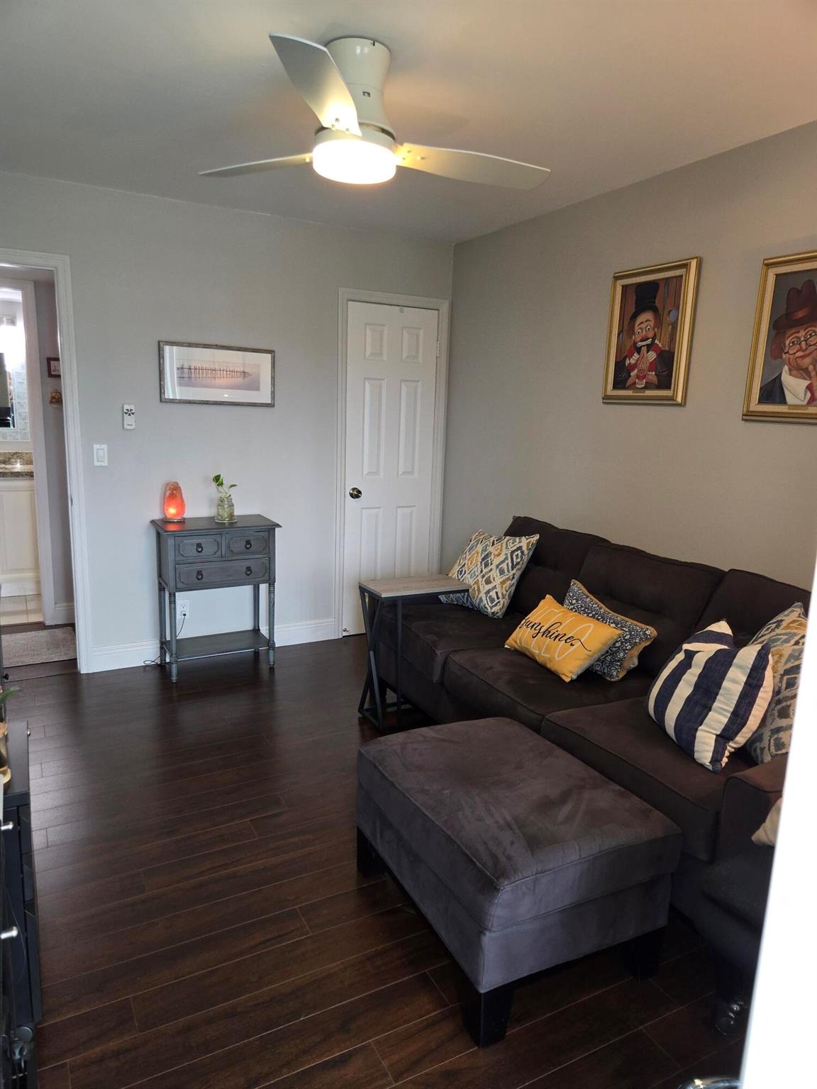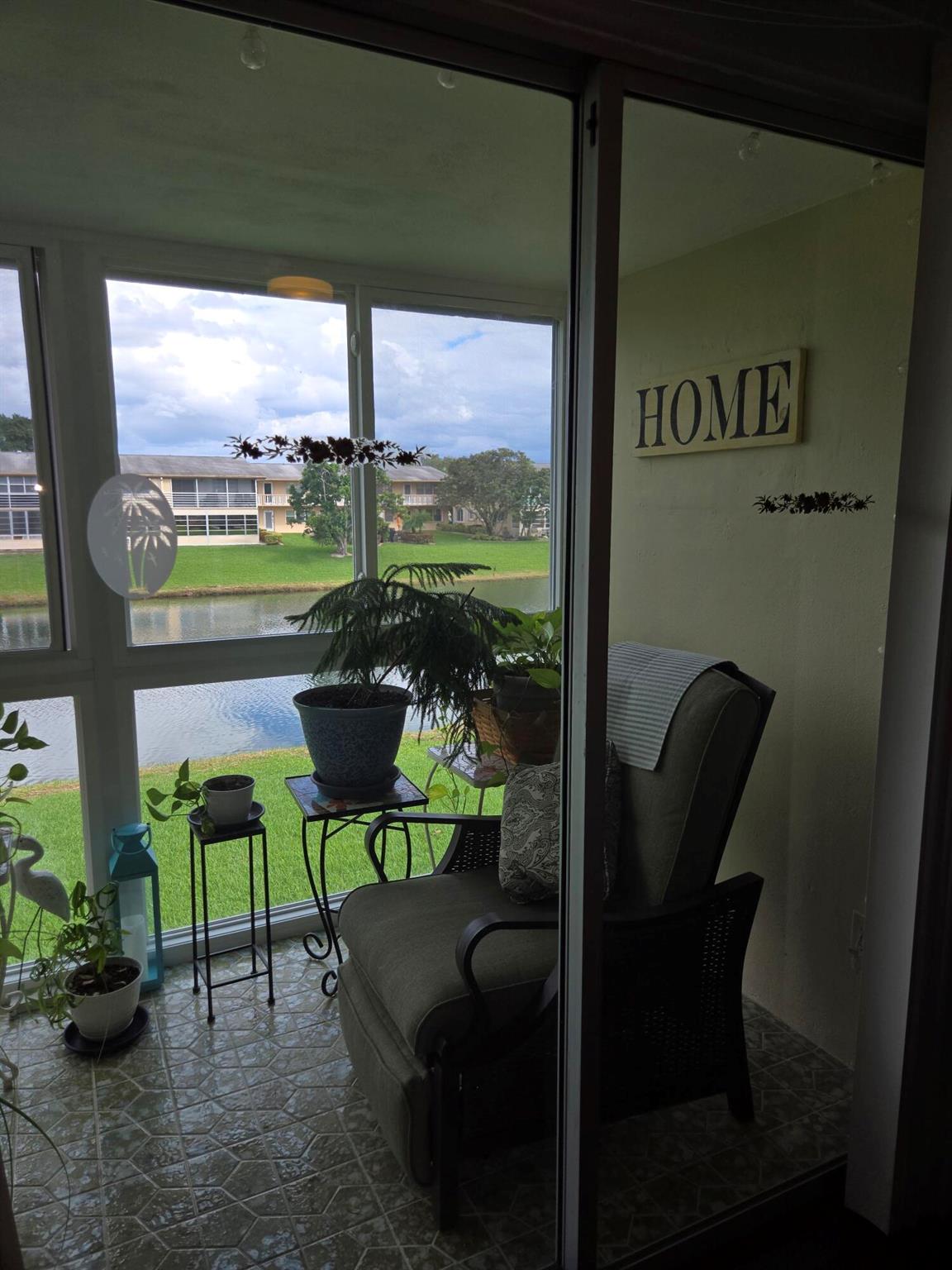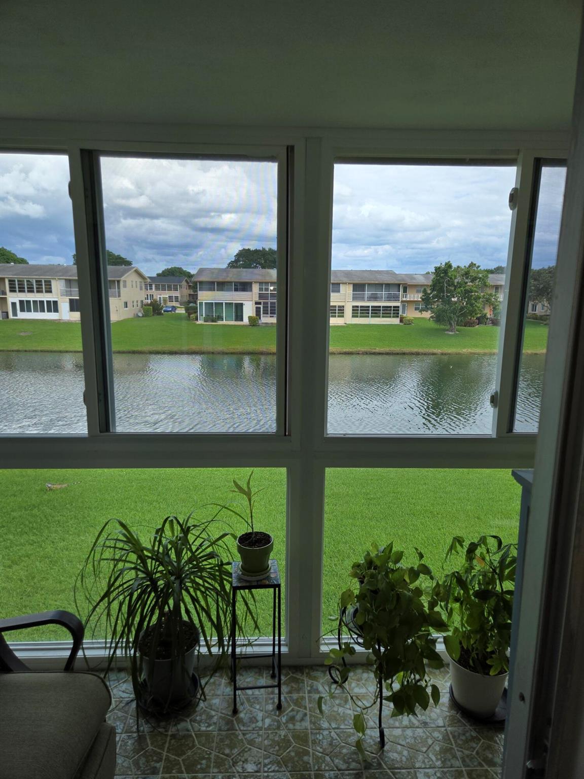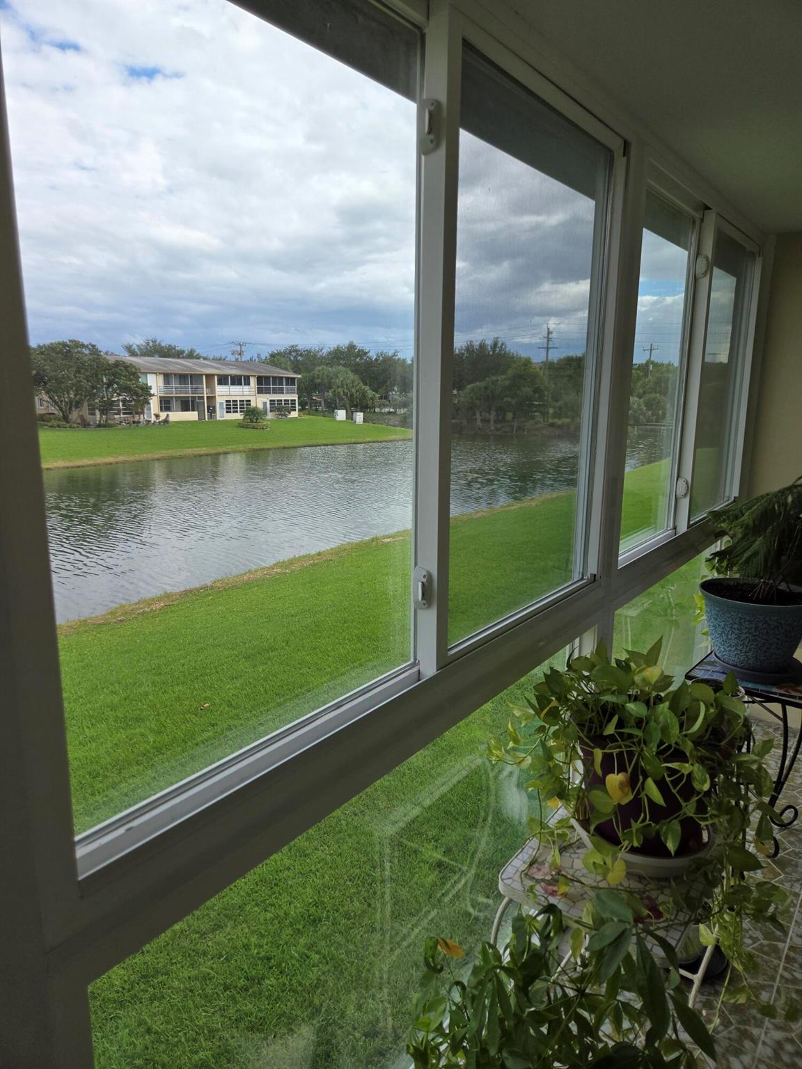This is a beautiful condo that you will be pleased to call your home. It is conveniently located near the Clubhouse and the Haverhill gate. The updated kitchen features granite counter tops, upgraded stainless steel appliances and cabinets with under counter lighting. There is upgraded lighting and ceiling fans throughout. Both bathrooms have been tastefully upgraded. There is instant hot water system. Two sliding glass doors lead out to the large lanai which features a gorgeous water view, floor to ceiling hurricane glass windows and a new storage unit. This condo community has completed the new building code structural requirements. The improvement assessment has been paid in full by the current owner. This home has been very well kept and is ready for you!,