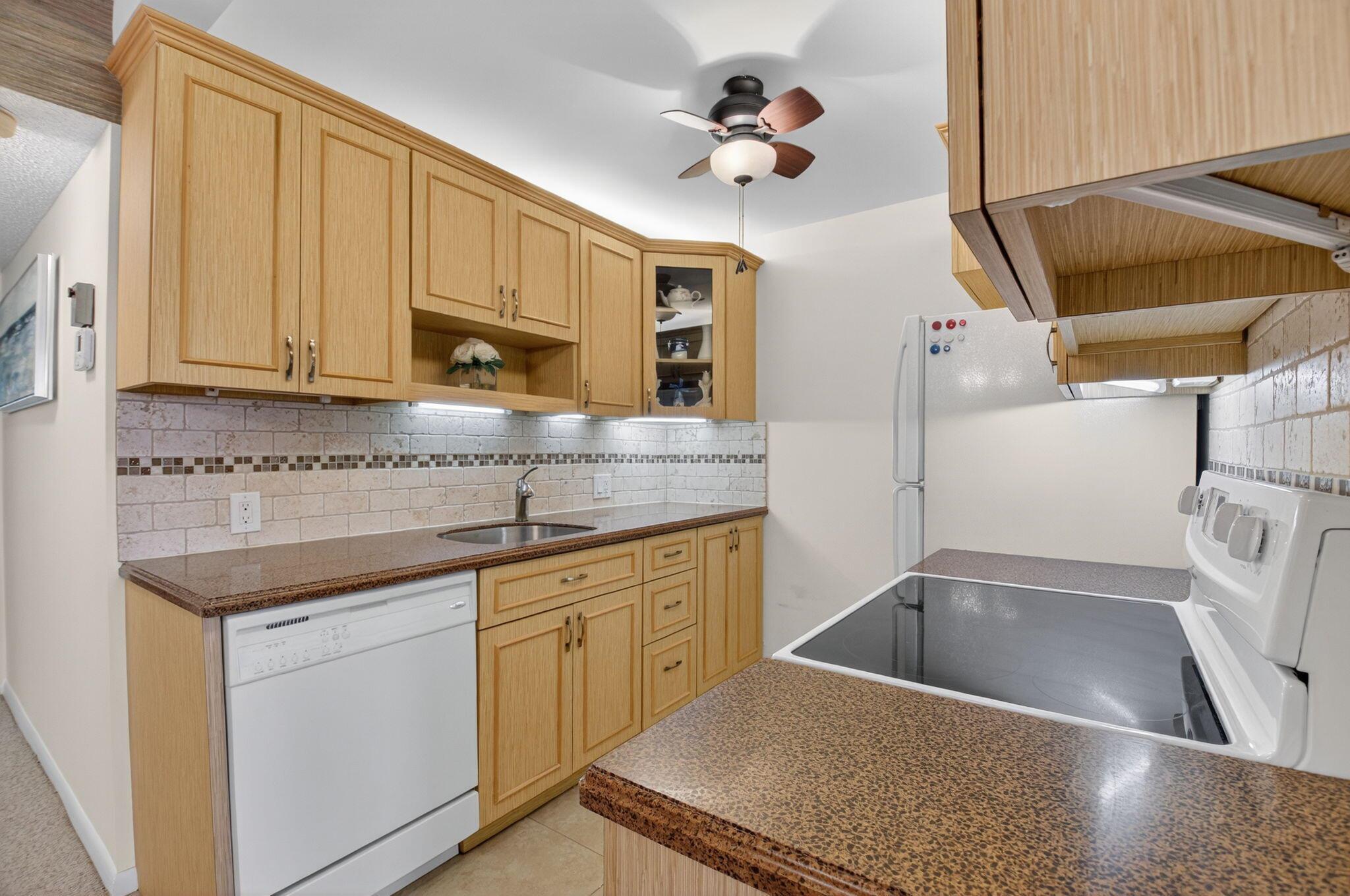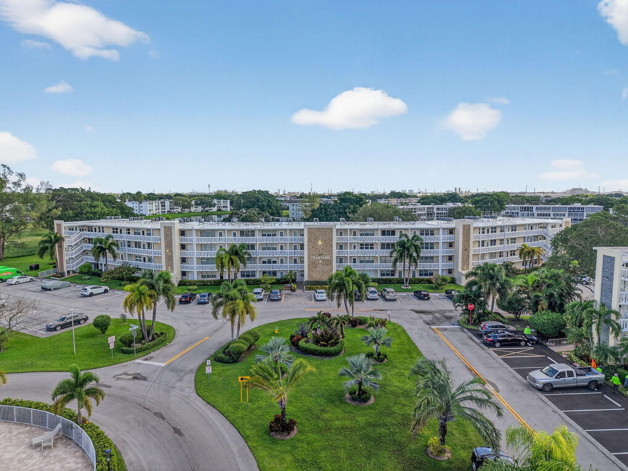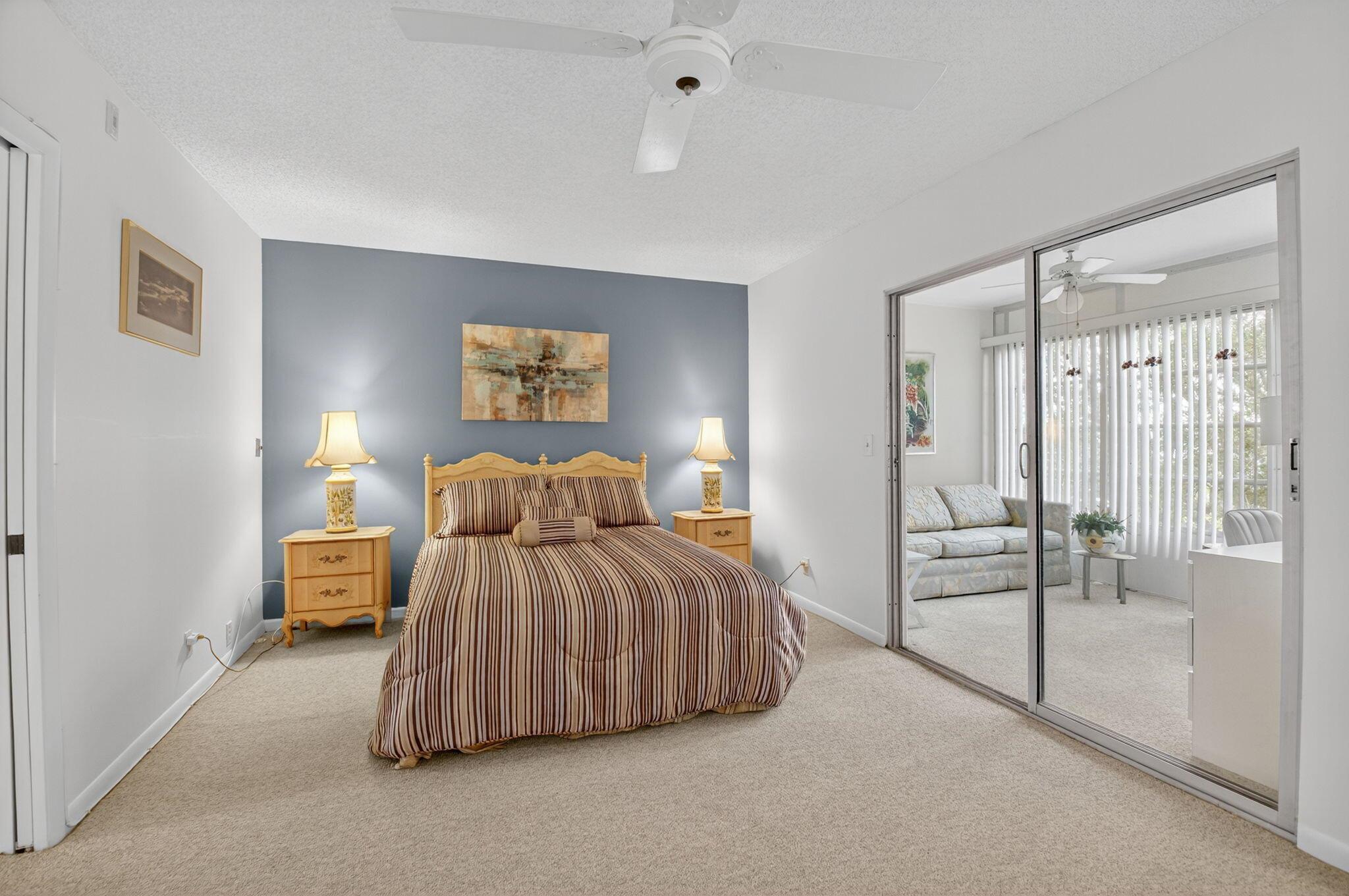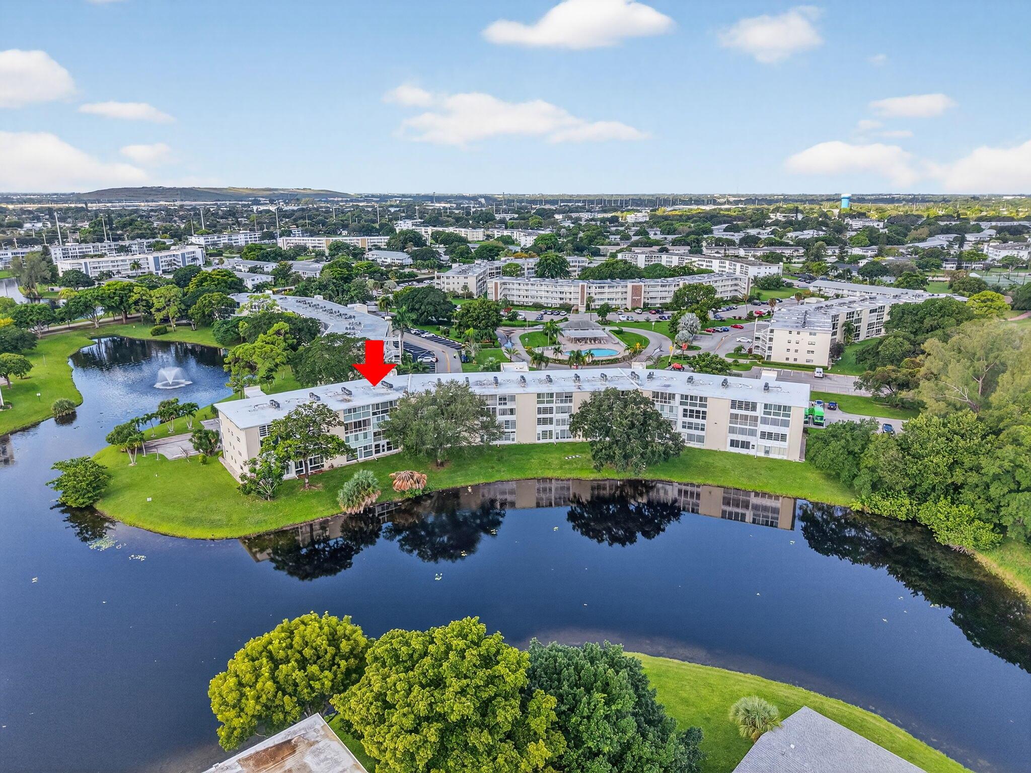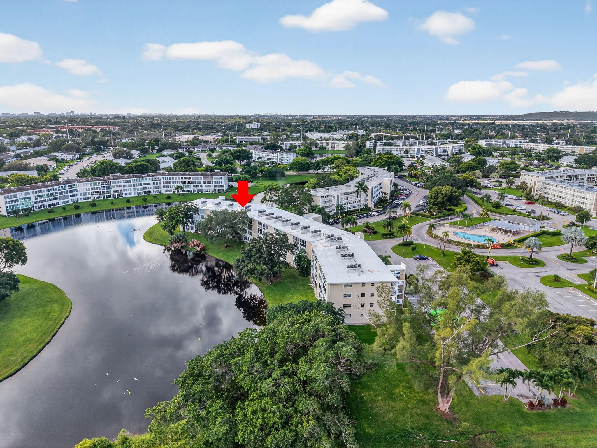 Move-in ready, bright 4th-floor condo in the desirable Grantham B building of Century Village East, conveniently close to the elevator, laundry facility, and locker storage. Features a Florida room with large windows offering a stunning lake view -- perfect as a sitting area, reading nook, or home office with treetop views. Kitchen has been thoughtfully updated for style and functionality. An assigned parking spot near the elevator is included. Enjoy the satellite pool right in front of the building and take advantage of all the resort-style amenities this vibrant 55+ community offers, including pools, tennis, pickleball, theater, and more! Call today for a private showing!