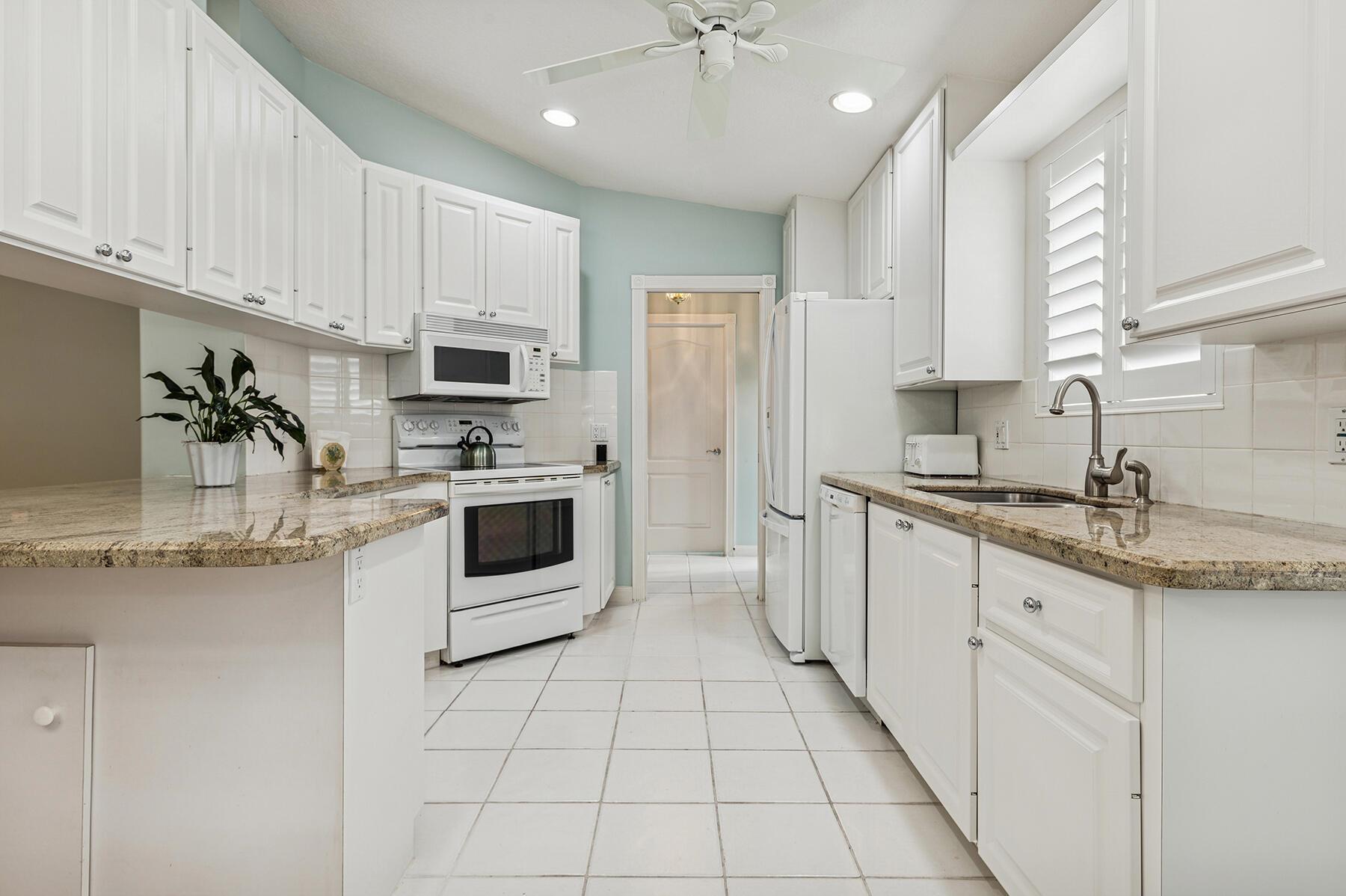 A Tropically Landscaped Lush, Garden Lot is One Attributes that makes this Extended Capri, A Fantastic Opportunity, In RiverWalk, A 24 Hour Manned Gated Community in One of the Best Locations in Palm Beach County, 15-20 minutes to Everything including Palm Beach, the Ocean & Airport! This is Only the Beginning! The Wide & Inviting Entry Courtyard leads to the Foyer with a White Ceramic Tile Floor, that Opens to the Carpeted Great Room with a Full Wall Mirrored Entertainment Center! The Ceramic Tile Kitchen, the Hub for Everyday Living & Casual Entertaining has Gorgeous Bullnose Granite CounterTops & Ceramic Tile Backsplashes, All the Appliances including a Kenmore French Door Refrigerator, Ceramic Top Range, Dishwasher & Microwave, an Undercounter Mounted Double Bowl Stainless Steel Sink