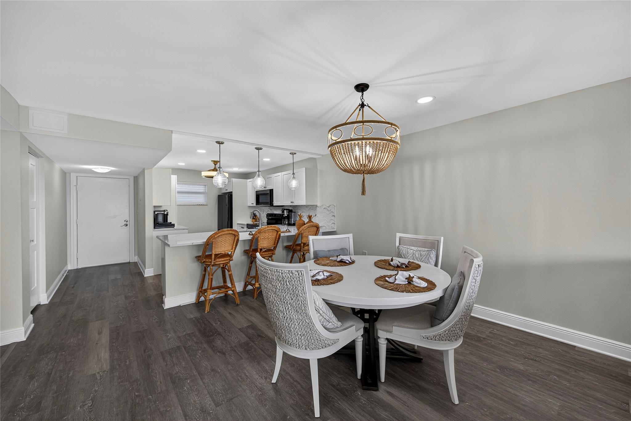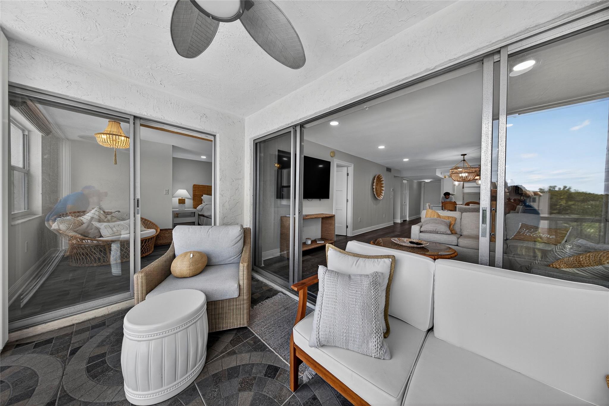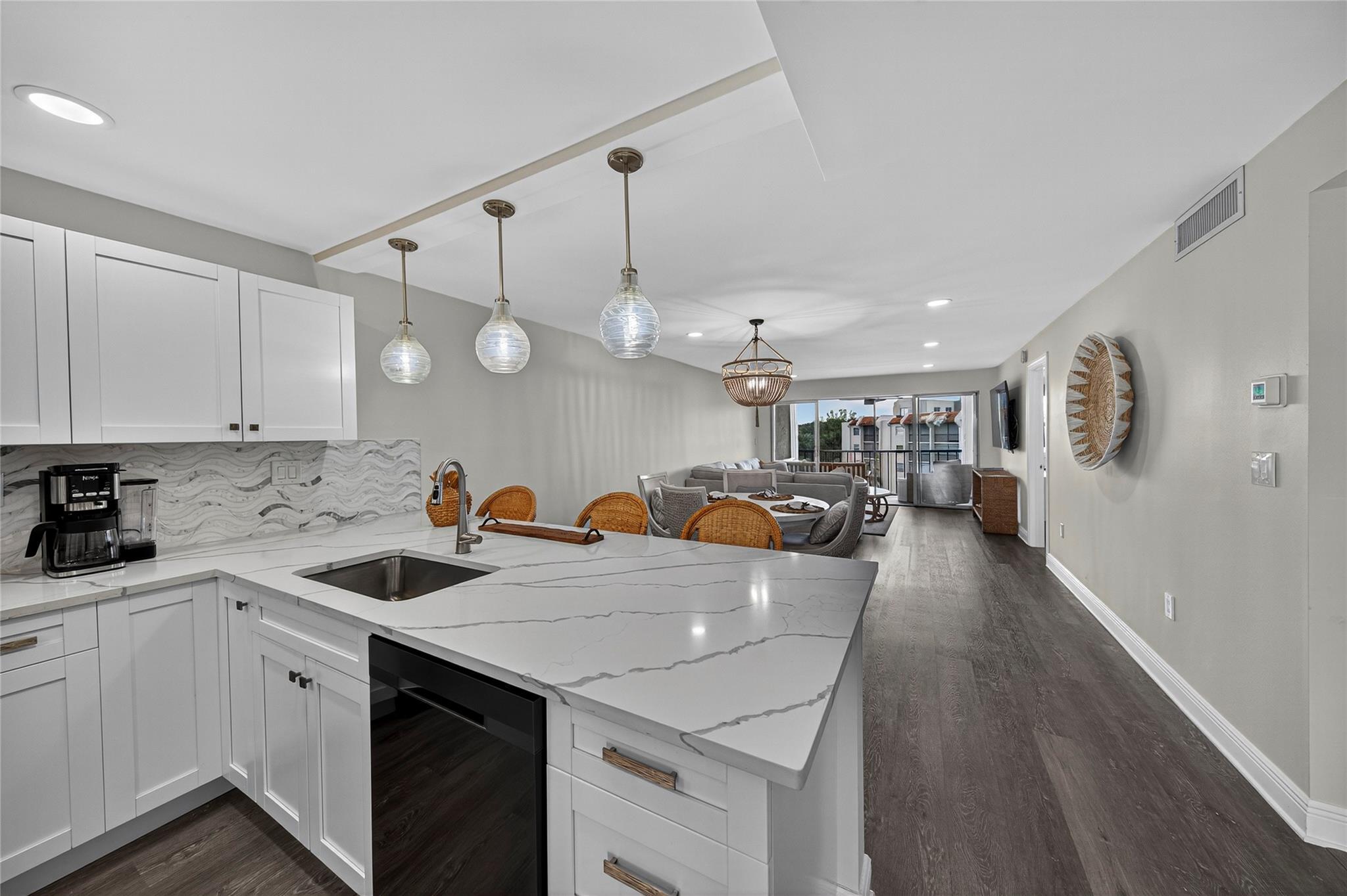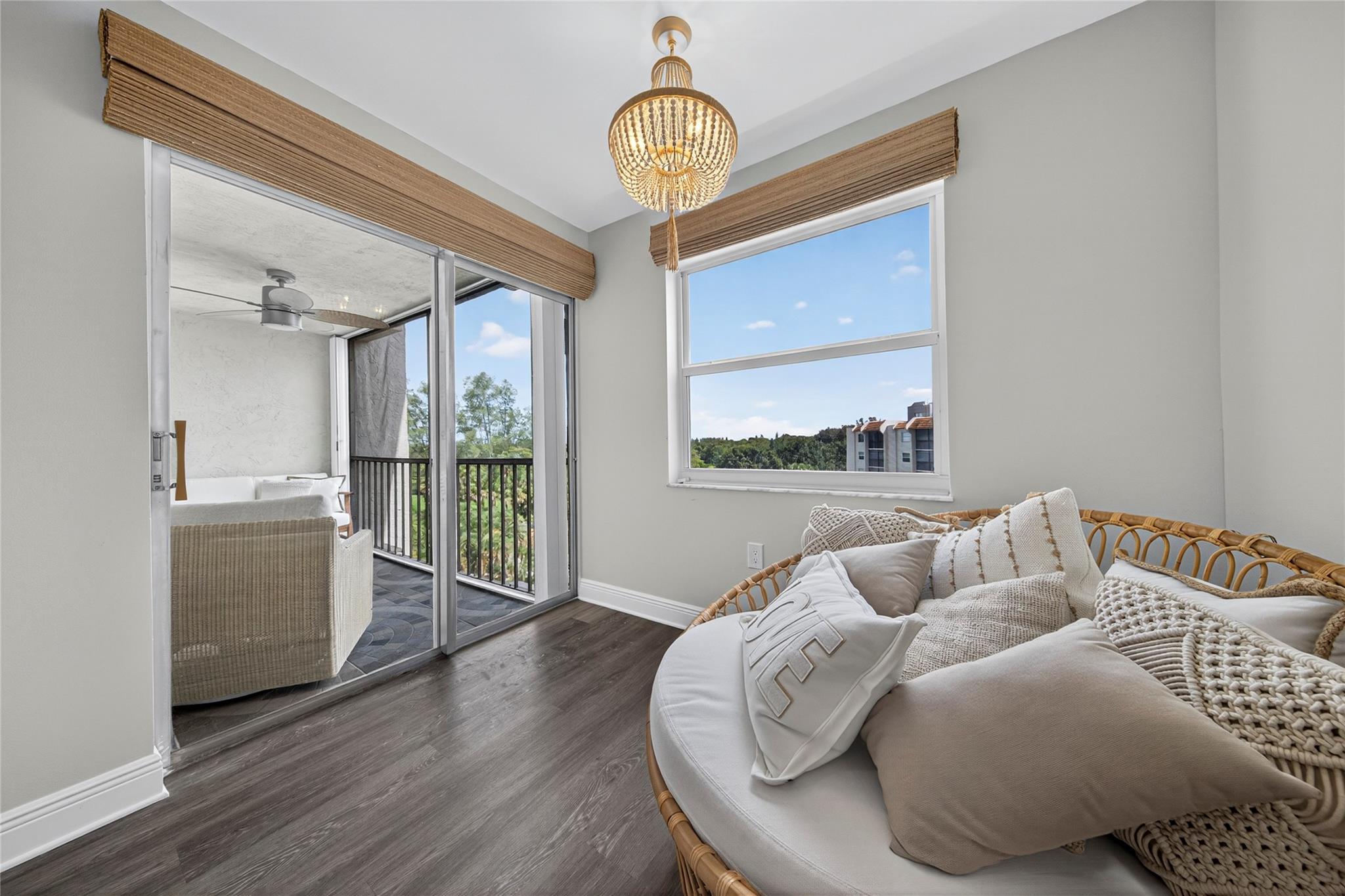 Stunning Fully Renovated 2BR/2BA Condo with Resort-Style Amenities in a 55+ community! Beautifully updated, light-filled condo featuring an amazing pool view from the screened terrace with accordion shutters. This modern unit offers impact windows, water-resistant laminate flooring, and an in-unit washer and dryer. The open kitchen showcases wood cabinetry, quartz countertops, a tile backsplash, and black stainless-steel appliances, opening to a spacious dining area perfect for entertaining. The primary suite includes dual walk-in closets and a sitting area, and both bathrooms have been completely renovated with elegant finishes. Maintenance includes cable, HBO, and internet. Just move right in!