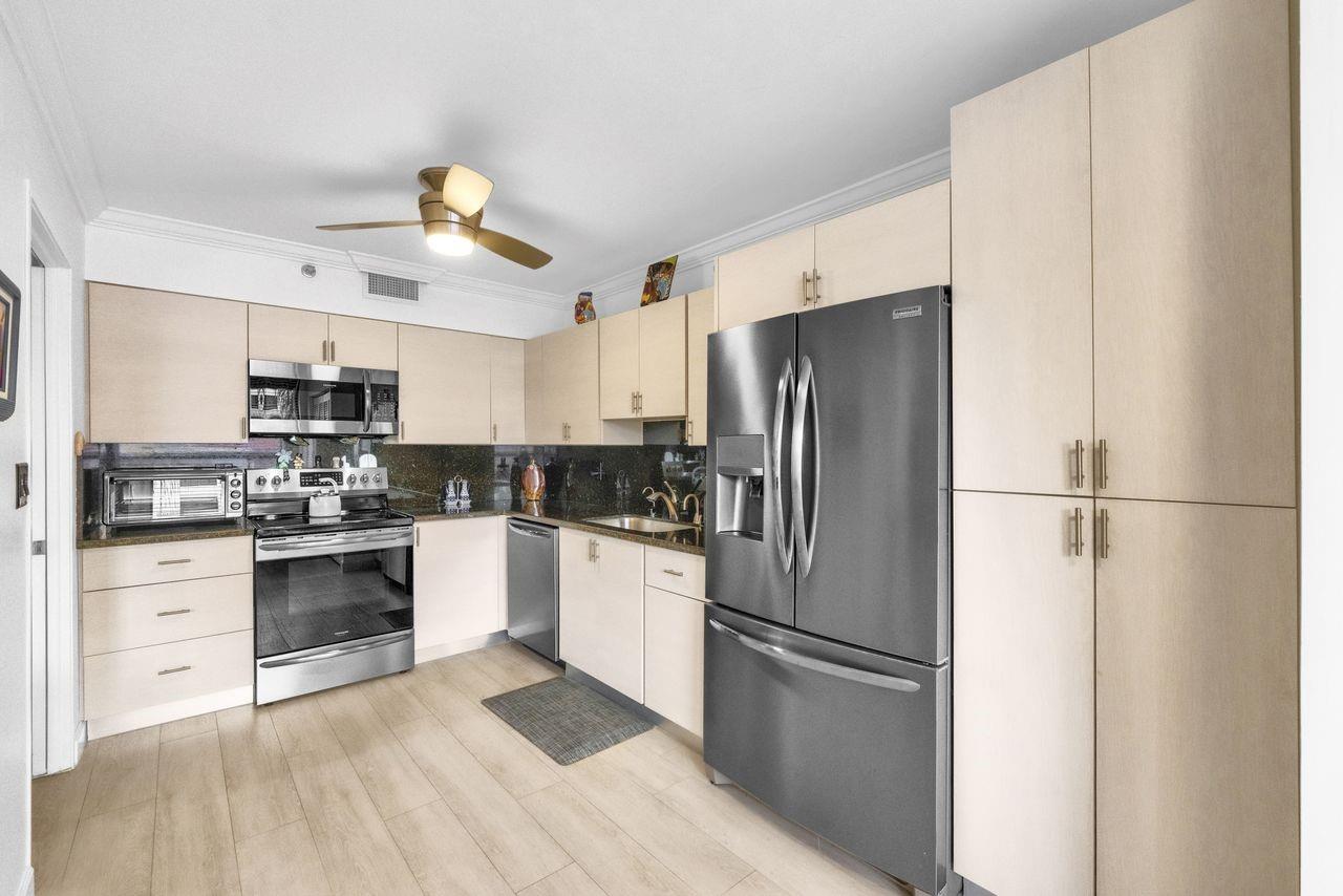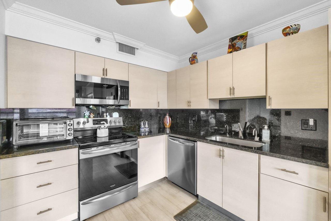 Located in prestigious Promenade at Boca Pointe. Remodeled kitchen, baths and flooring make this home easy to move into. Oversized Master suite has enormous closet, dressing area with additional storage space, and master bath with large separate tub and shower. A triple window allows for beautiful view of pond, golf course and swaying palm trees. The guest suite has its own private bath and an additional powder room is located conveniently in the hallway. The kitchen is redone with upgraded appliances, lovely counters and a pantry plus an entertaining station including extra storage. Owner has a charming music room which can be a den, office or "whatever" room. Many amenities including community pool, clubhouse jogging trails make this a great place to live and play.