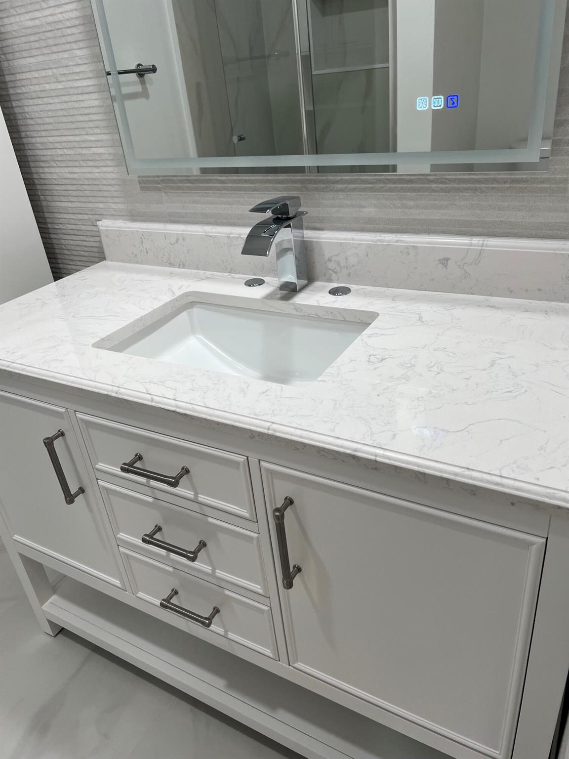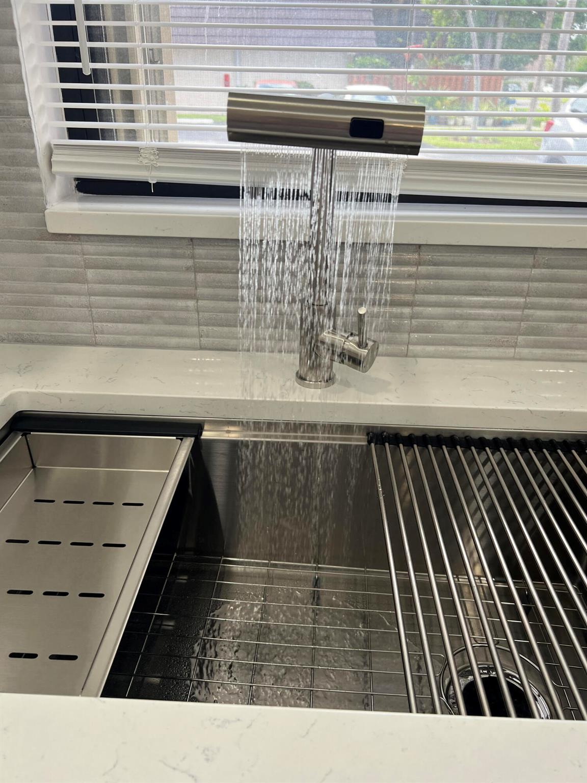 Incredible completed updated unit. New flooring, updated kitchen with brand new cabinets and appliances, quartz counter tops, lovely back splash, new washer and dryer. This unit has so many extra features like the kitchen faucet having a waterfall option, the washer and dryer tower have a control panel in the center for added convenience and the bathroom mirrors have color changing lights, and are anti fog and have bluetooth connectivity for answering phone calls and enjoying music. Enjoy the light filled living spaces with new cabinetry, light fixtures and fans. The half bath downstairs has an elegant vanity and fixtures. Upstairs, both bathrooms have been completed updated with new vanities, fixtures, flooring and a lovely shower space in the master bathroom. No carpet. AC is 2021...