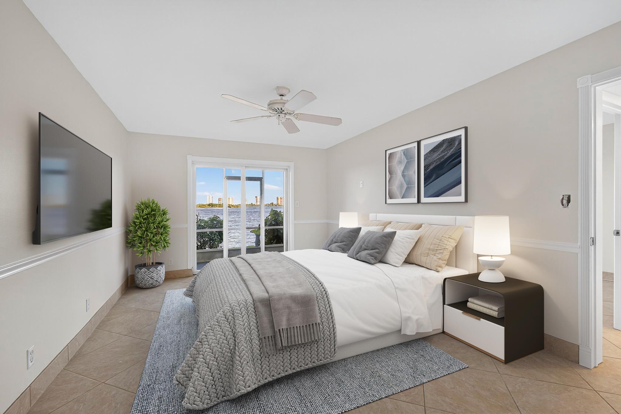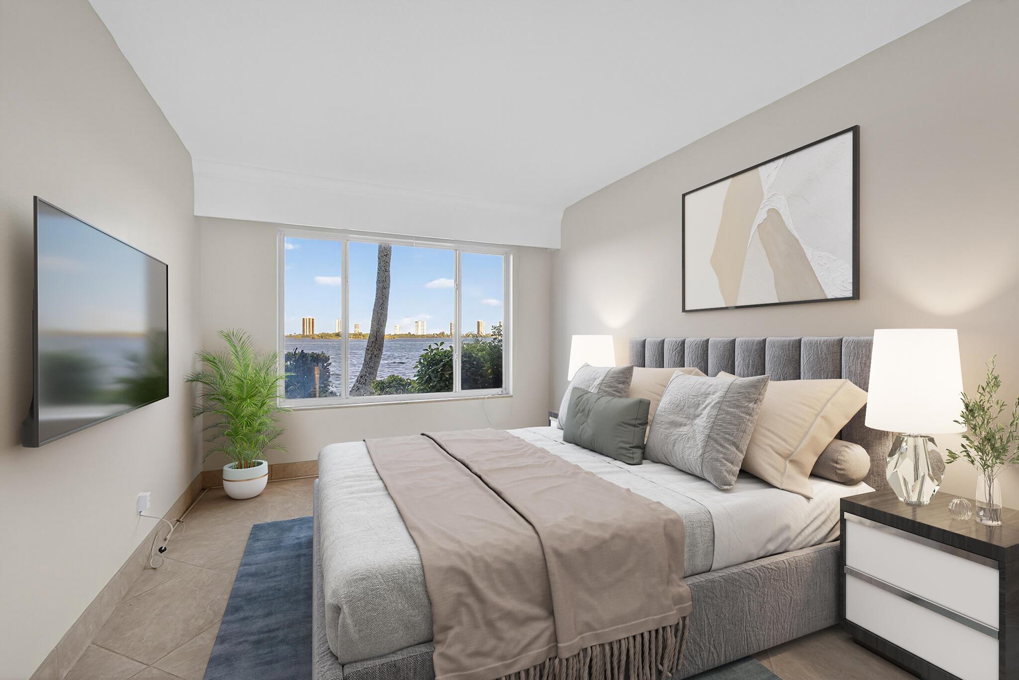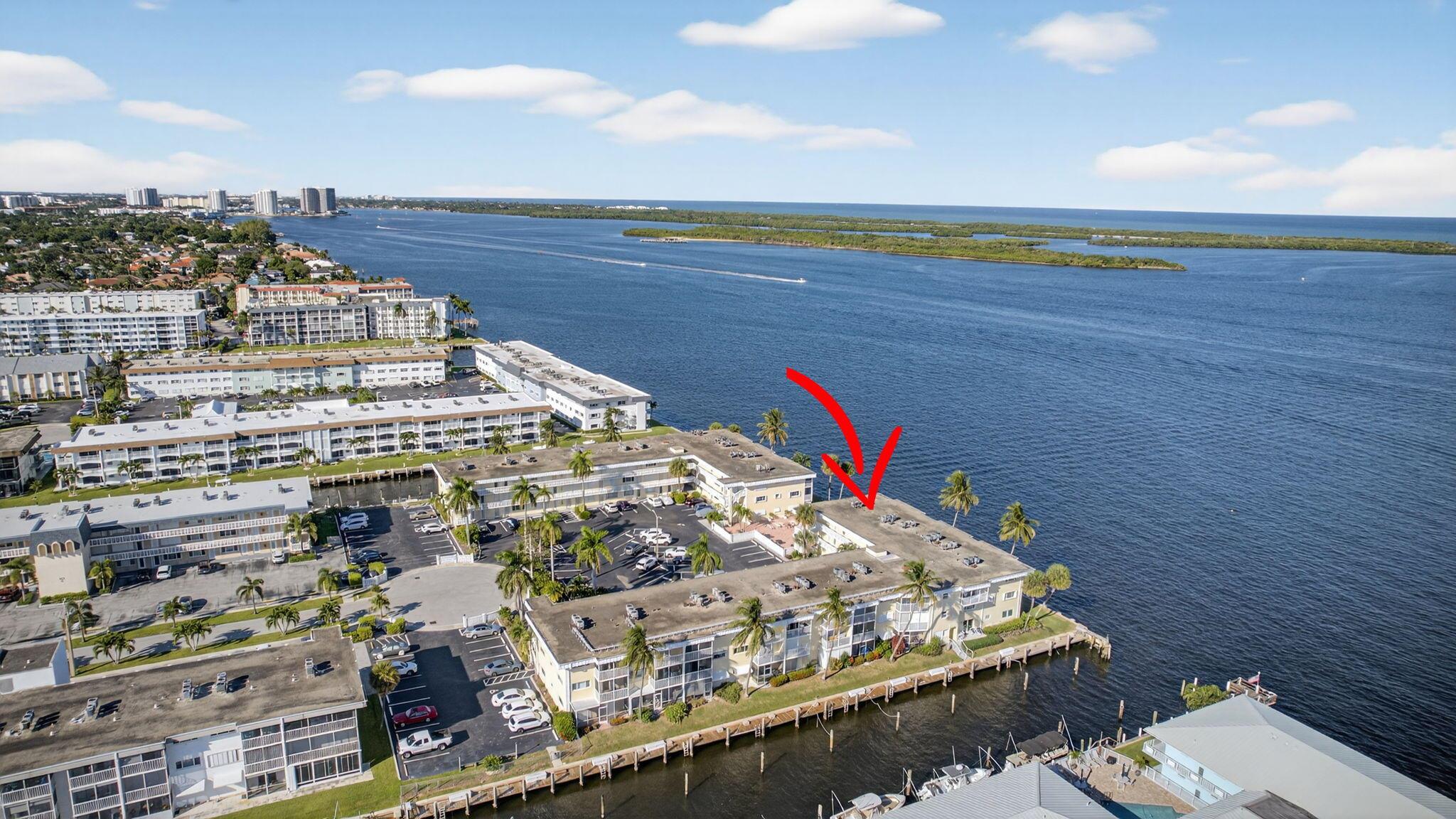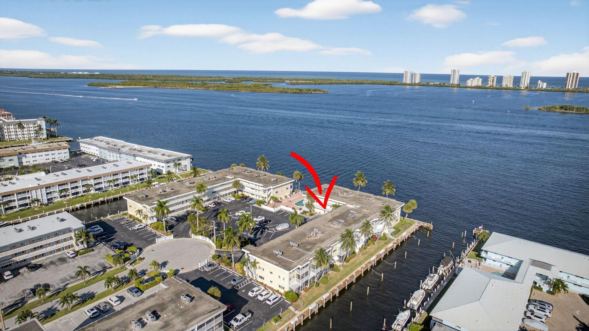 Rarely available 2 BR 1st floor unit on the direct Intracoastal with wide water views of the Intracoastal Waterway and Singer Island. Enjoy your morning coffee on the screened in porch, watching the sunrise over the sparkling blue water. This 2 BR, 1 bath unit has been lovingly maintained with an updated kitchen and bathroom, tile floors, updated windows, accordion shutters, updated electrical panel and NO popcorn ceilings. Unit has leasing rights to a 28' slip for $1400 a yr. If boat slip is not wanted, it goes back to the association as slips are leased by owners & lessees on a first come first served basis and owned by the association. Central location, close to Publix, shopping, restaurants, NPB Country Club and Peanut Island. 20 min to PBIA. Special assessment paid by seller.