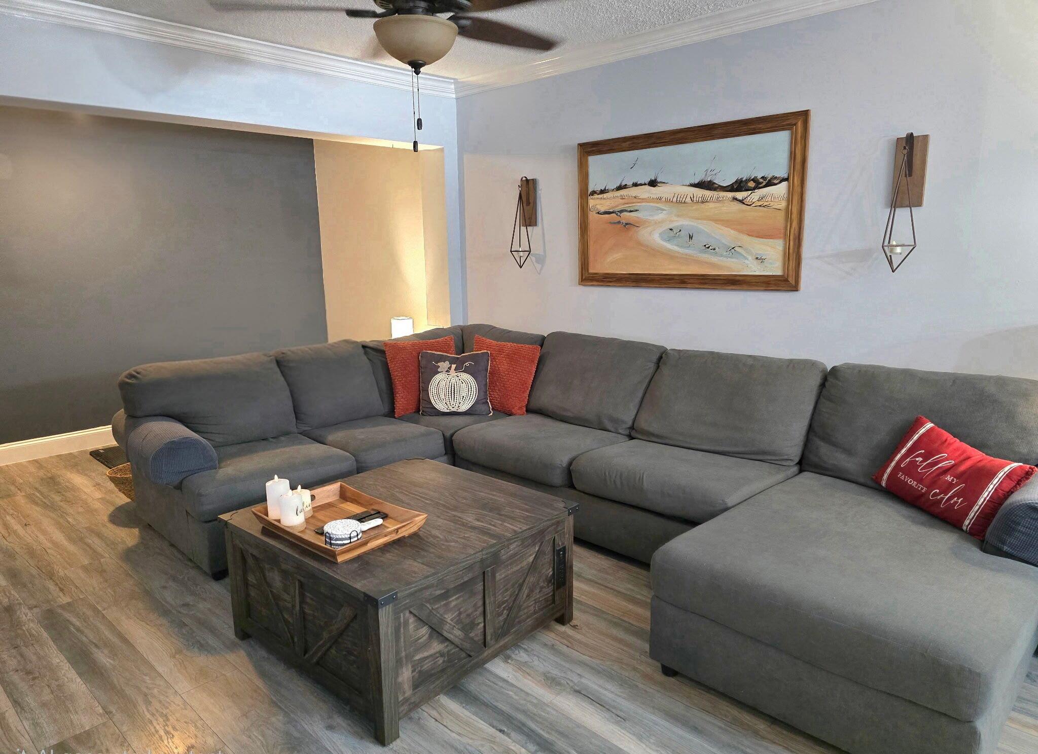 Not only has this one story Villa been completely renovated but owners also added a new, permitted and built to code, additional room to the building at a cost of over $30,000, perfect for use as a 3rd bedroom, office or theater room. Second bathroom has also been expanded into a full bath and additional custom closet has been added to the guest bedroom. Granite kitchen has new stainless appliances with built in microwave, tons of counter space and storage including pantry with pull out shelves. Hurricane glass throughout the home with hurricane rated door. Beautiful wood laminate flooring throughout, as well as new paint and crown molding. New washer and dryer and tankless water heater. Every inch of this home has been thoughtfully improved for comfort, functionality and style!
