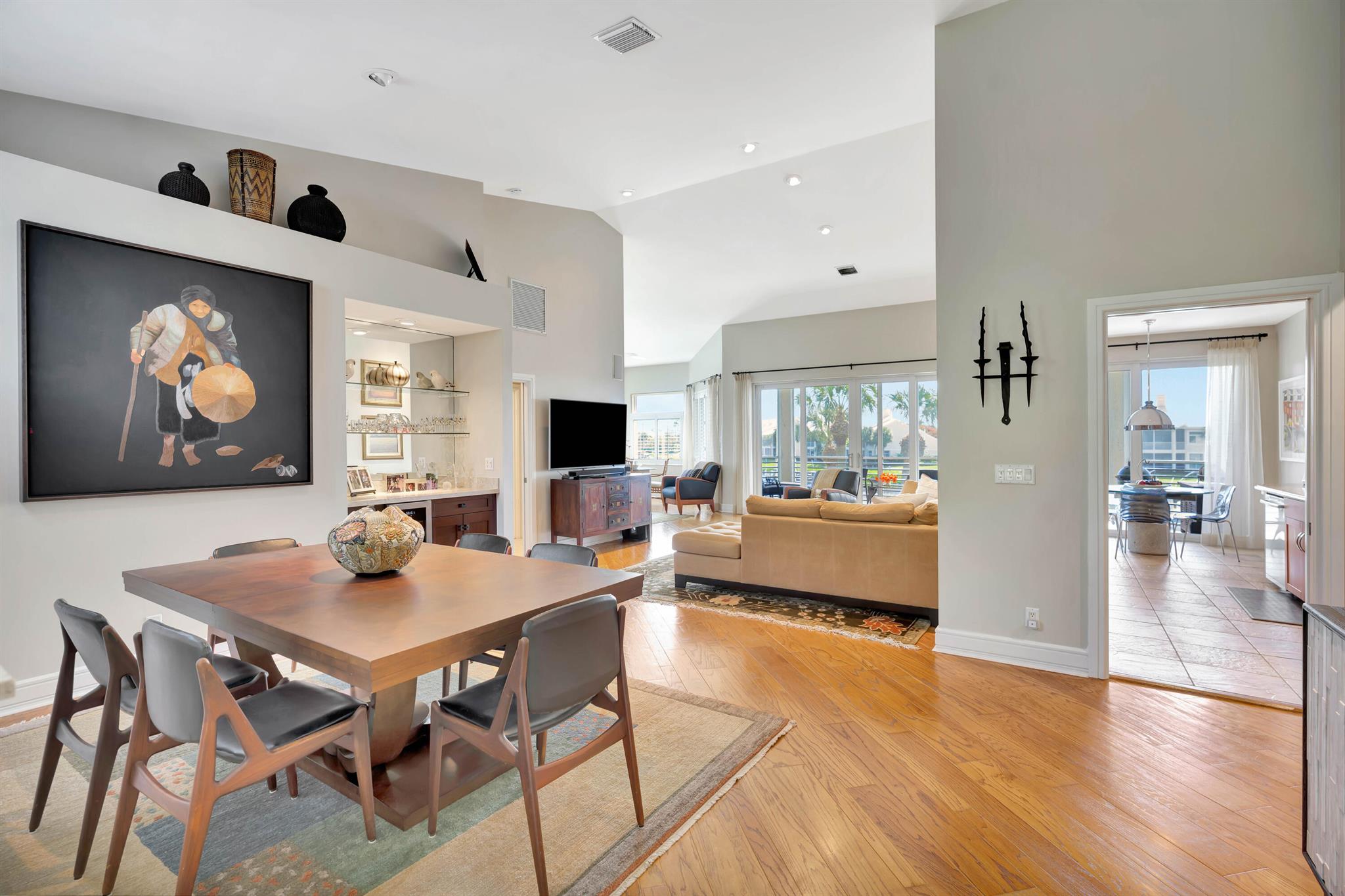 Come home to a beautifully renovated second-floor Harbor Home featuring bright southern exposure and wide water views! This residence offers impact windows, a private elevator, and elegant wood flooring. The custom kitchen showcases rich wood cabinetry, while the primary bath impresses with dual vanities, a freeform soaking tub, and shower. The guest bedroom includes a convenient king-sized Murphy bed, easily converting the space into a home office. Enjoy the screened lanai, perfect for lounging, reading, or savoring your morning coffee and meals al fresco while overlooking the tranquil waters. A boat lift and composite dock accommodate up to a 34-foot boat with ocean access. Ideally located on a quiet, tree-lined cul-de-sac on Spyglass Way, this home benefits from newly painted buildings
