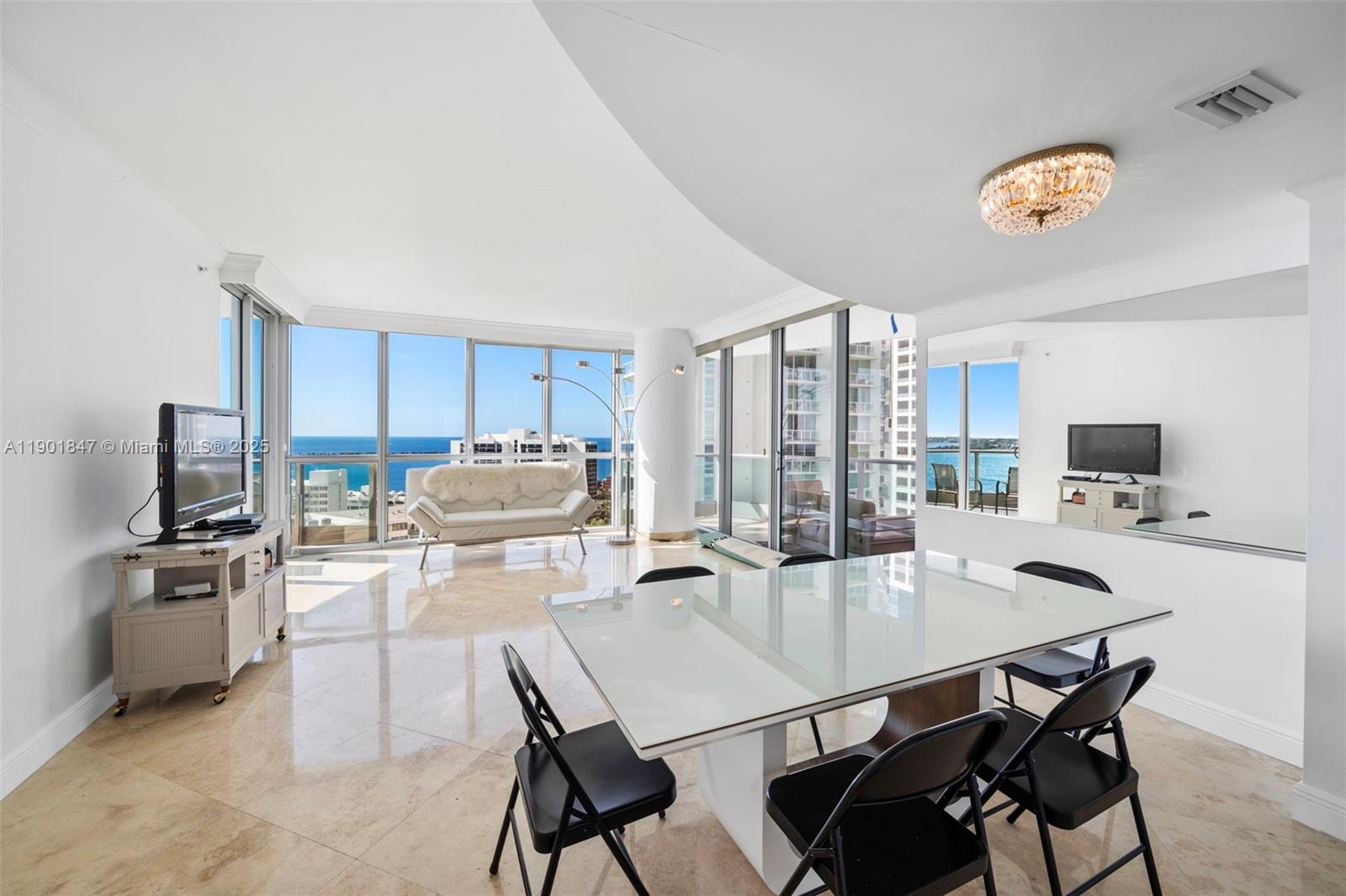 Experience elegant waterfront living at Jade Brickell from this sophisticated corner residence showcasing panoramic views of Biscayne Bay, the ocean, and the Brickell skyline. Floor-to-ceiling windows and a wraparound terrace create seamless indoor-outdoor flow. The private elevator opens to a light-filled foyer leading into a spacious split two-bed, two-bath layout. The open kitchen features Miele and Sub-Zero appliances, sleek maple cabinetry, and granite countertops. Enjoy resort-style living with concierge services, bayfront pools, a state-of-the-art fitness center, spa, sauna, and more. One assigned parking space plus valet for a second car and guests. Perfectly located steps from Brickell’s premier dining, shopping, and entertainment.